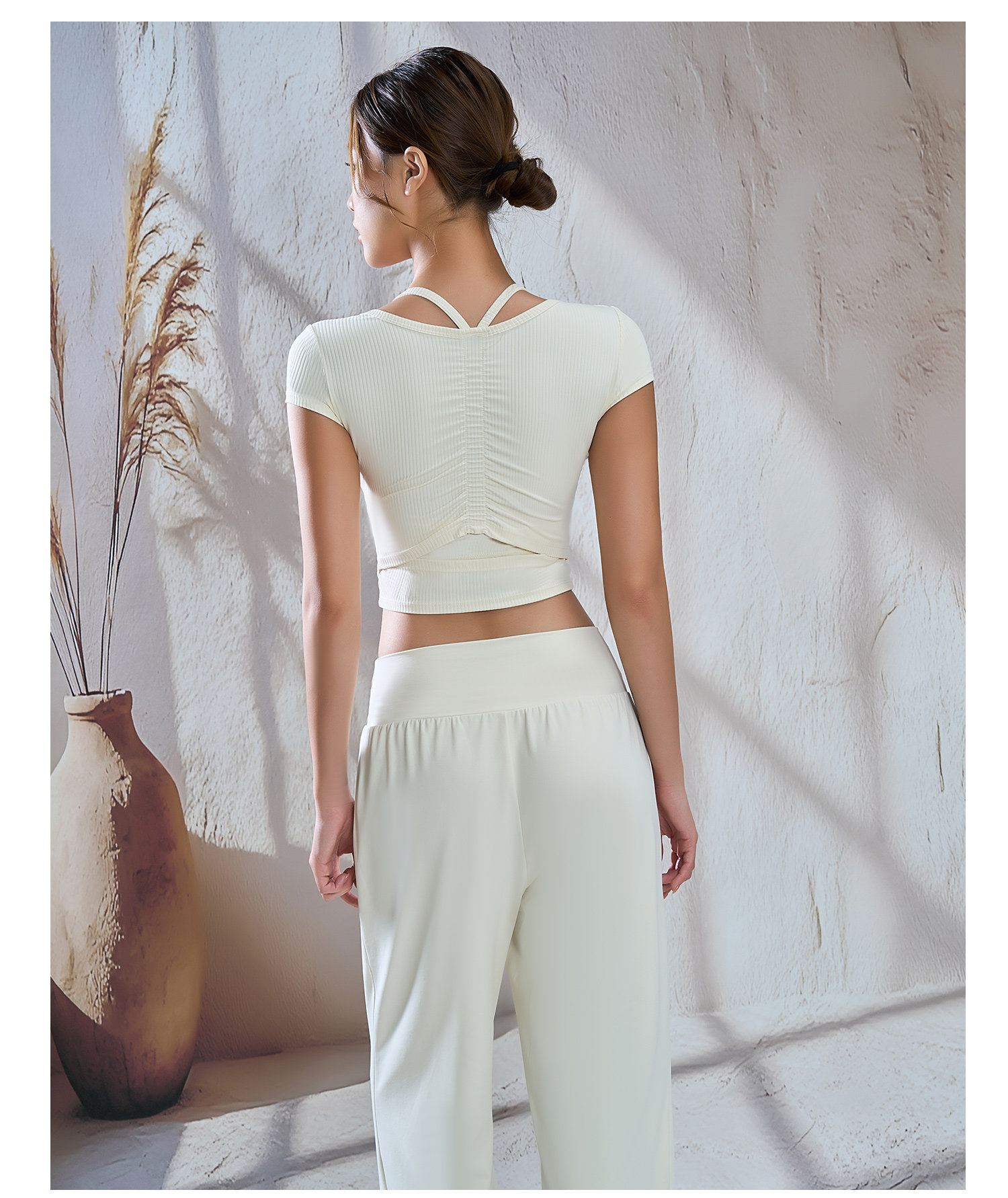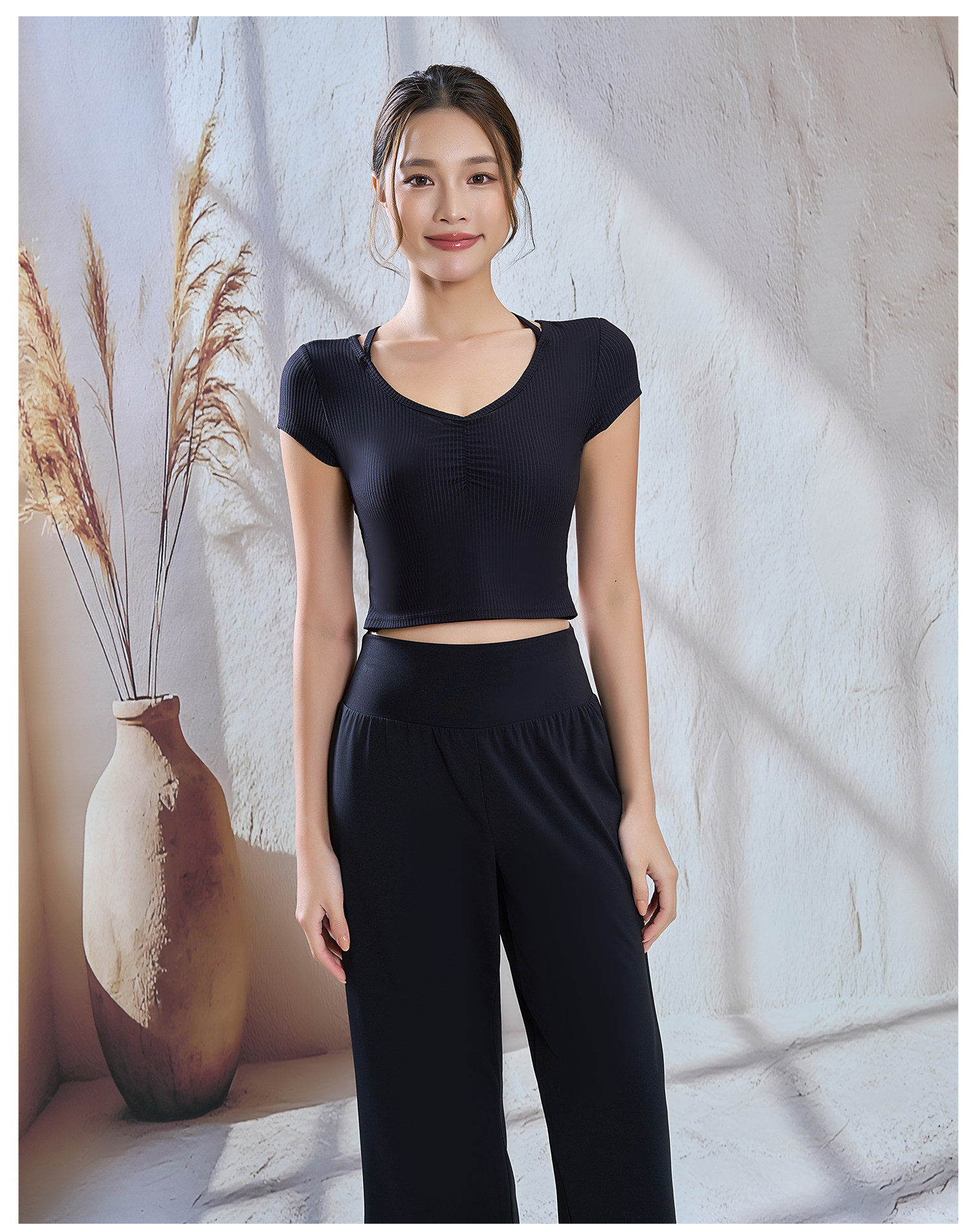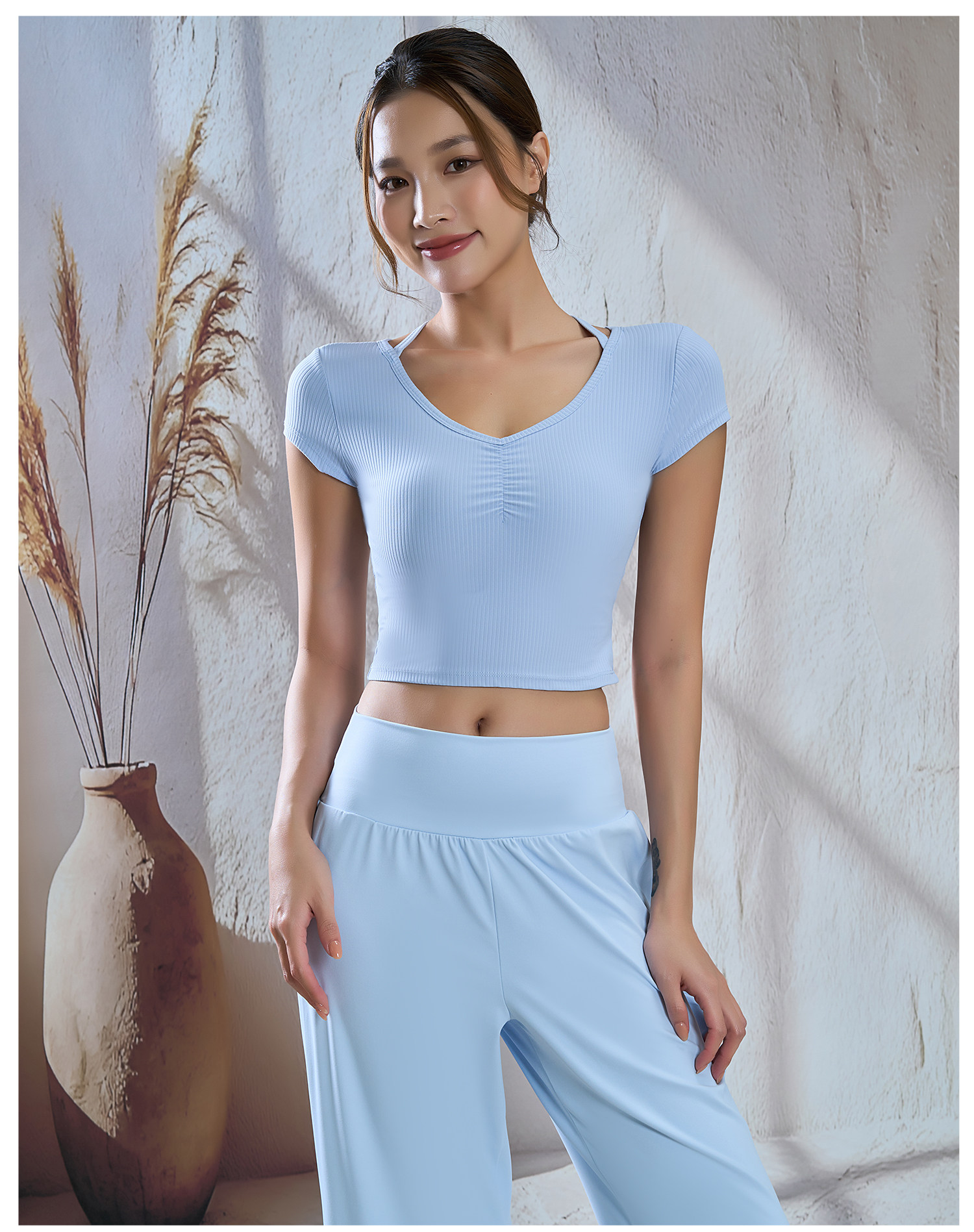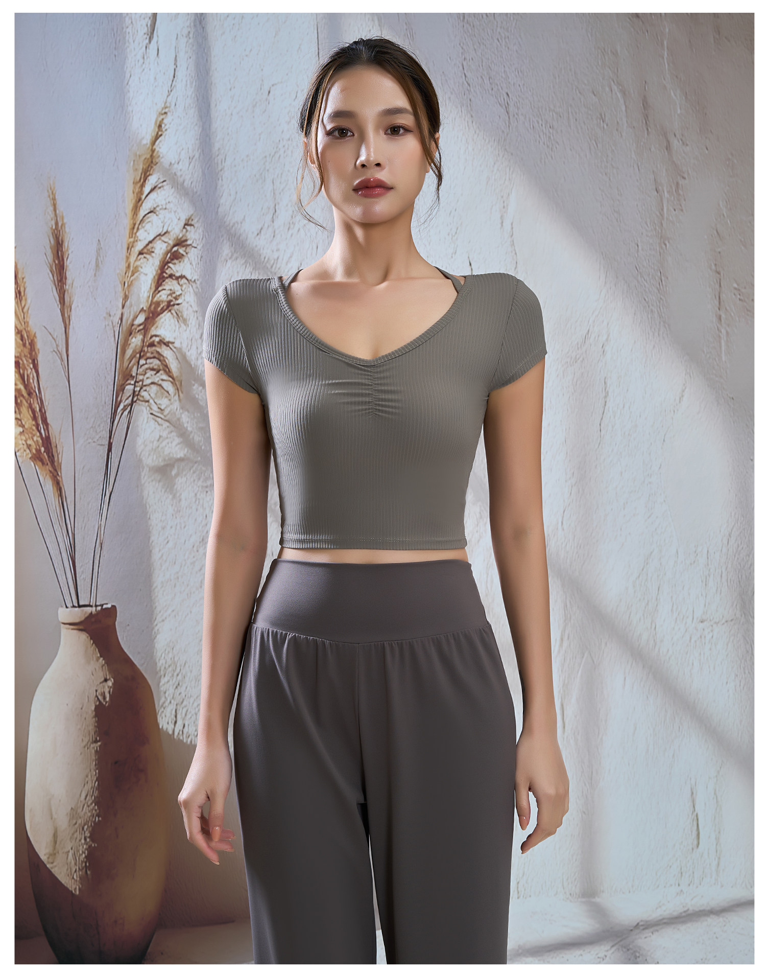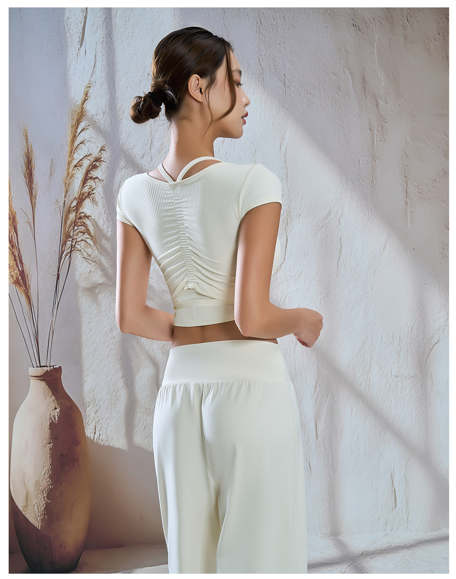 【限时秒】YOGACODE【火树银花系列】瑜伽服短袖女带胸垫免穿内衣运动t恤透气短款上衣DWY116034