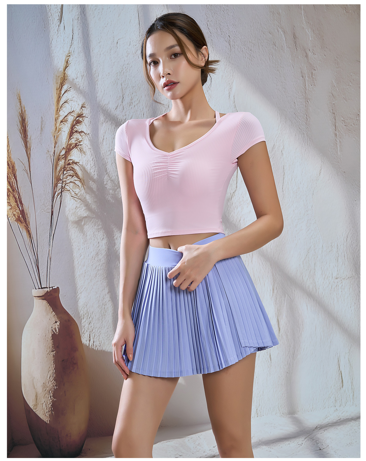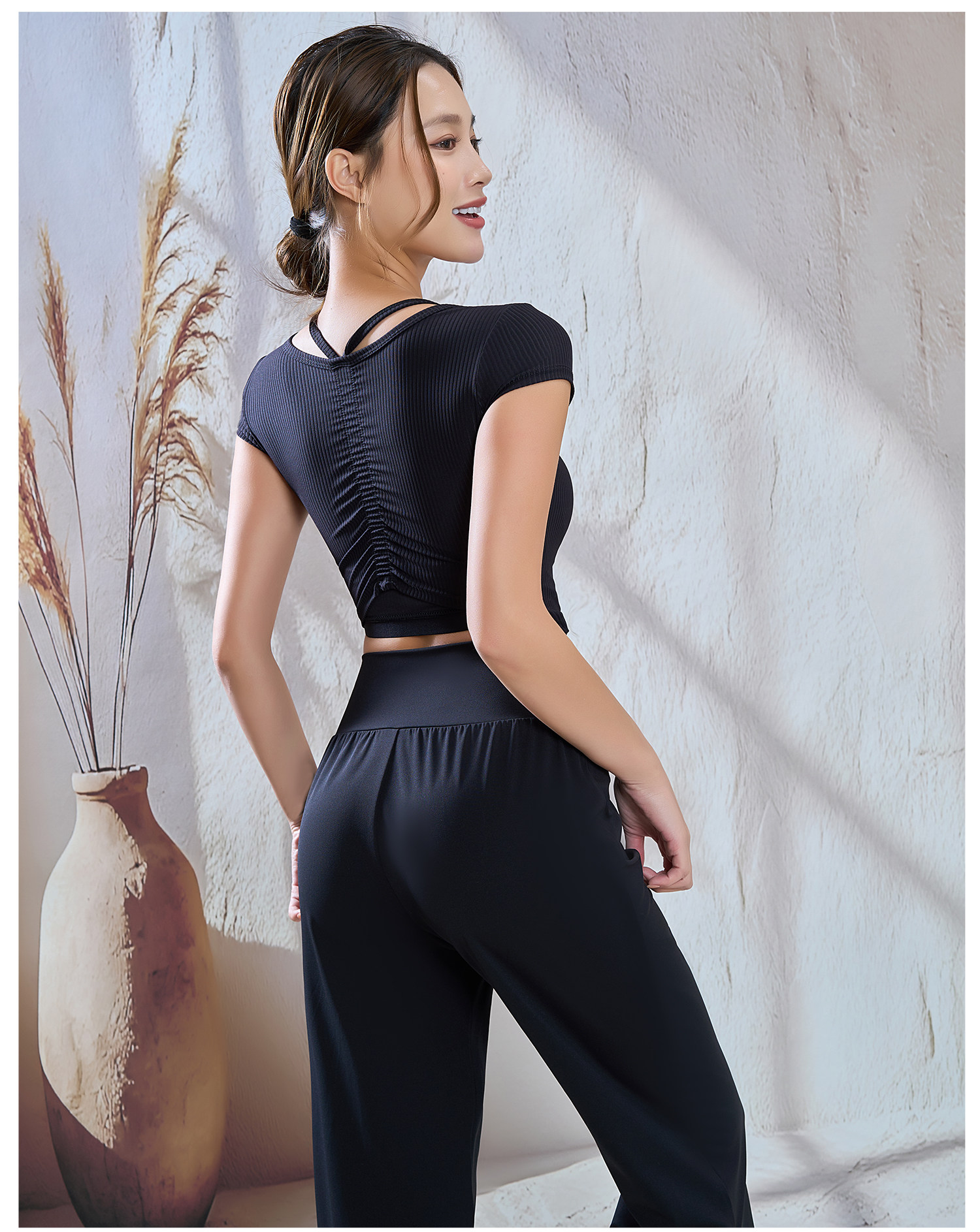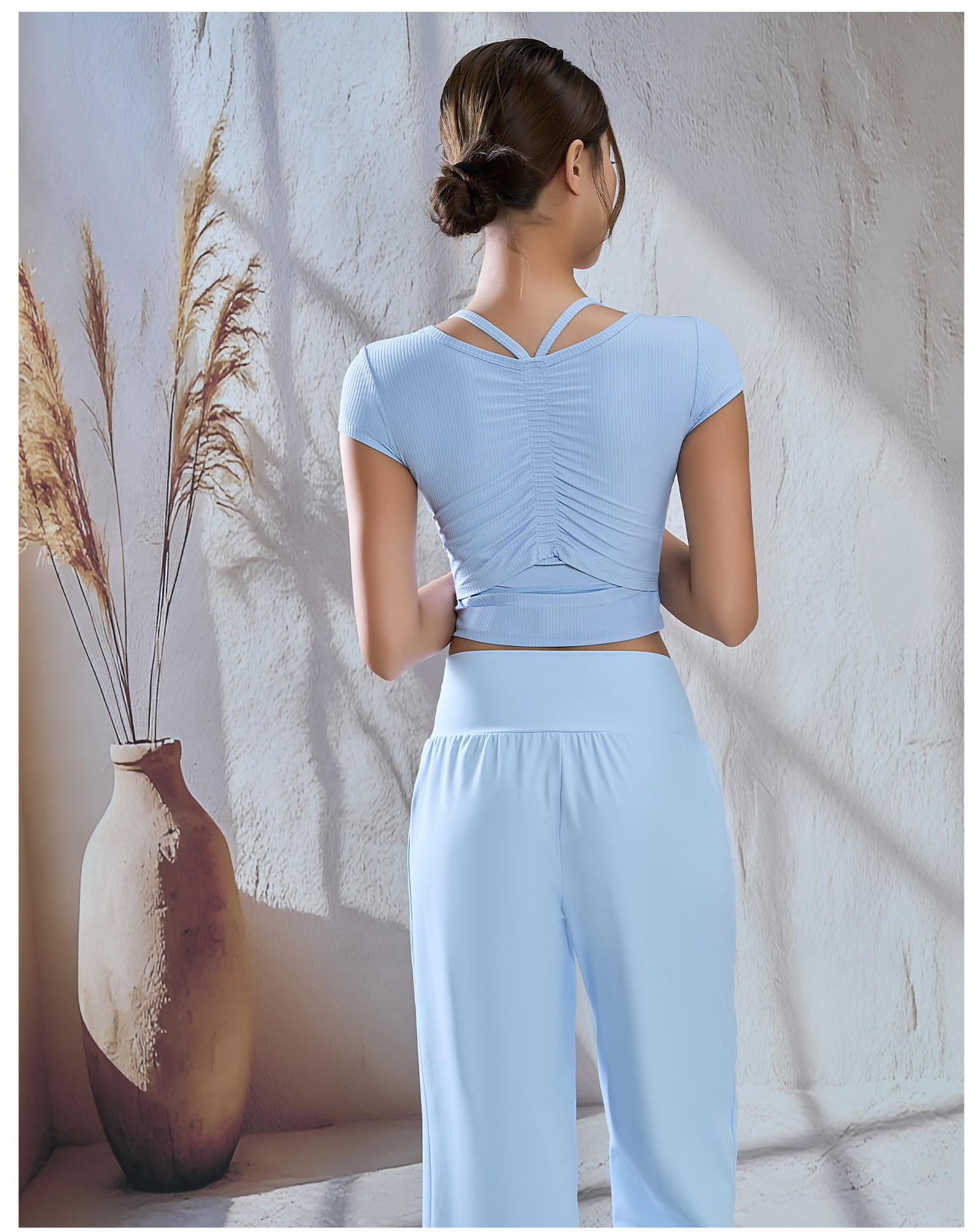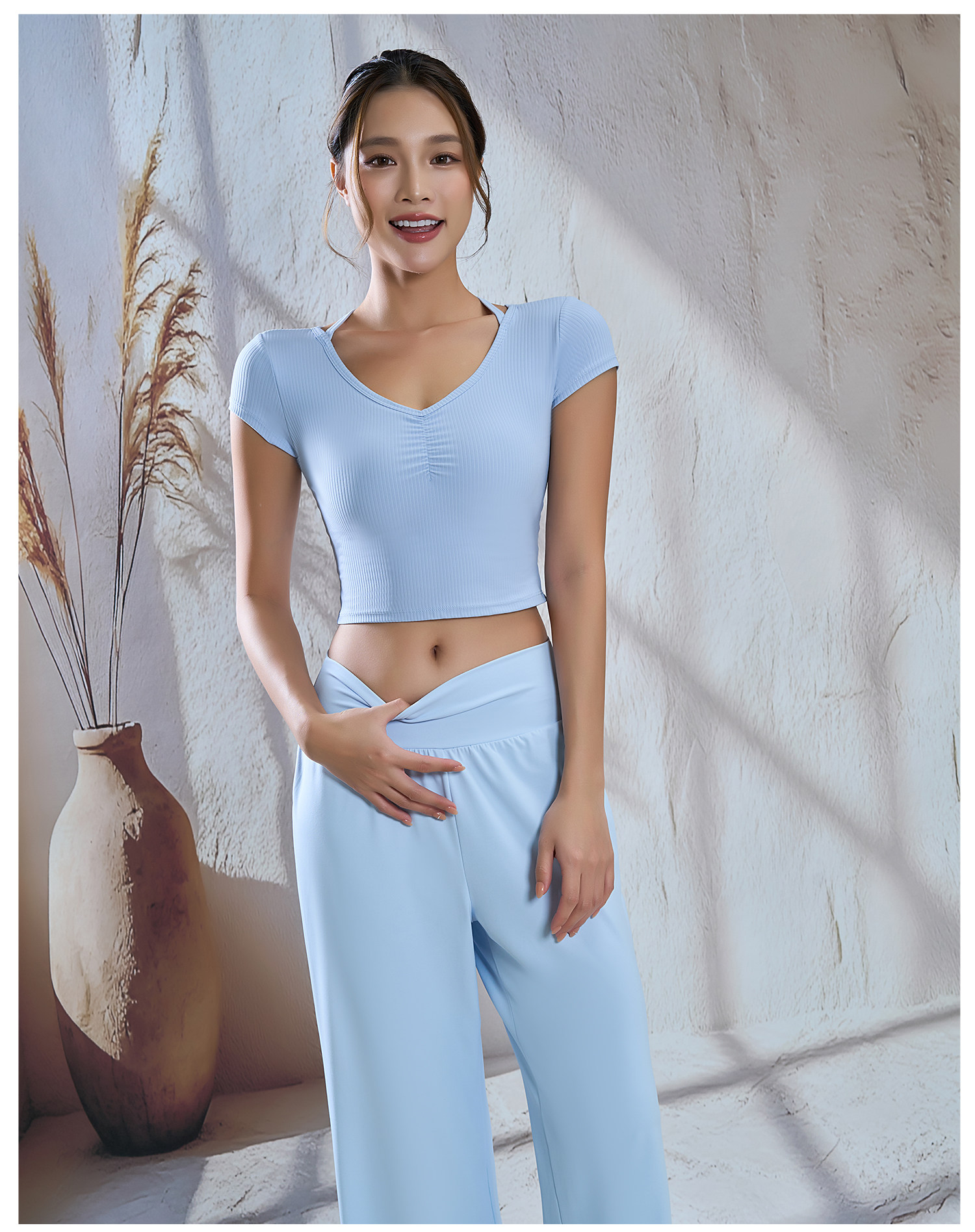 【限时秒】YOGACODE【火树银花系列】瑜伽服短袖女带胸垫免穿内衣运动t恤透气短款上衣DWY116034