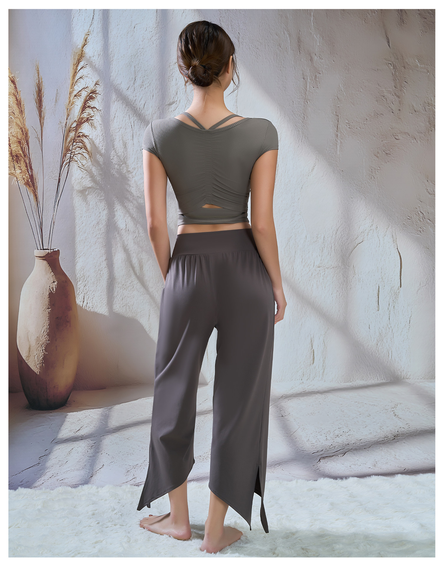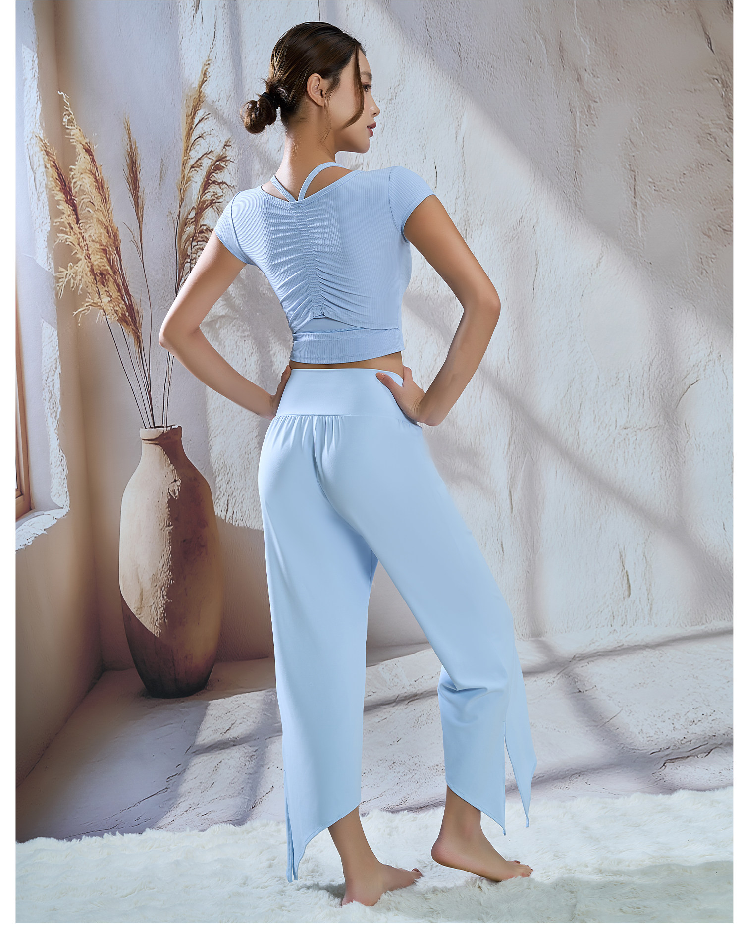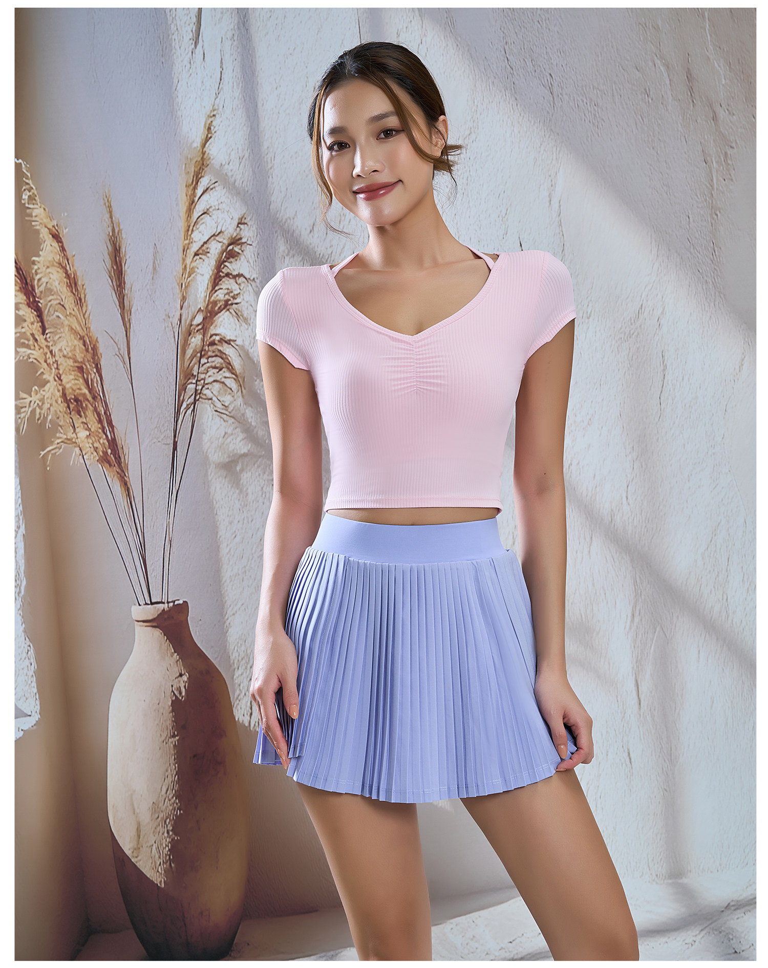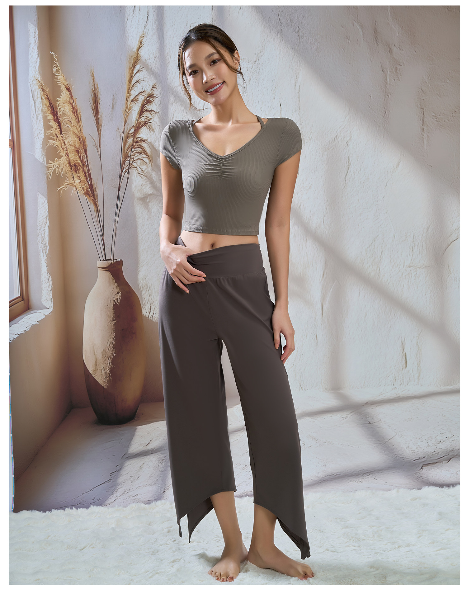 【限时秒】YOGACODE【火树银花系列】瑜伽服短袖女带胸垫免穿内衣运动t恤透气短款上衣DWY116034