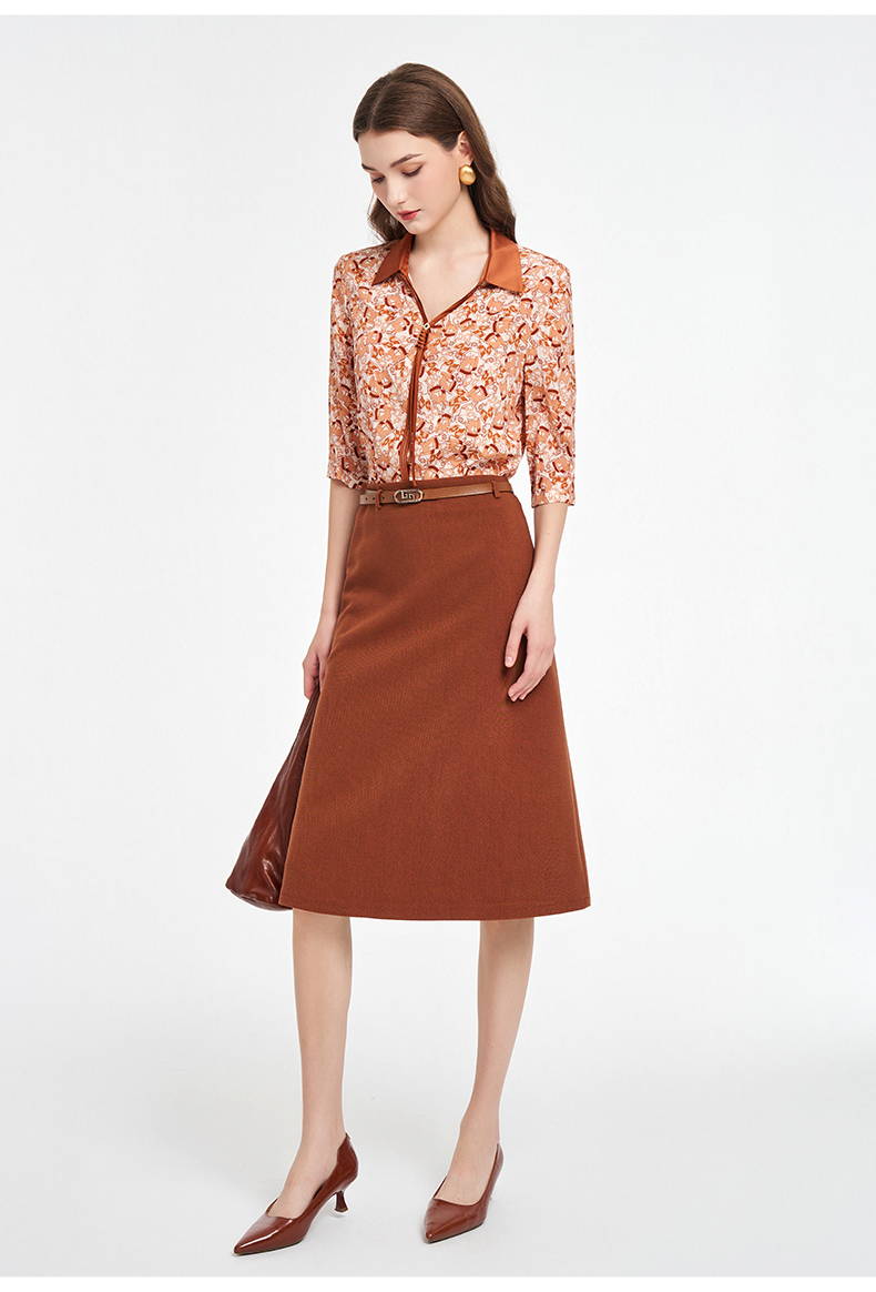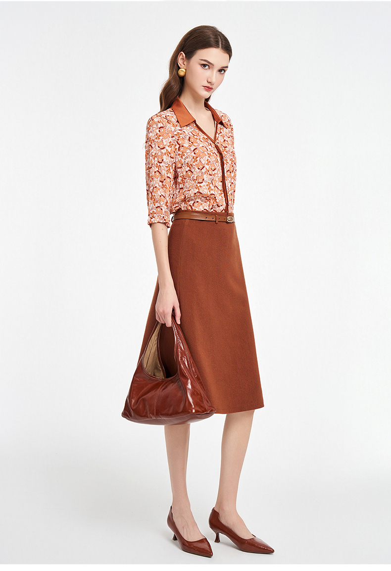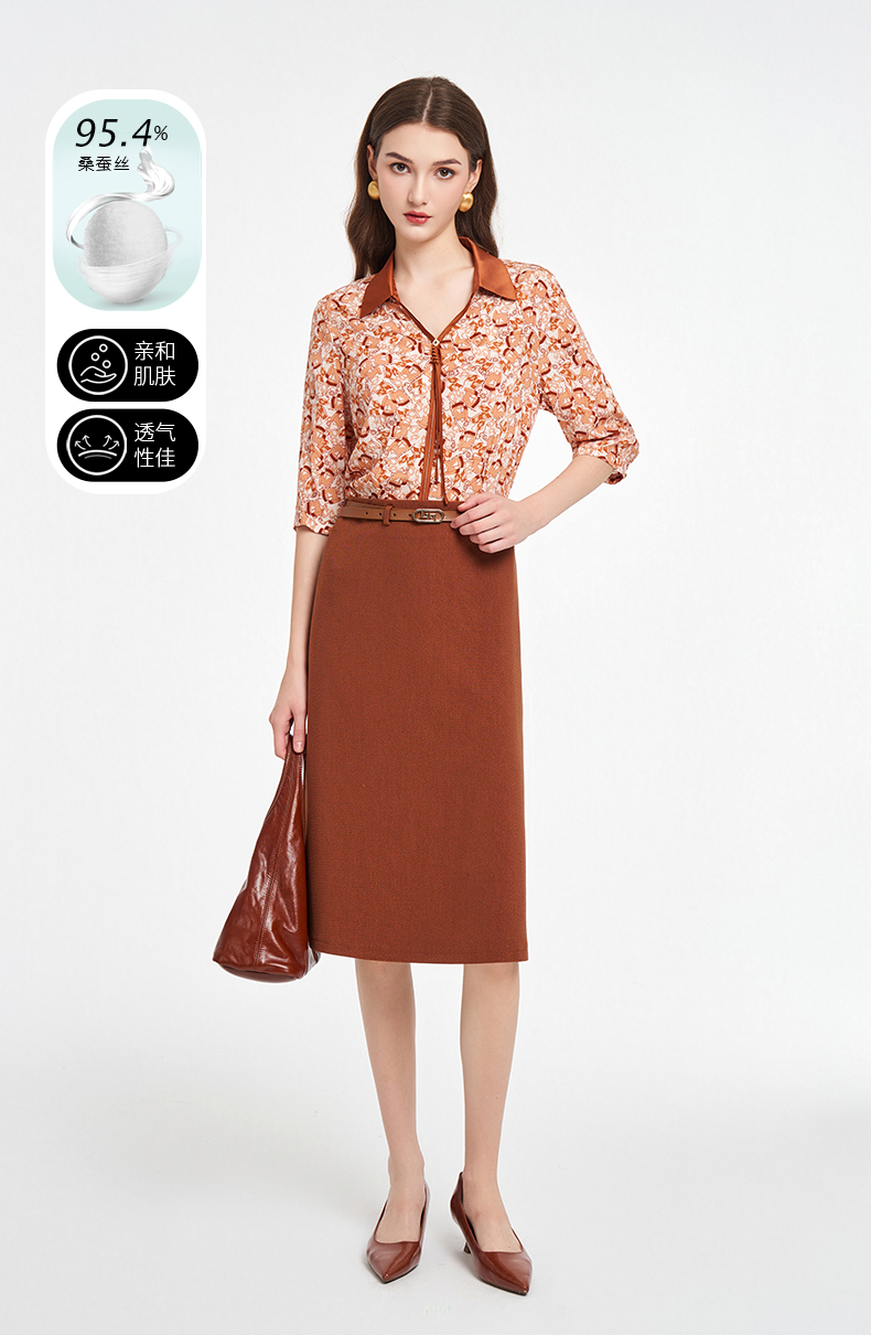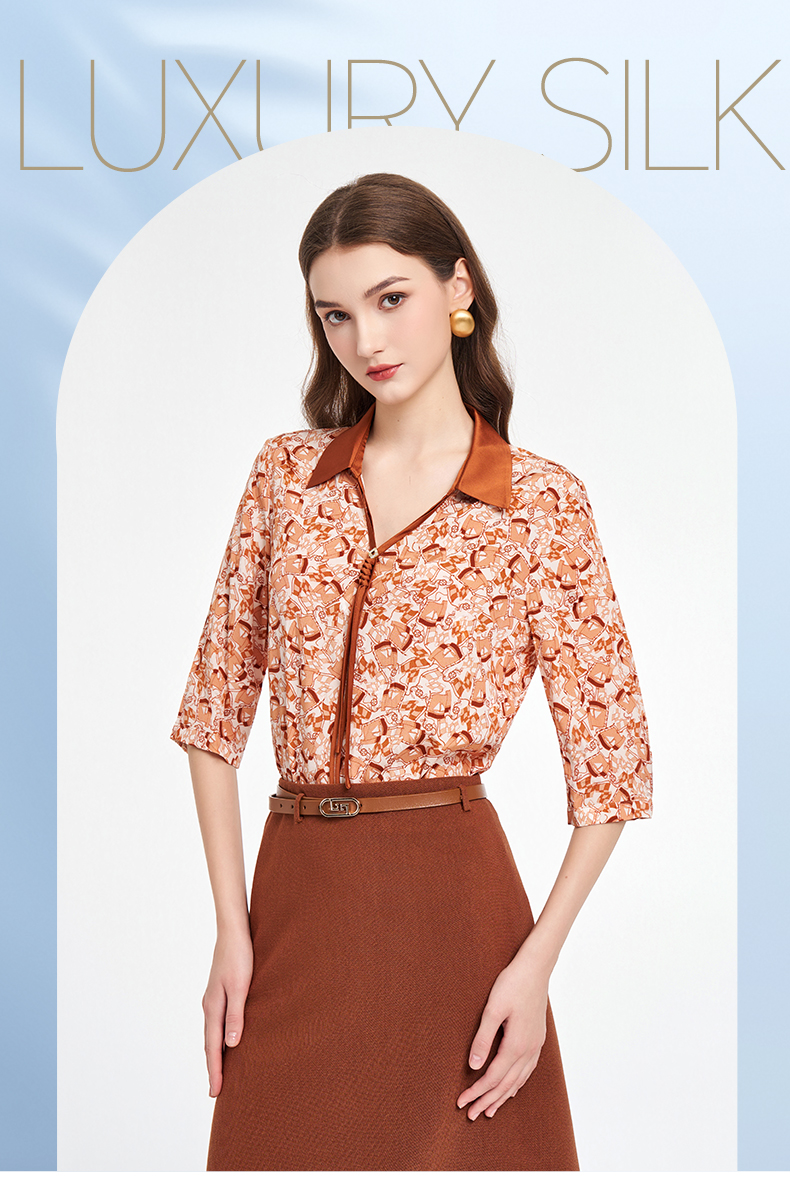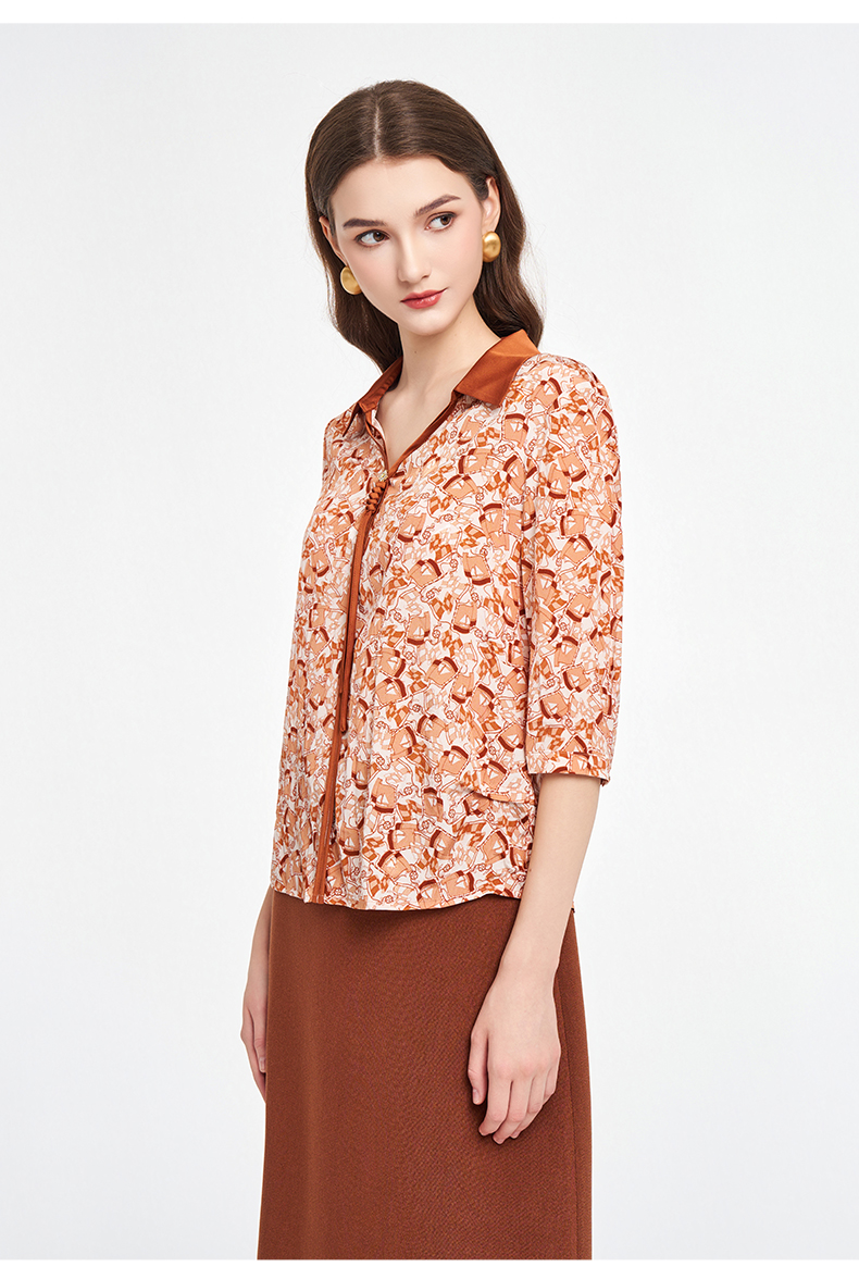 乔万尼新品真丝印花撞色设计时尚感衬衫ED2C499