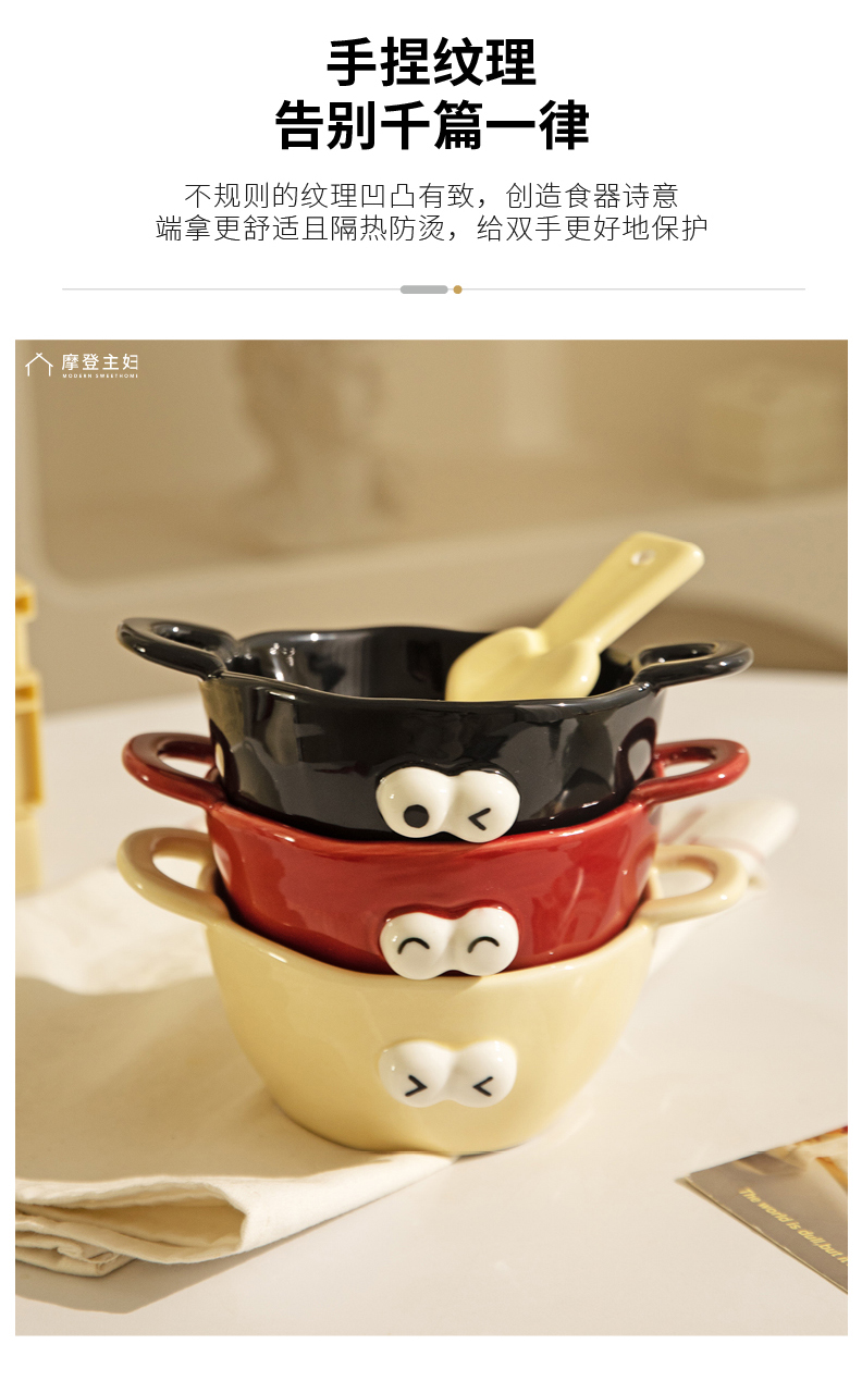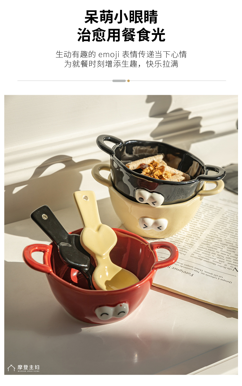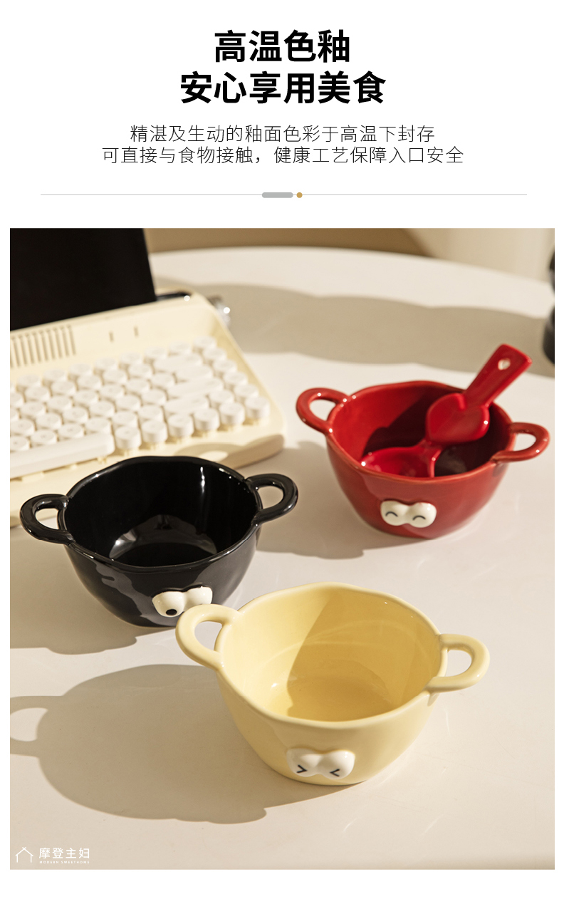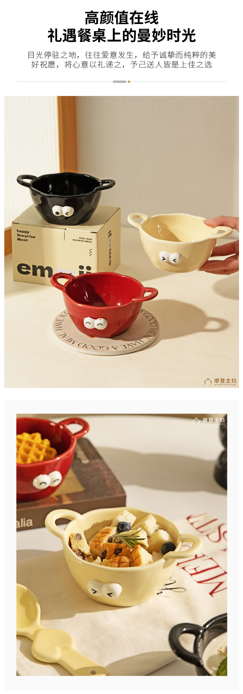 摩登主妇双耳碗好看的饭碗盘家用2024新款陶瓷情侣碗沙拉酸奶碗