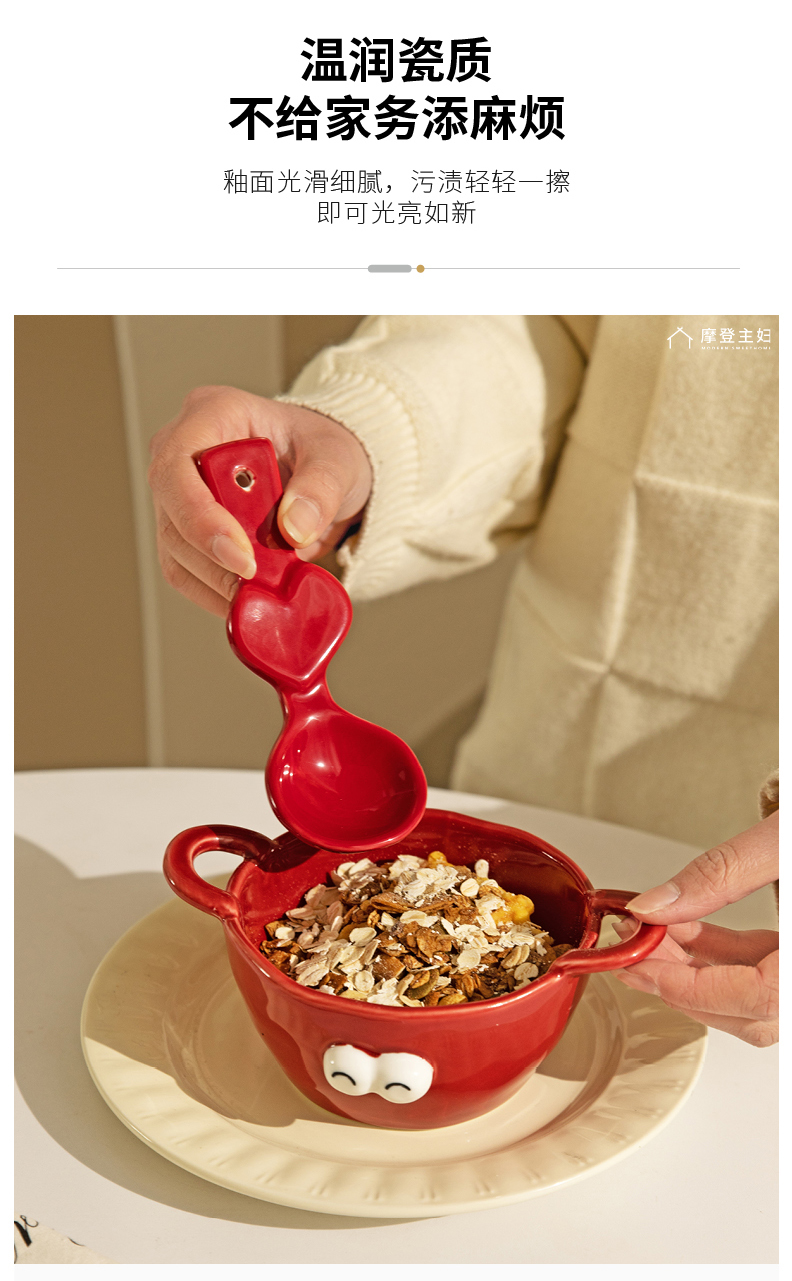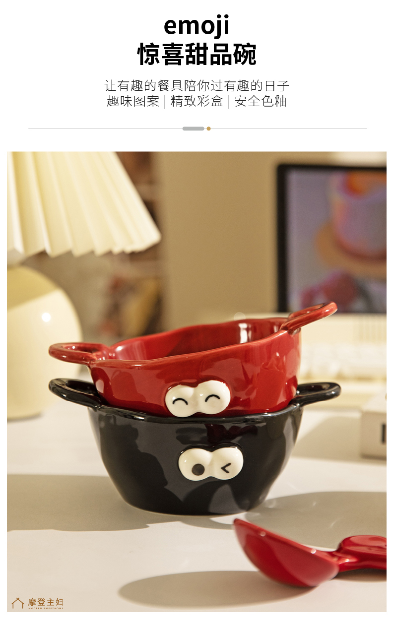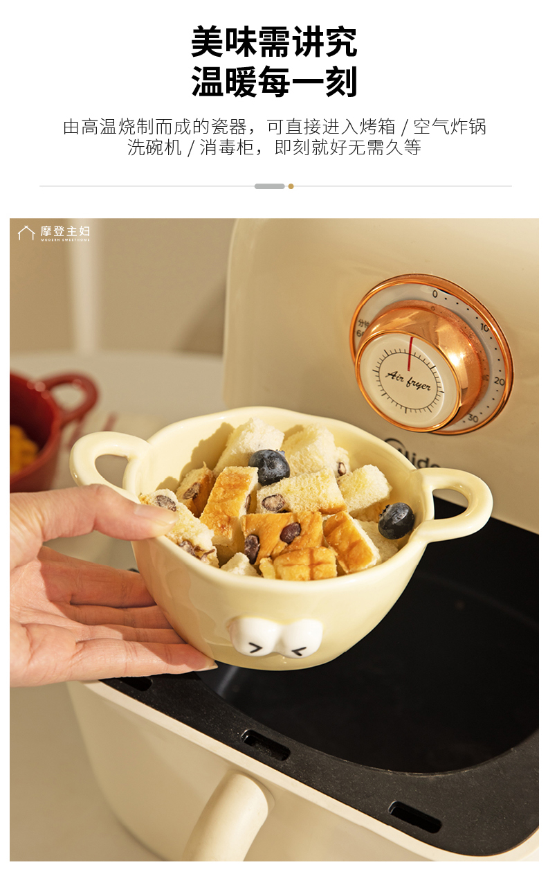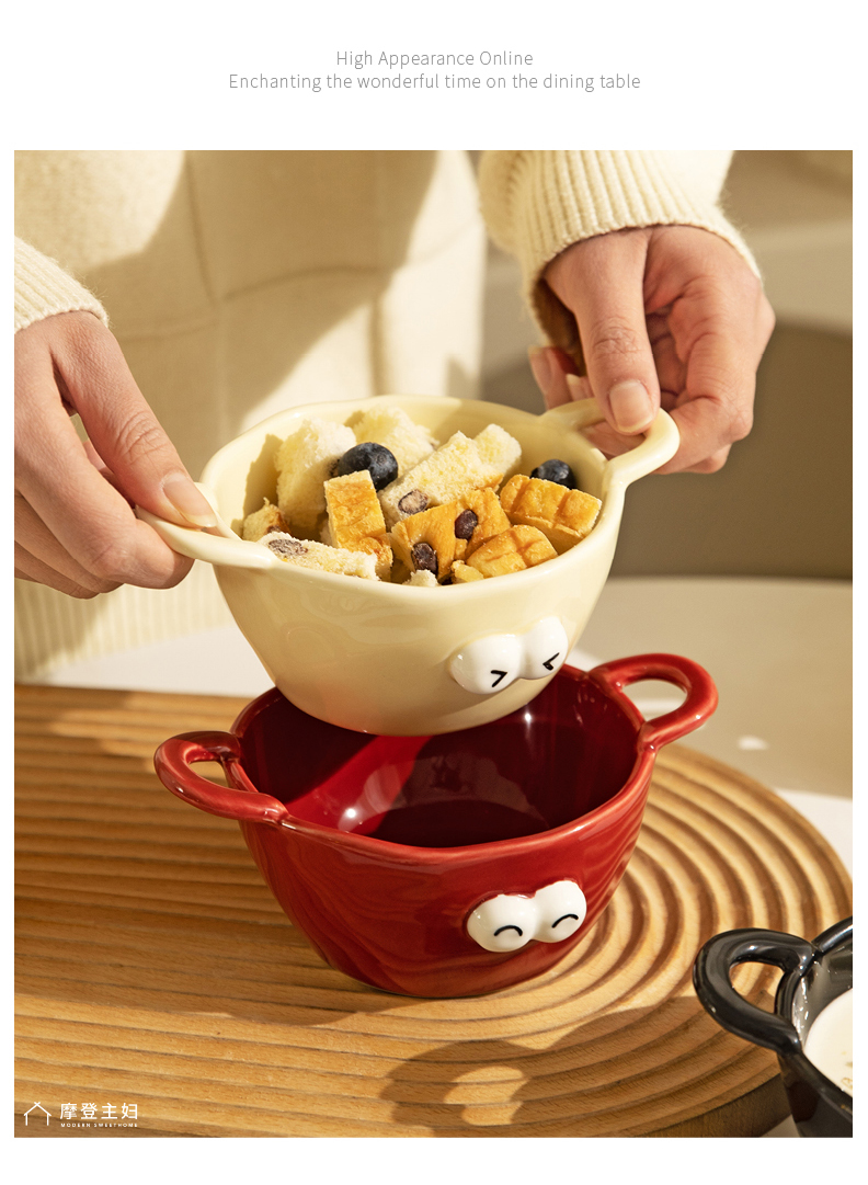 摩登主妇双耳碗好看的饭碗盘家用2024新款陶瓷情侣碗沙拉酸奶碗