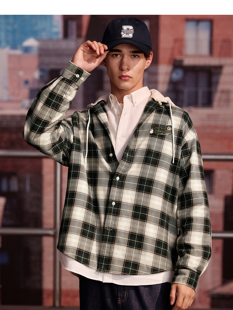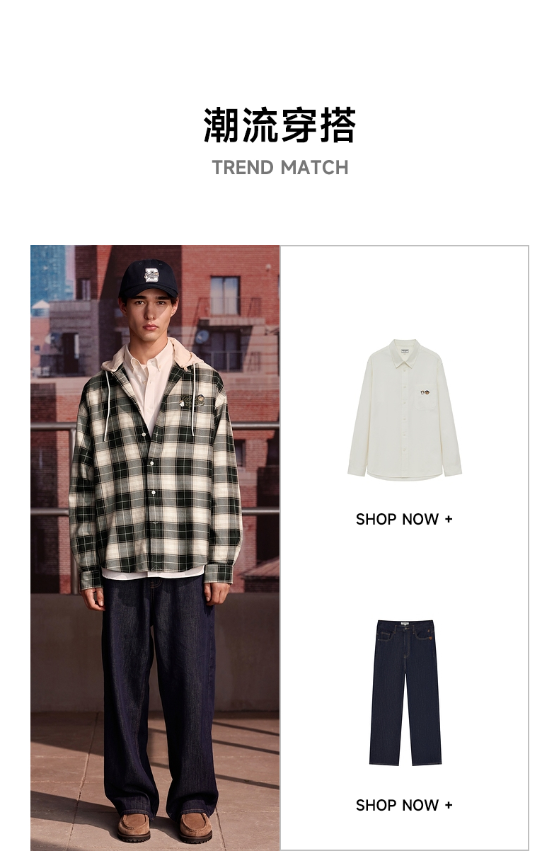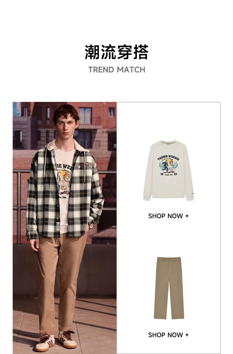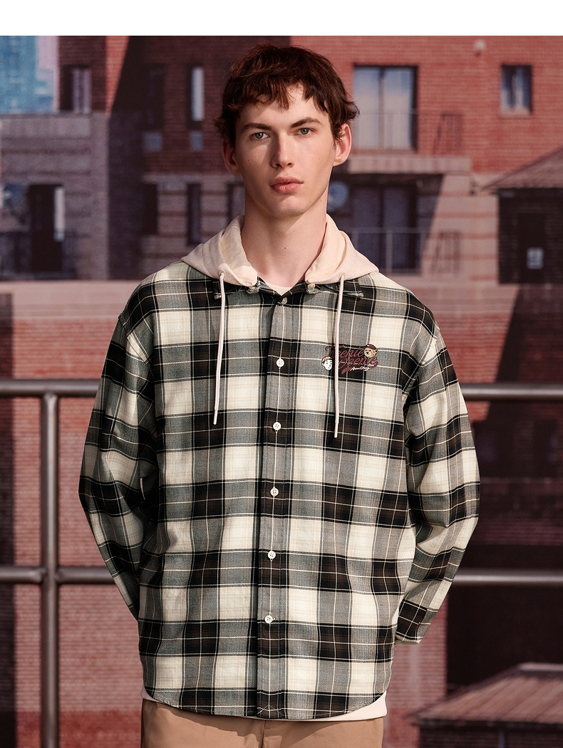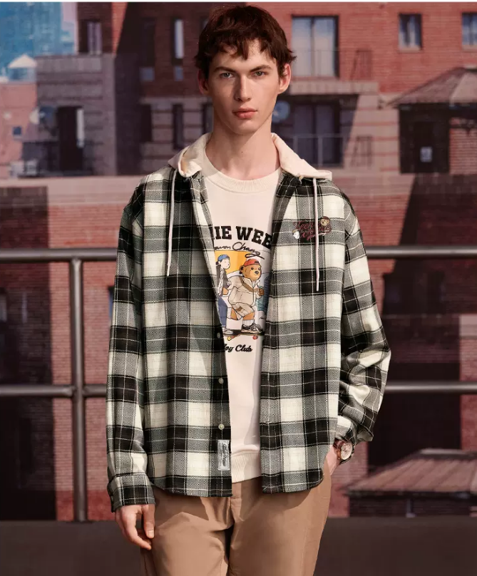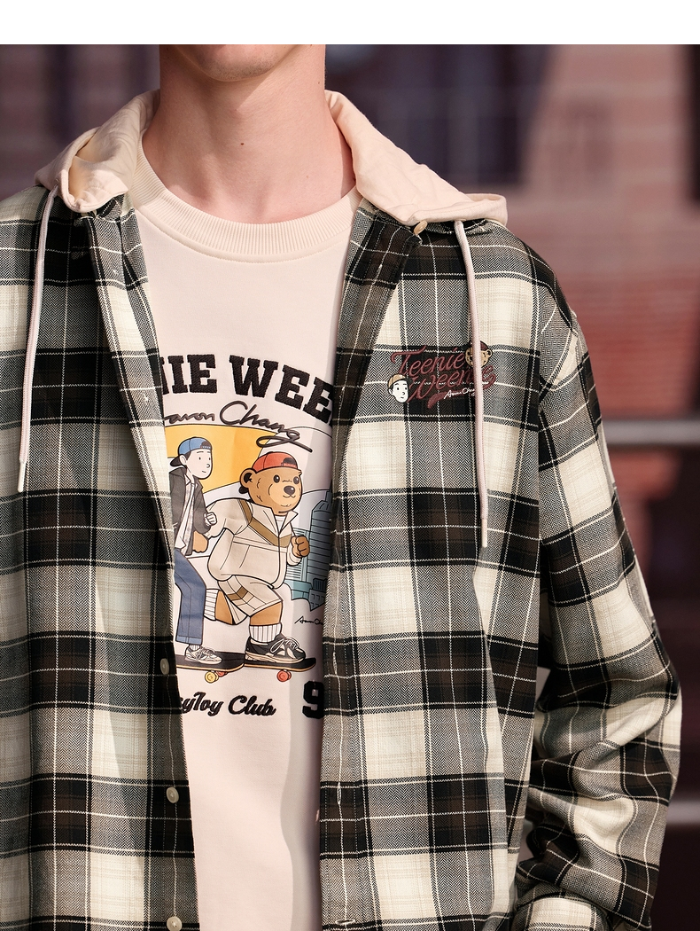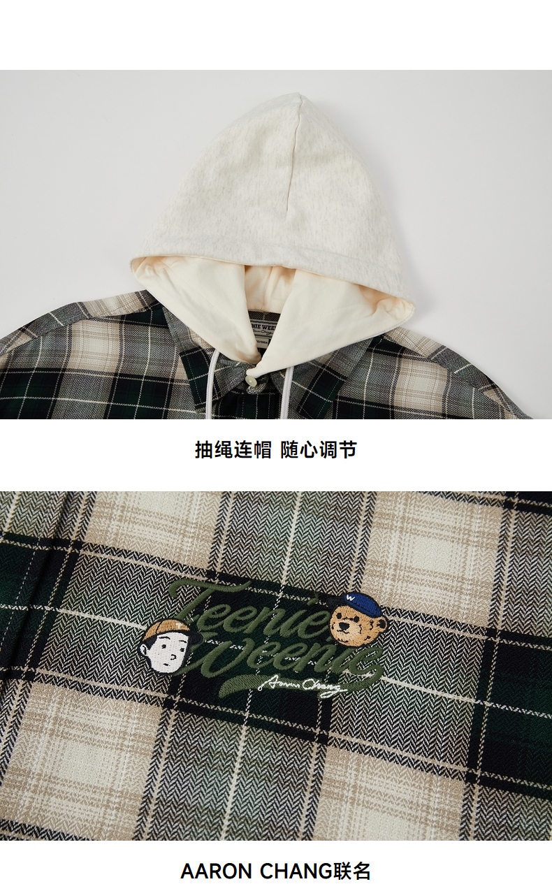【大都会】AARON CHANG联名 TeenieWeenie小熊男装格纹衬衫2024秋季新款