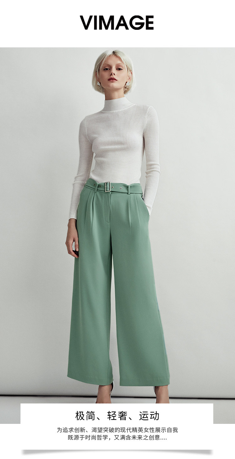 VIMAGE纬漫纪通勤职业干练百搭显瘦直筒阔腿裤长裤女V1405006D