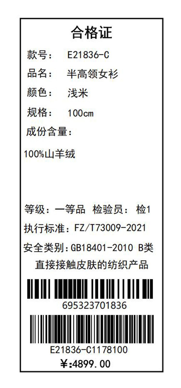 PALUOPO/PL半高领女衫E21836-C/约重375g帕罗