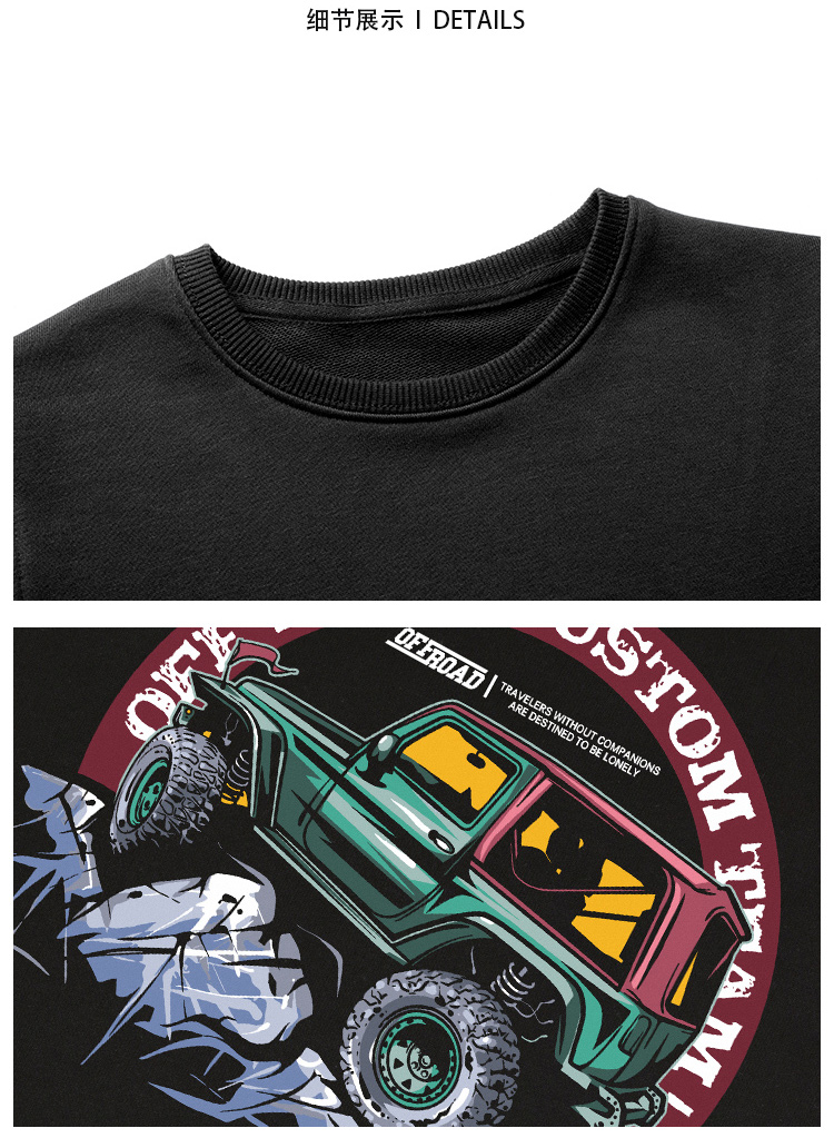 自由基地潮流硬派越野个性印花图案卫衣圆领套头毛圈卫衣青年队服 NMT-1768