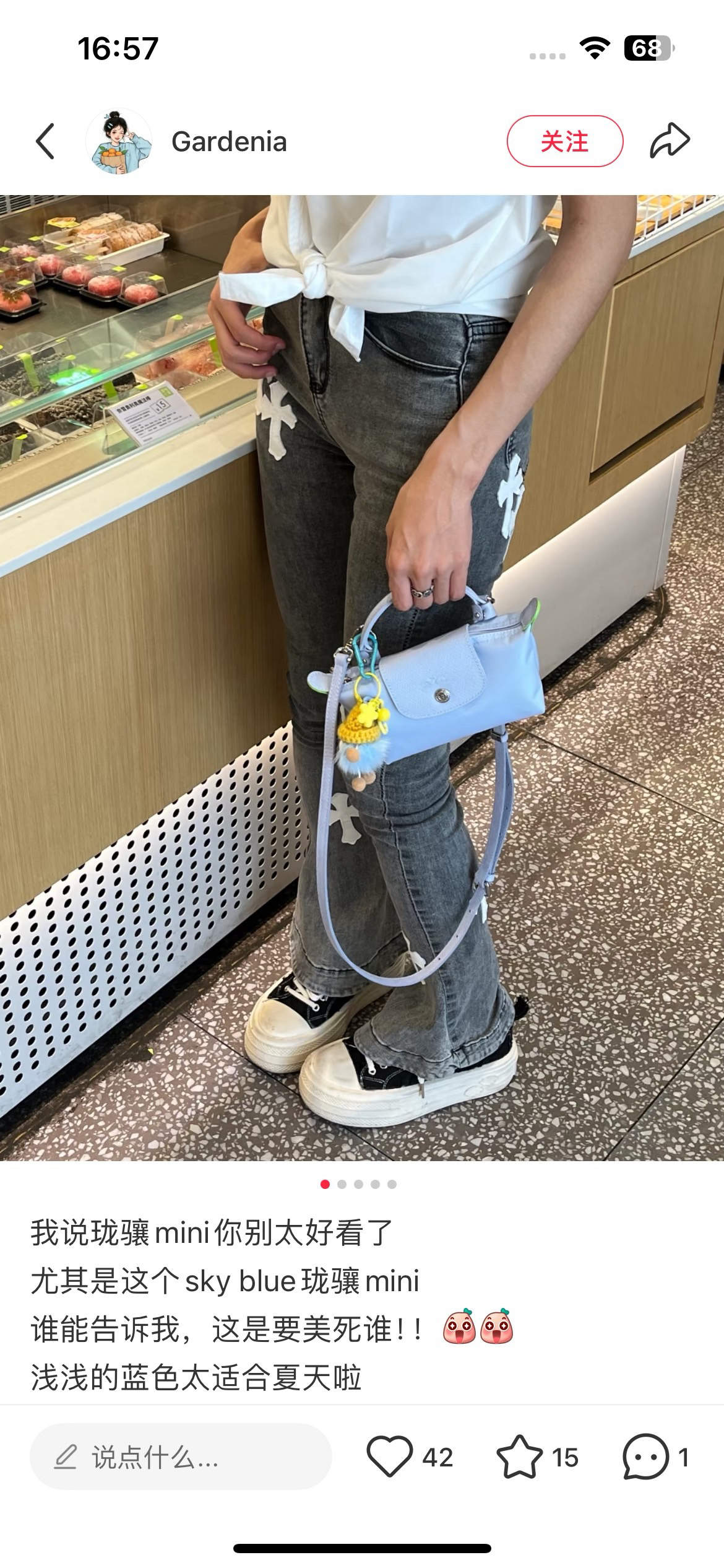 珑骧粉的这只一定要入 新款mini号的 可爱到没朋友!包身设计就是缩小版的饺子包,但是迷你号是单手柄设计哈 很有设计感。包盖、两侧小耳朵都是撞色处理 很好看的小包包。