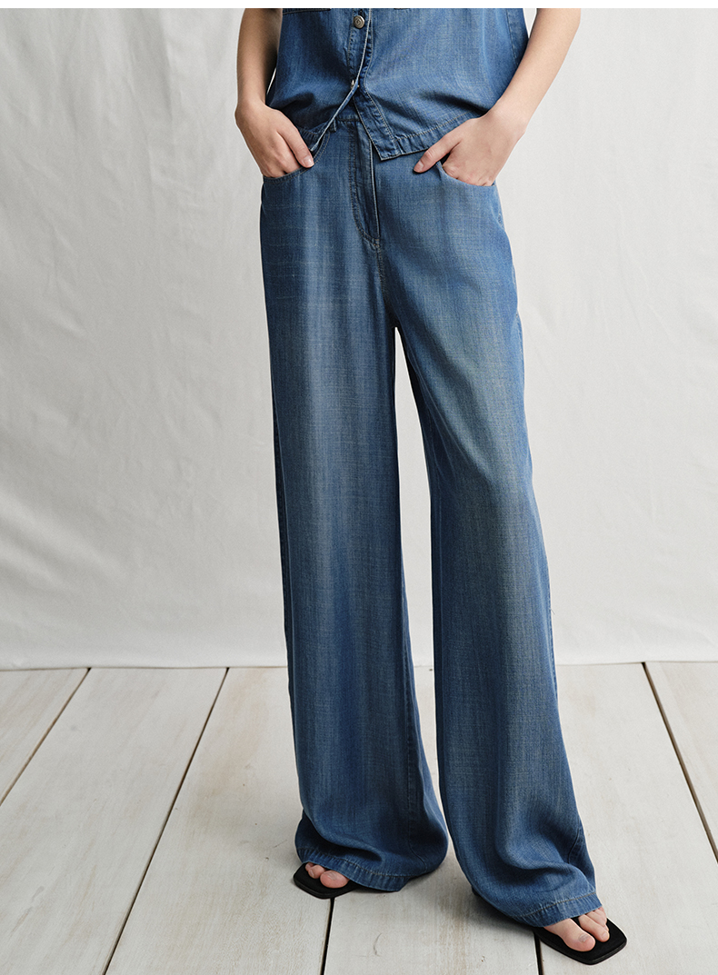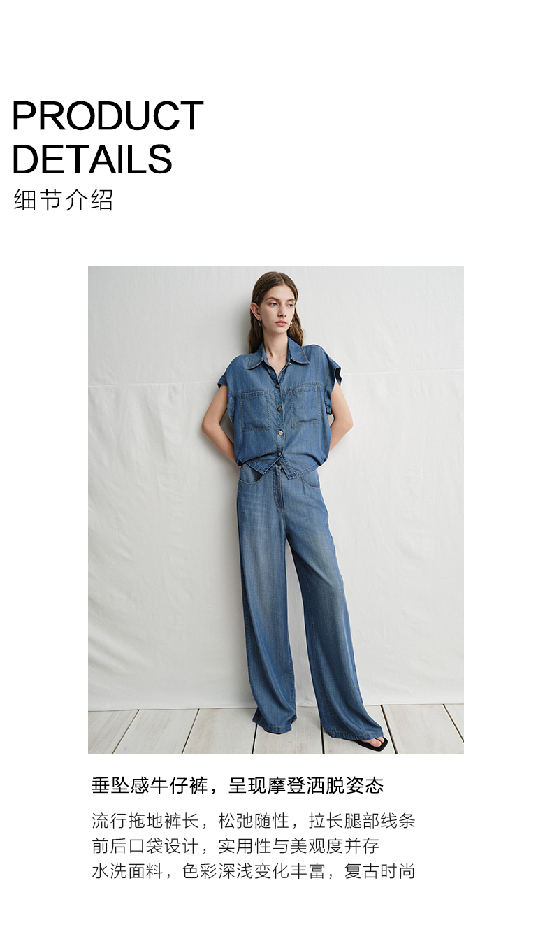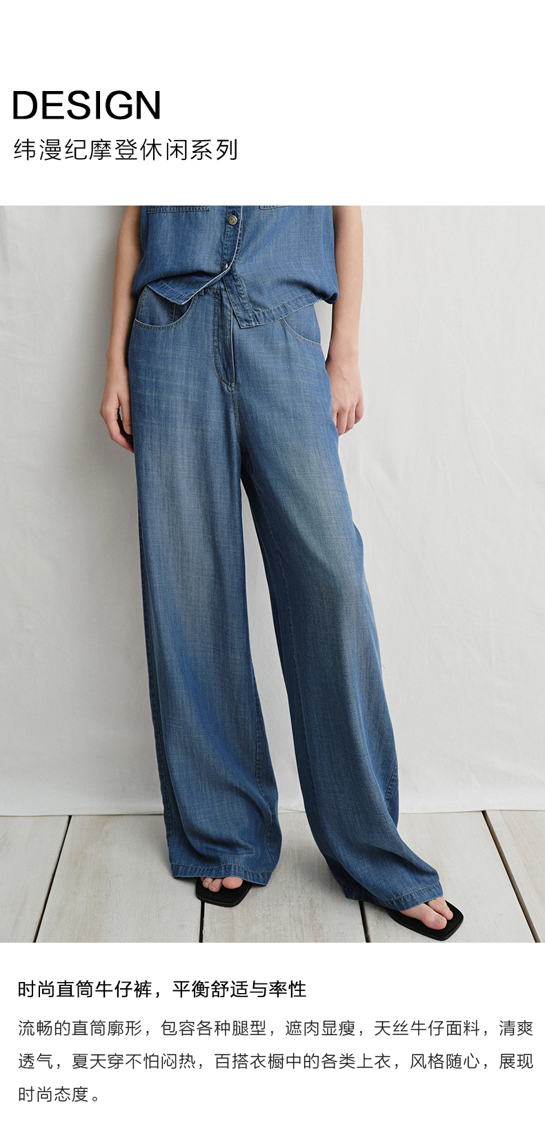 VIMAGE纬漫纪复古水洗高腰显瘦直筒阔腿牛仔裤2025夏季新款V2305910