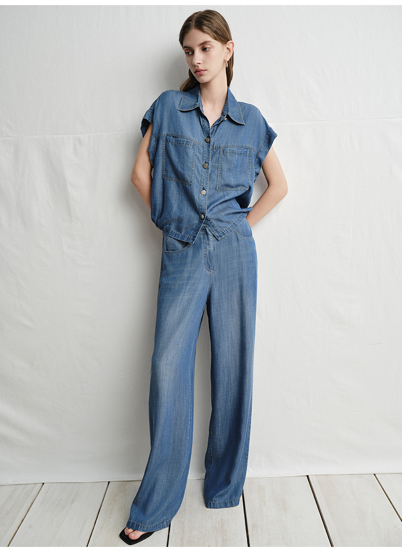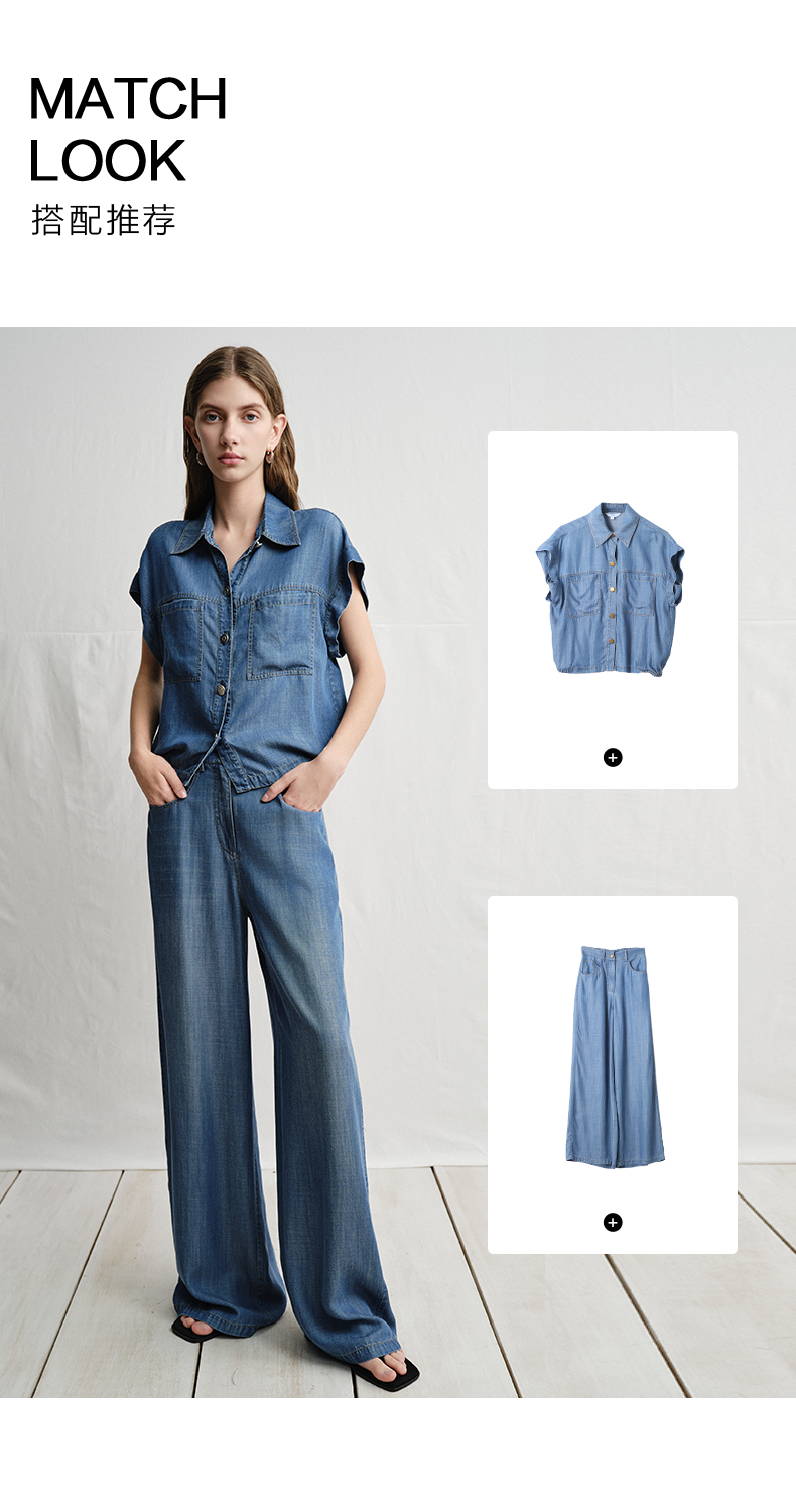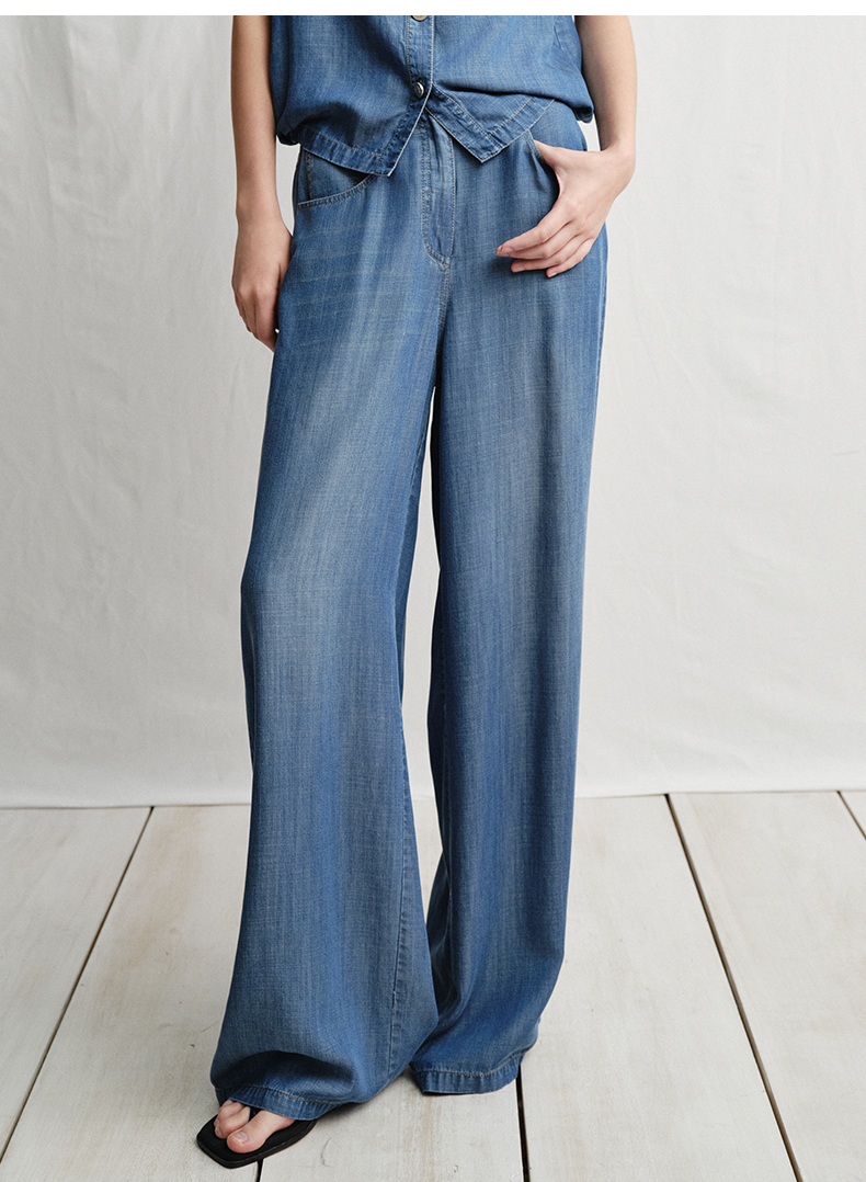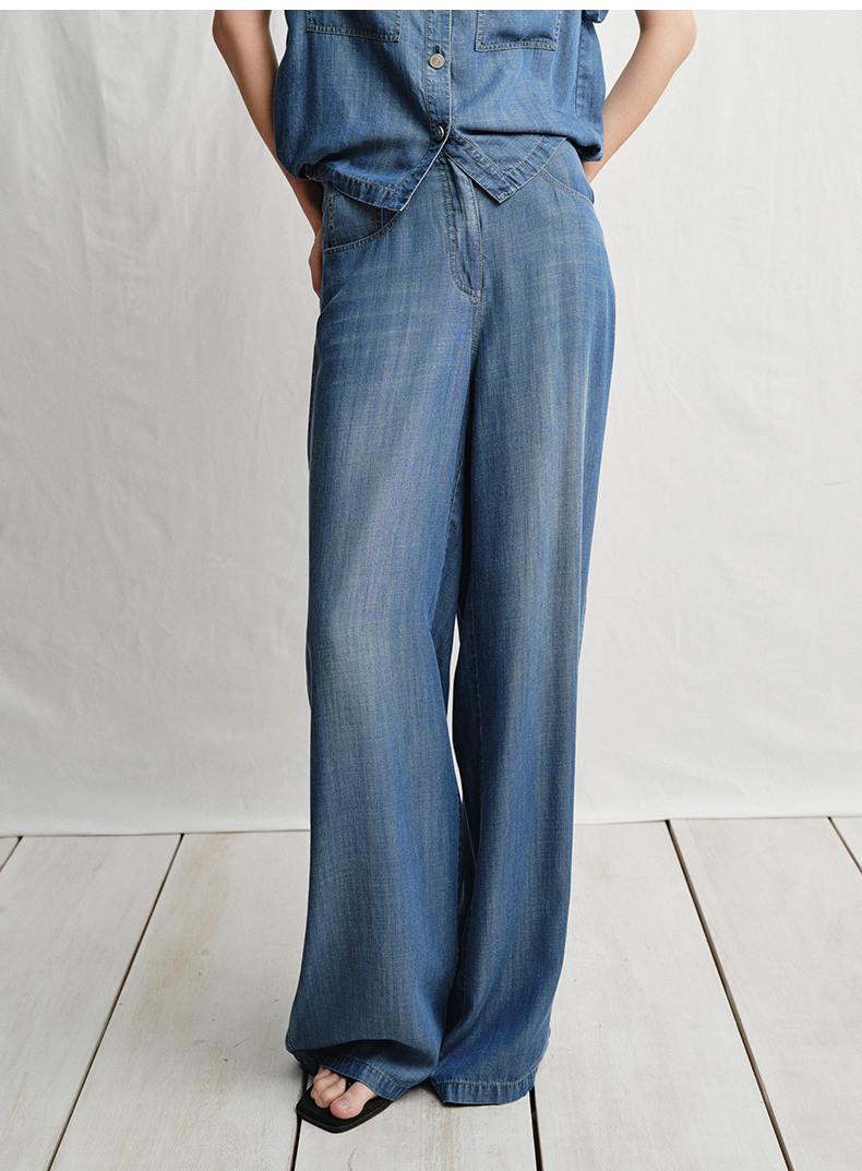 VIMAGE纬漫纪复古水洗高腰显瘦直筒阔腿牛仔裤2025夏季新款V2305910