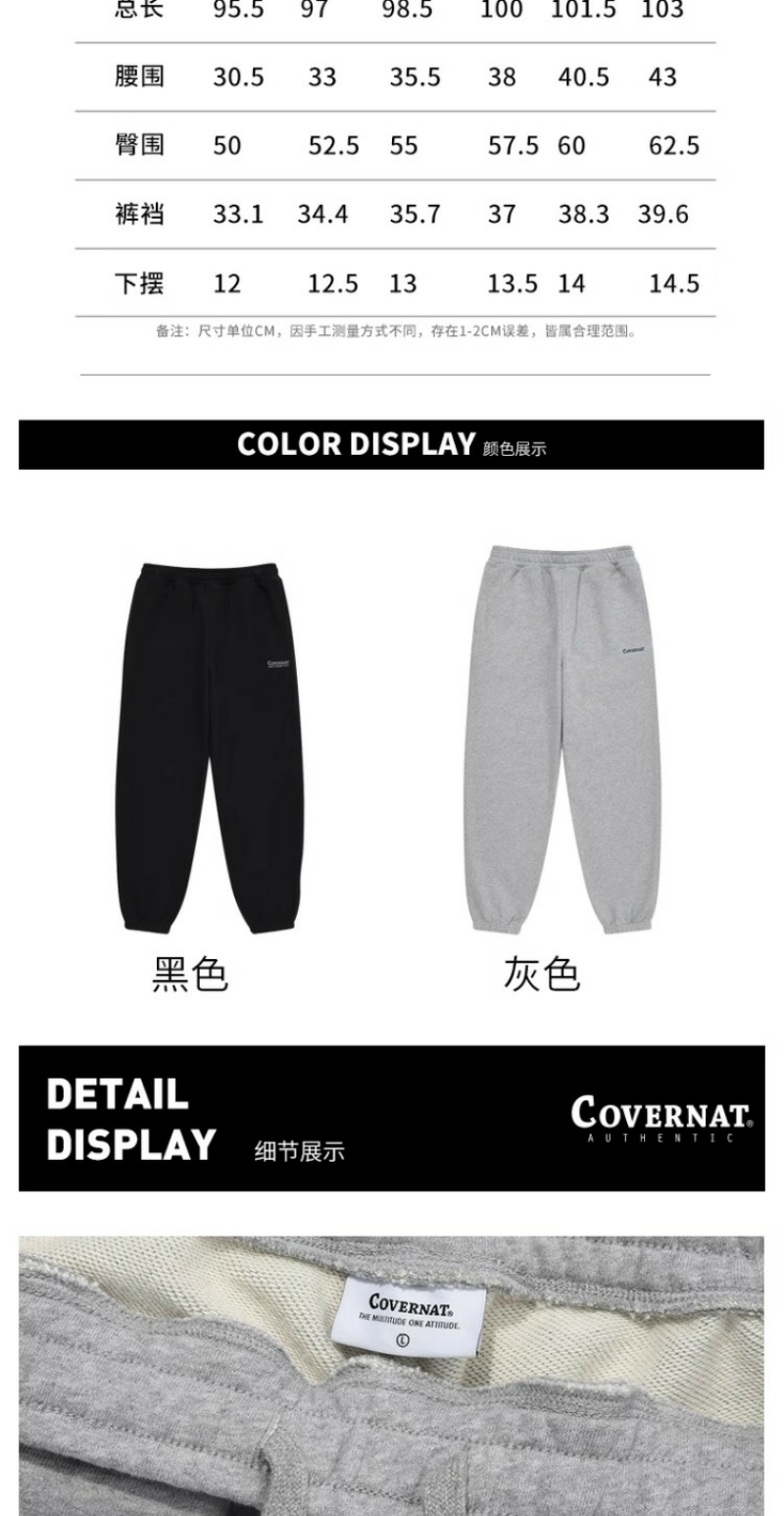 covernat韩国潮牌复古慢跑裤男女情侣休闲时尚运动裤纯棉舒适长裤CO2401PT19