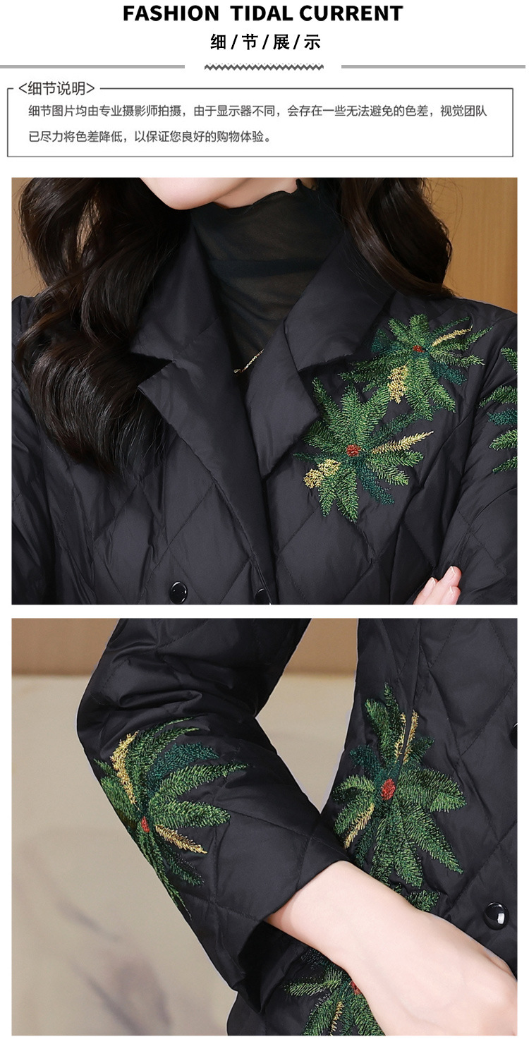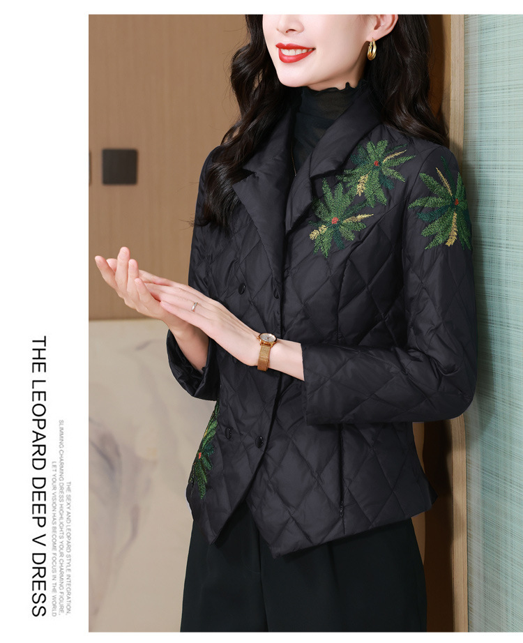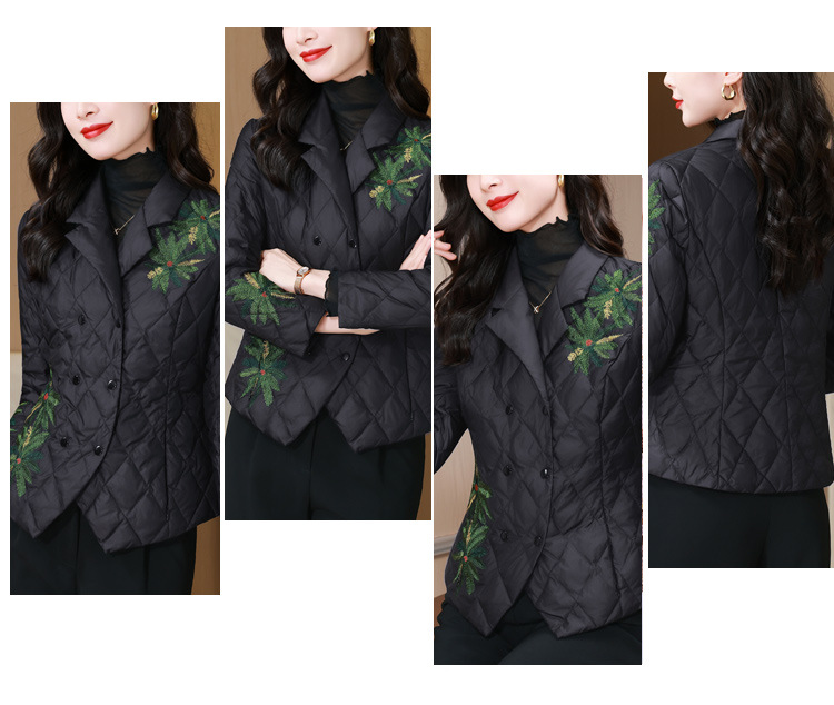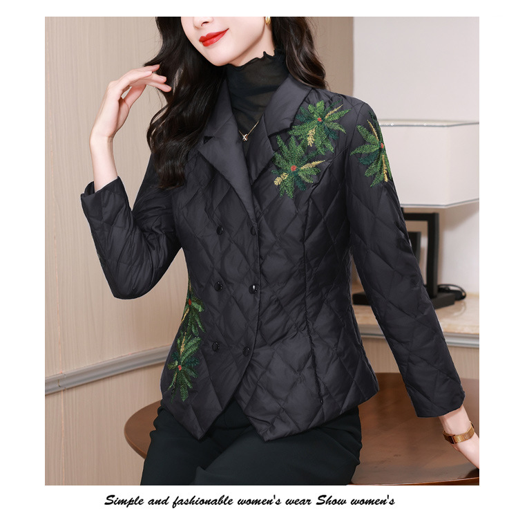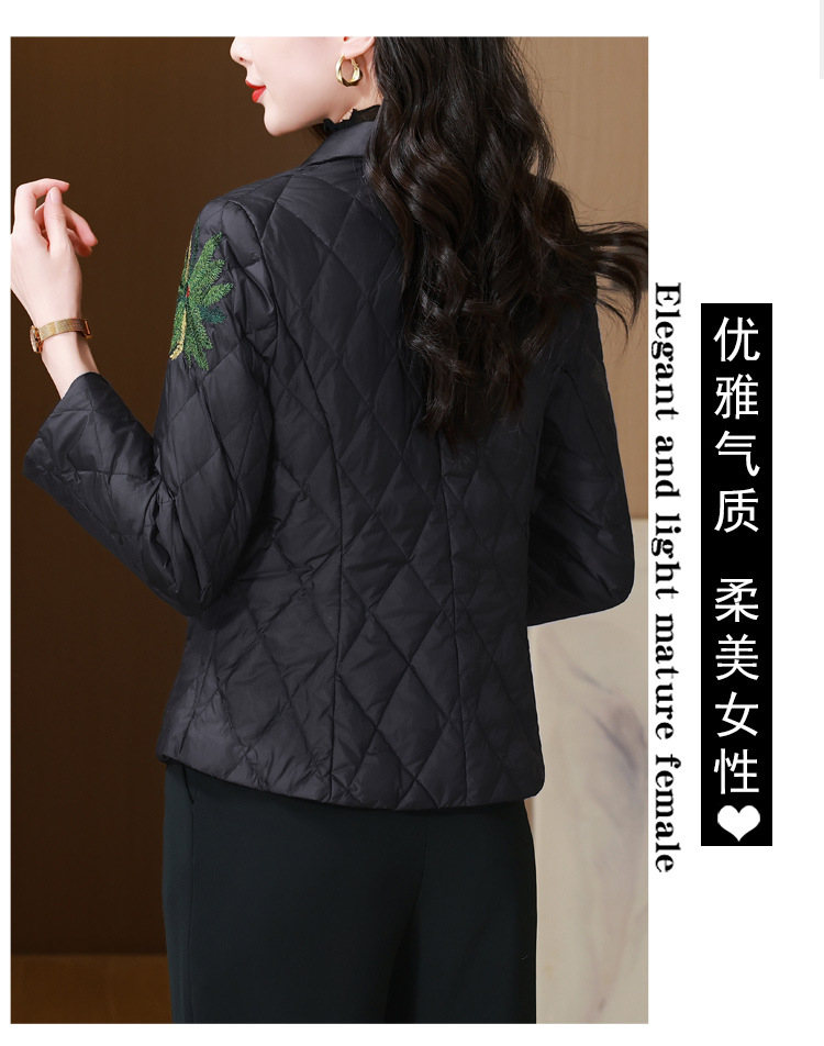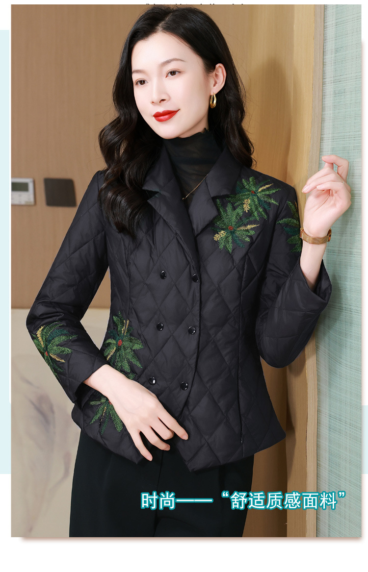 KQL B43N1660羽绒棉服外套刺绣花轻薄款西装领轻便棉服