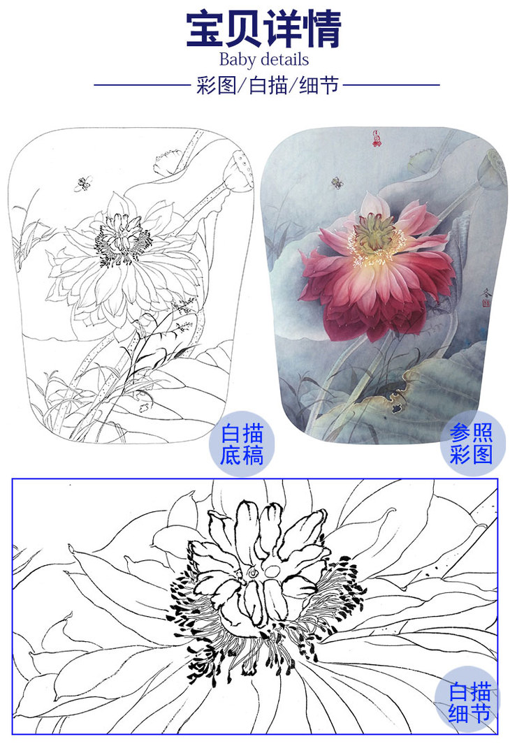 杨冬冬工笔花鸟白描底稿-荷花小品-HD14