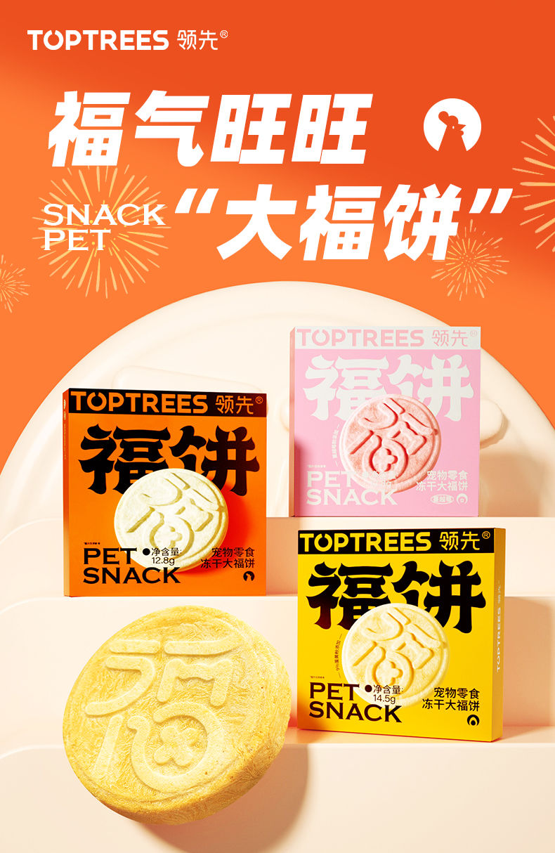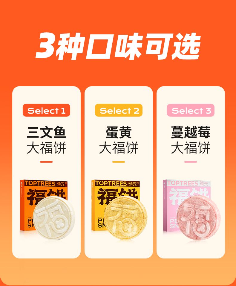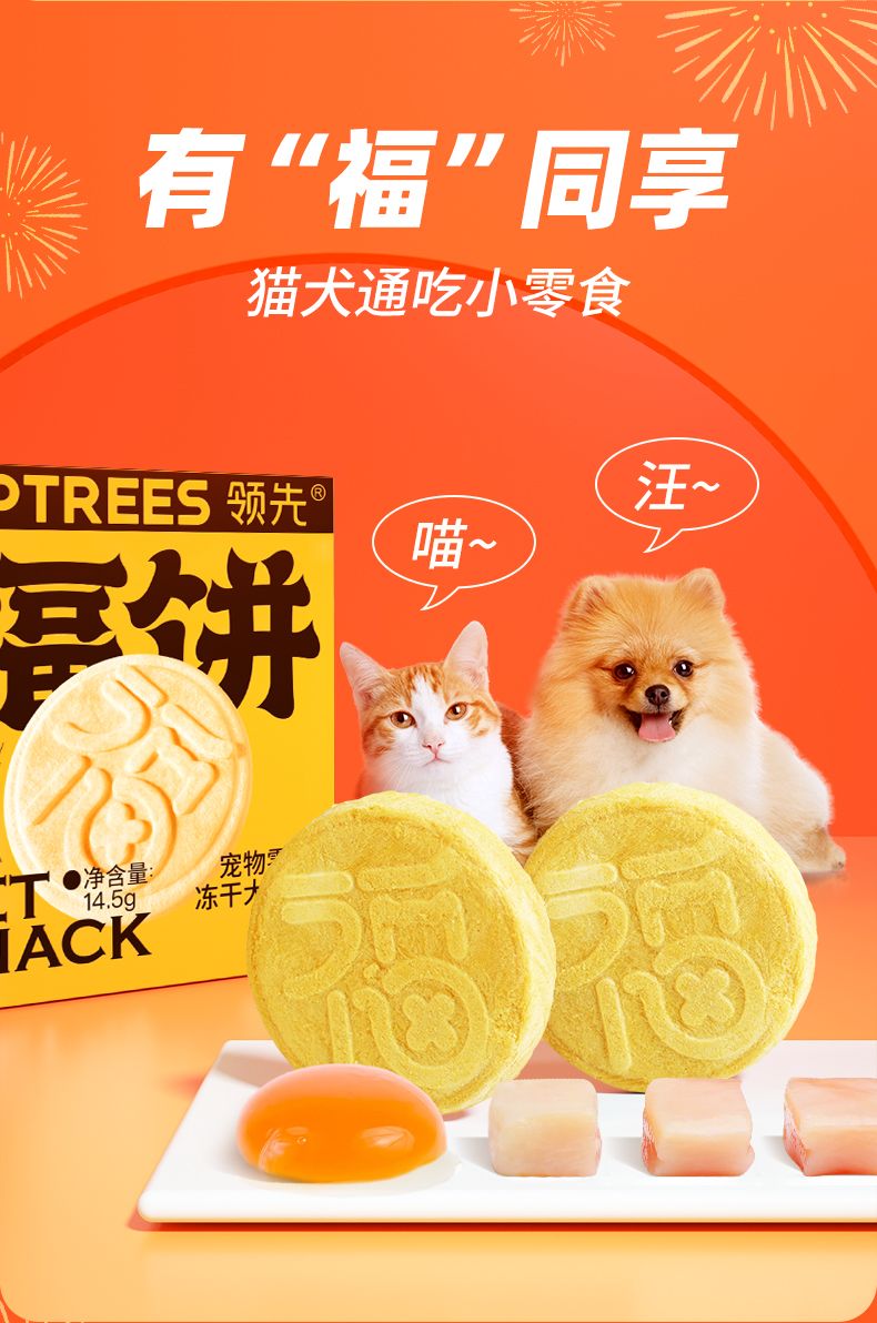 领先(Toptrees)冻干大福饼(蛋黄+鸡肉+蔓越莓)猫狗通用宠物零食纯肉冻干鸡胸肉