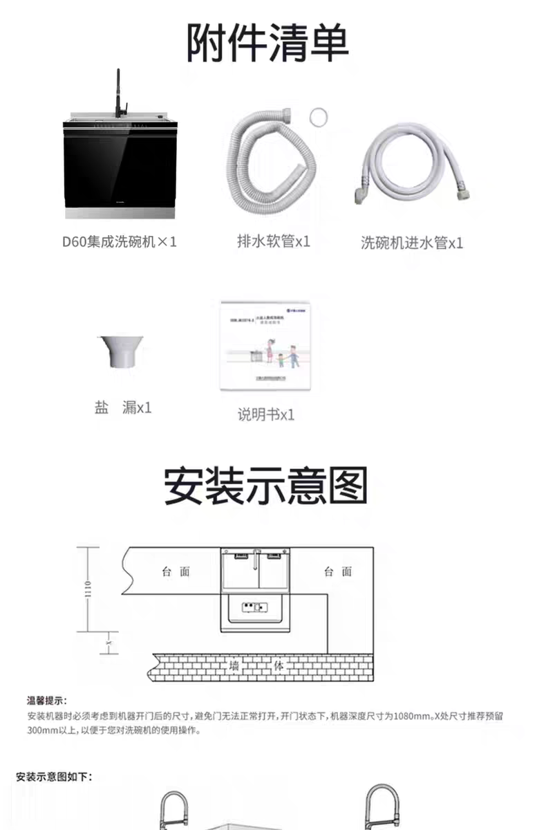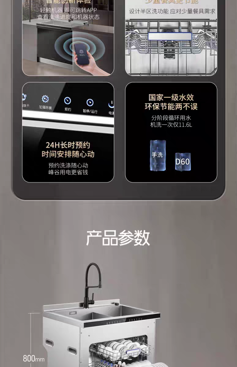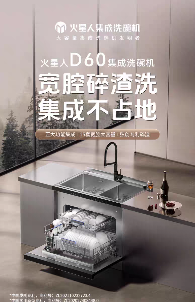 【门店同款】火星人D60集成洗碗机一体15套大容量厨房水槽家用