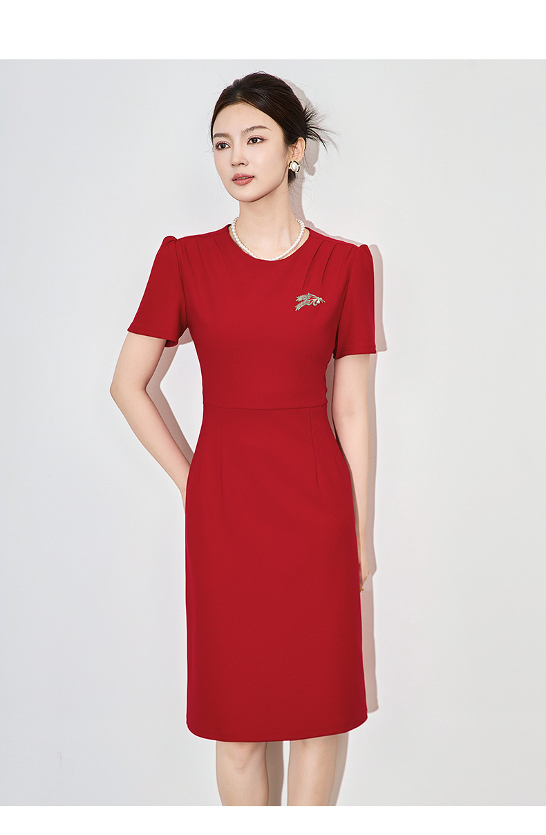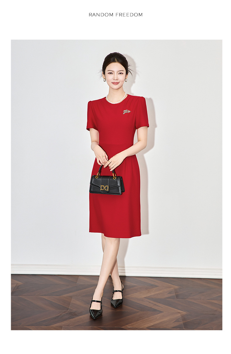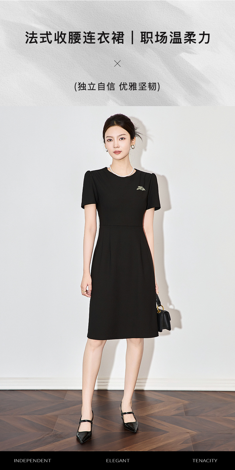 「高货wl」全新升级【铂金会员330/天猫449/差价119】(63428)洛诗琳优雅捏褶显瘦连衣裙2025夏季新款收腰气质包臀裙女