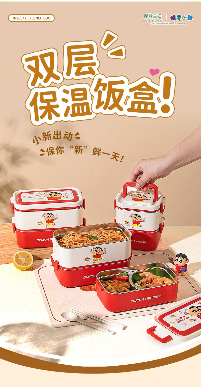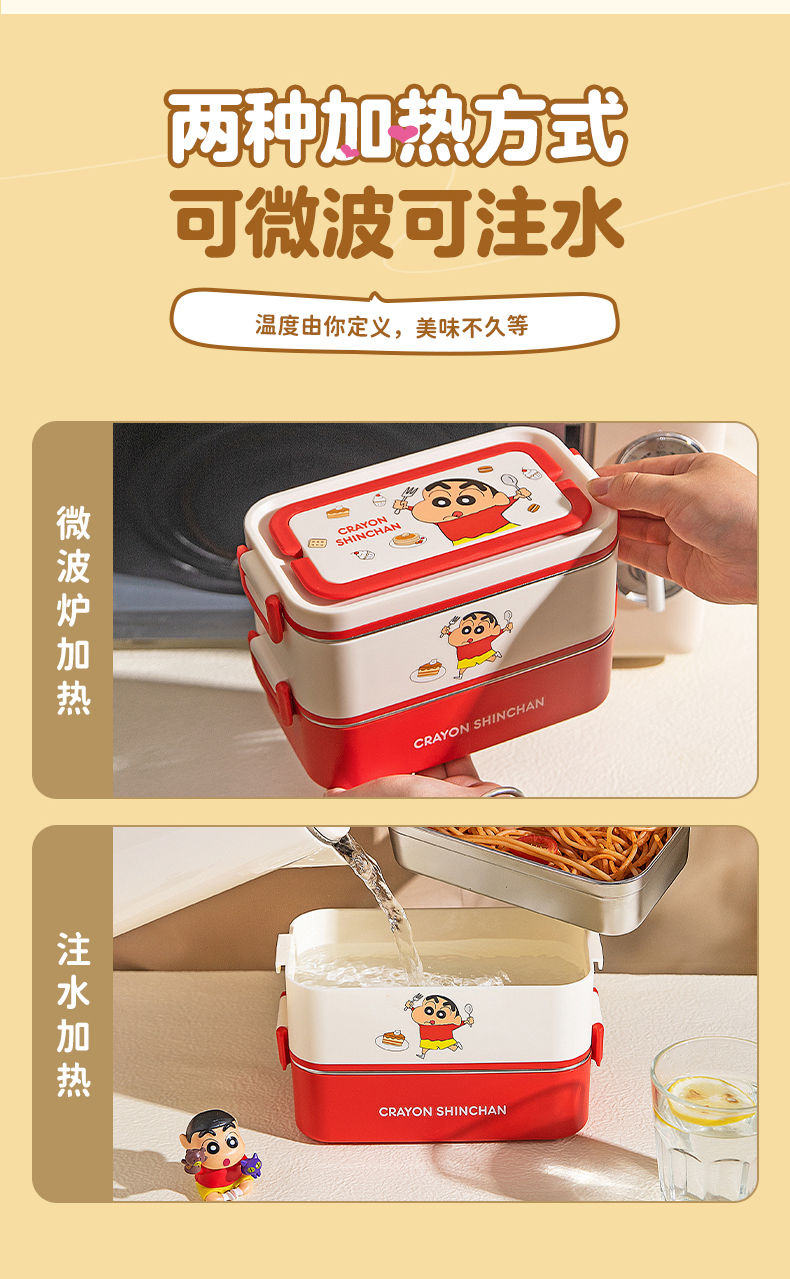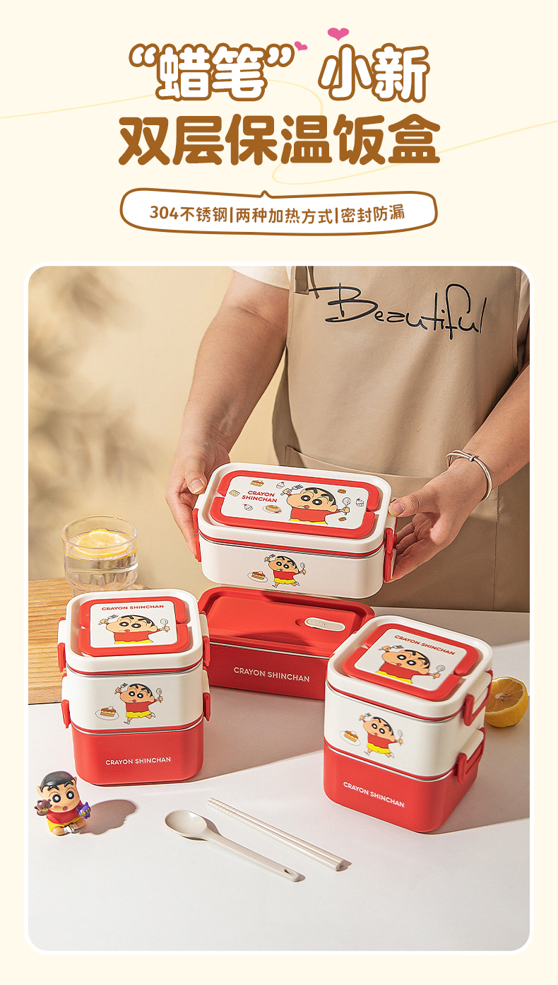 摩登主妇&蜡笔小新 保温饭盒微波炉加热便当盒不锈钢双层饭盒