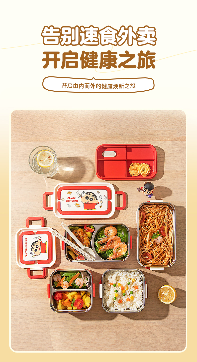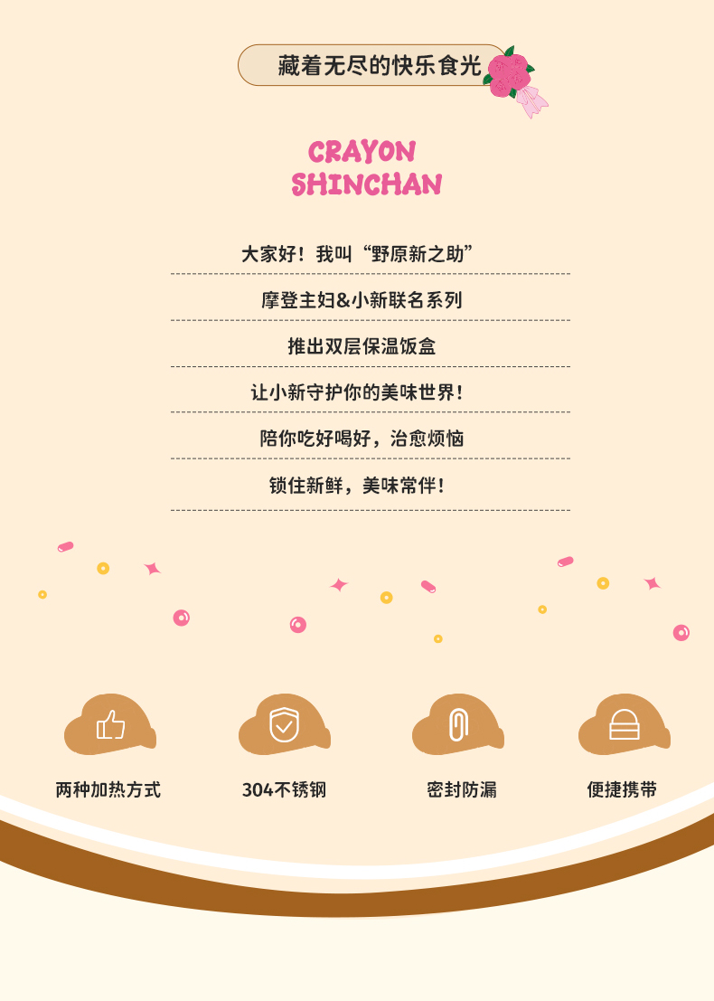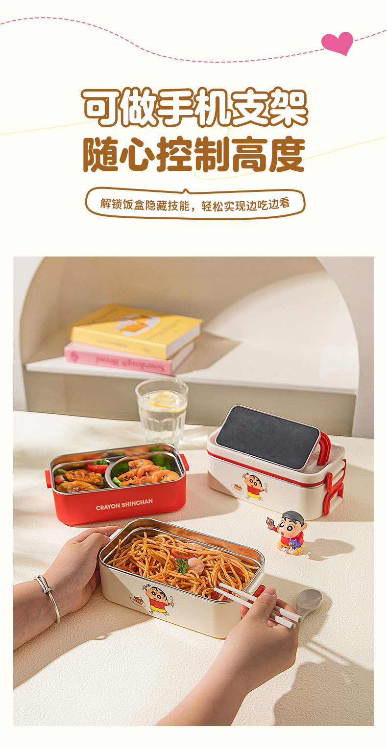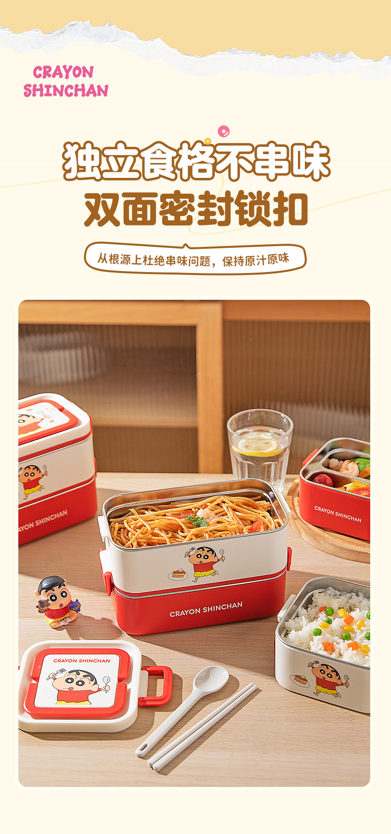 摩登主妇&蜡笔小新 保温饭盒微波炉加热便当盒不锈钢双层饭盒