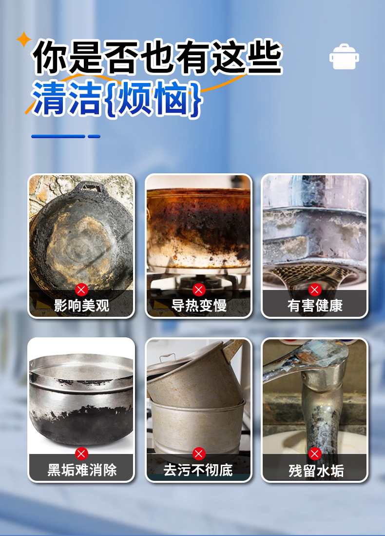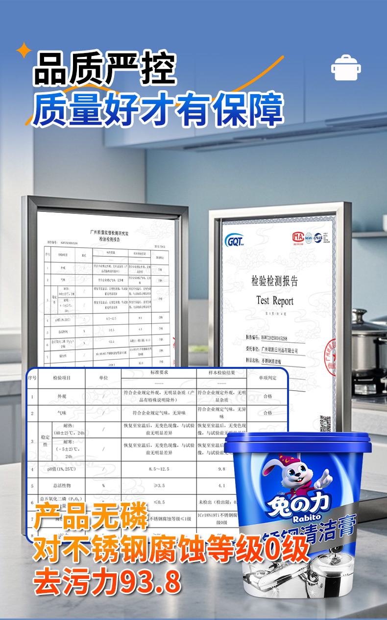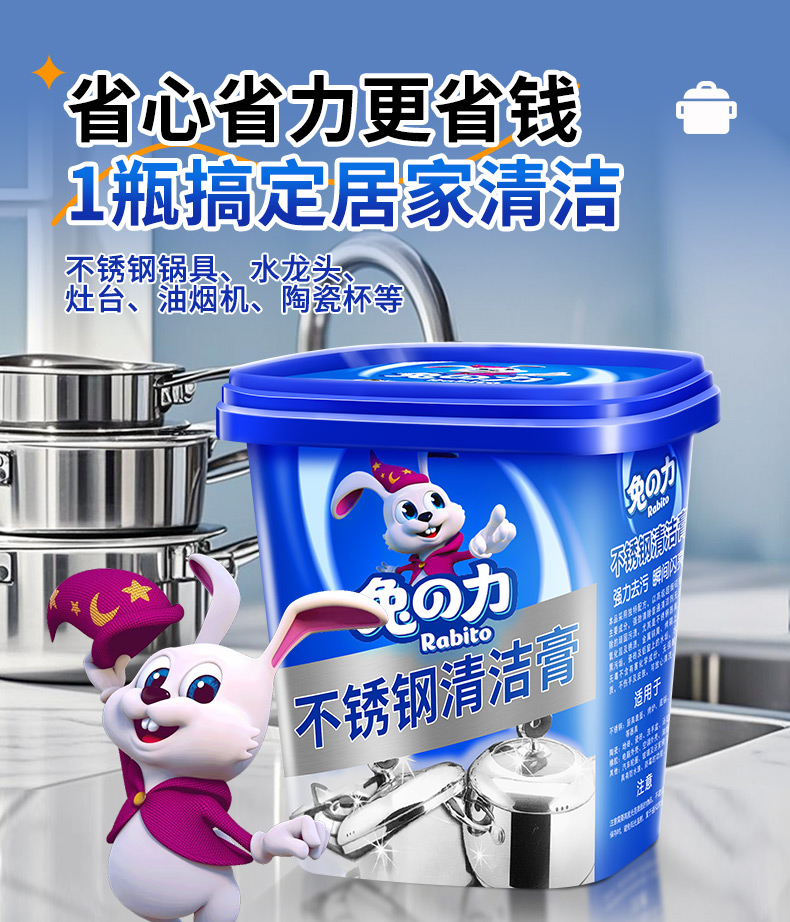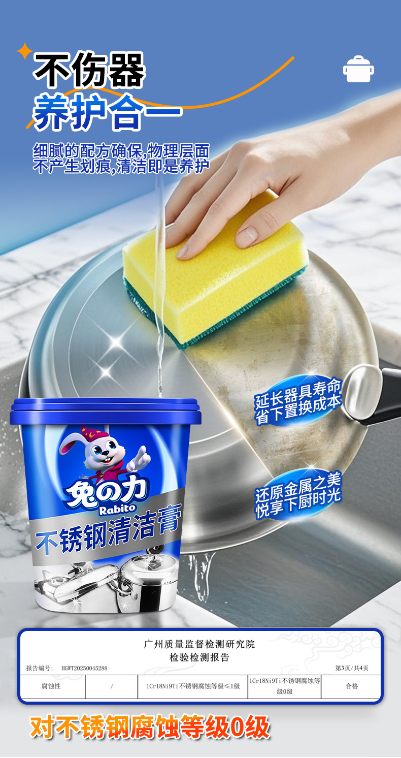 兔力不锈钢清洁膏 家用焦渍厨房清洁剂洗锅底黑垢去除强力除锈器 蓝杯500g/瓶