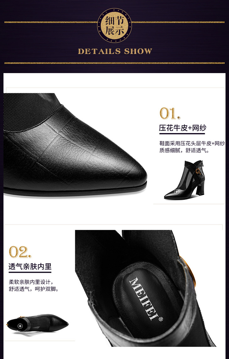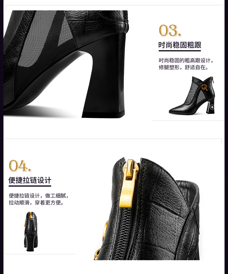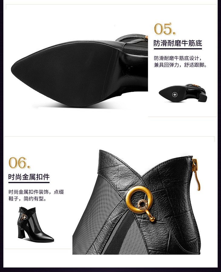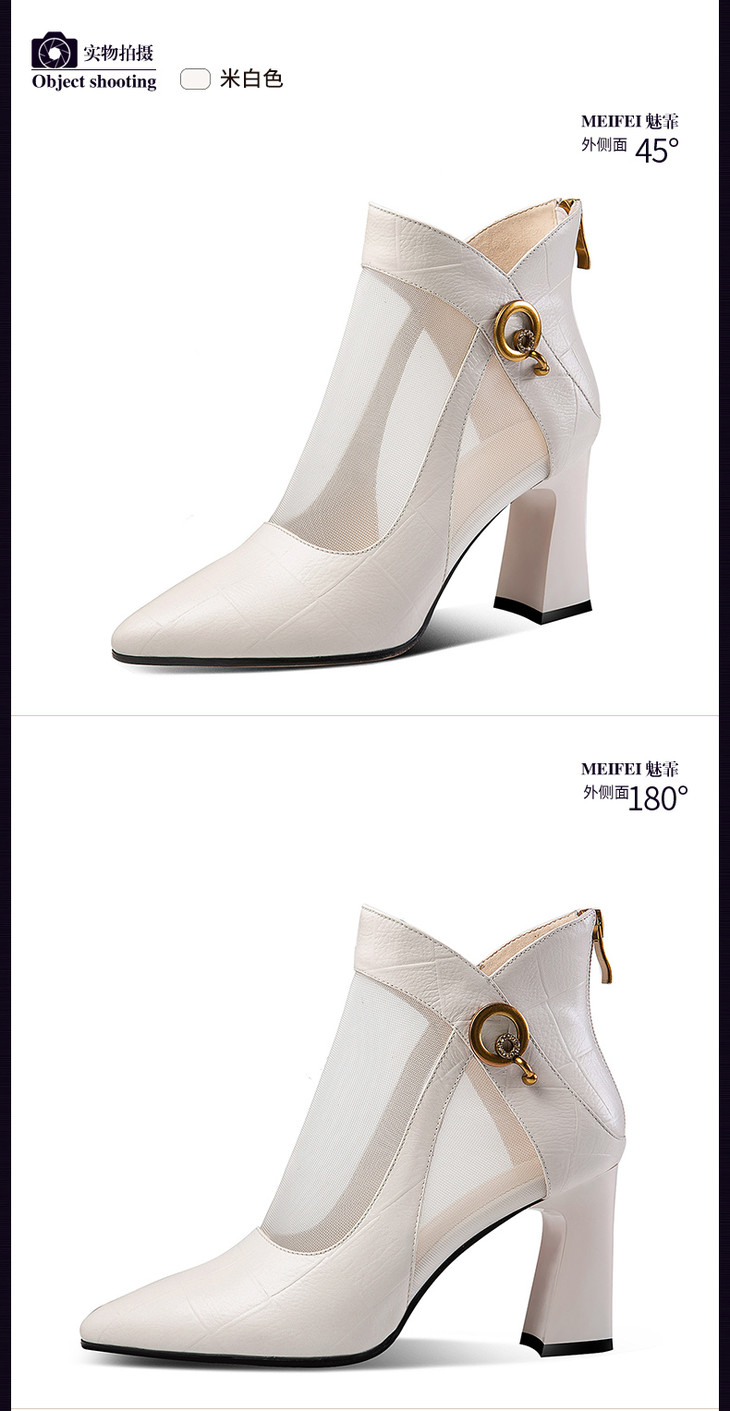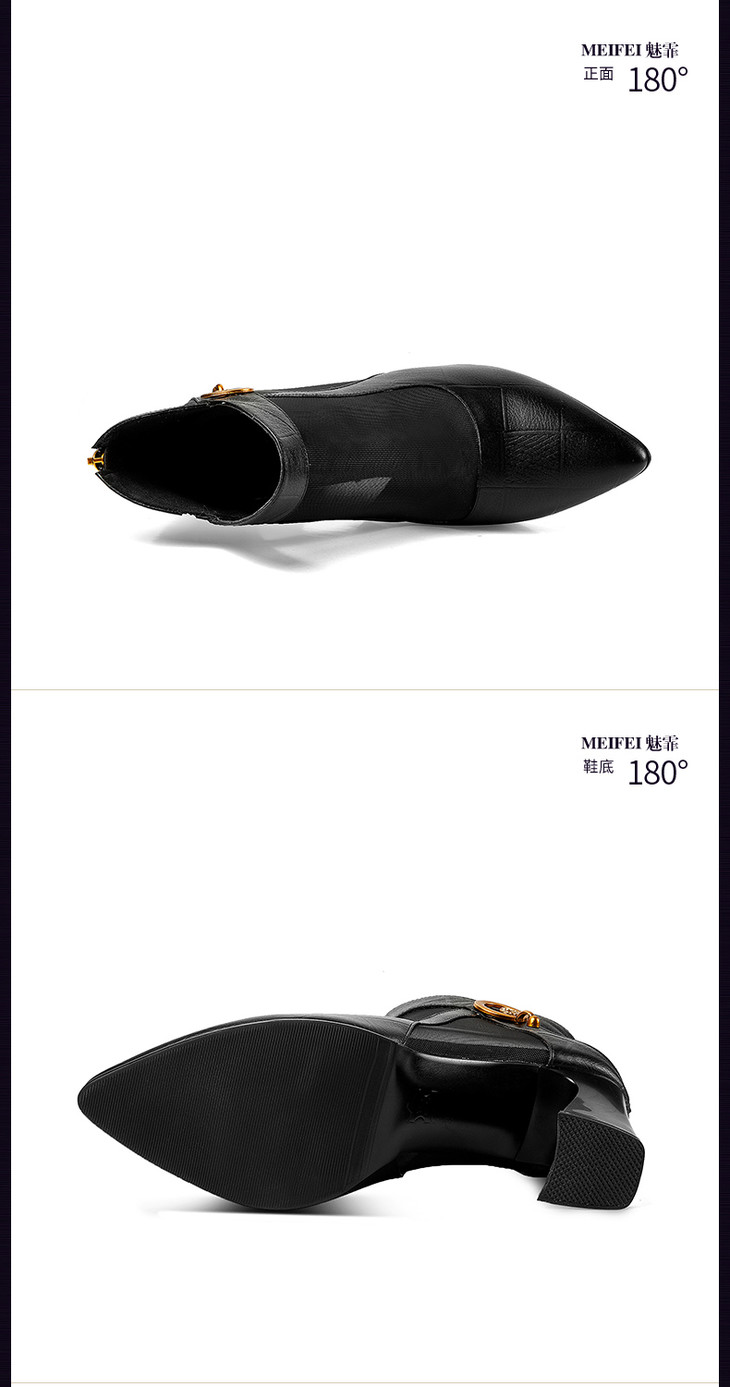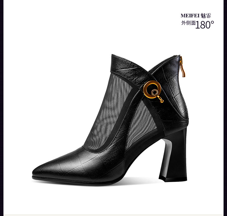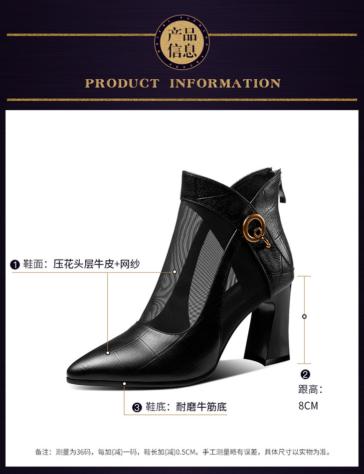 JW688新款网靴镂空粗跟高跟尖头女鞋凉靴子