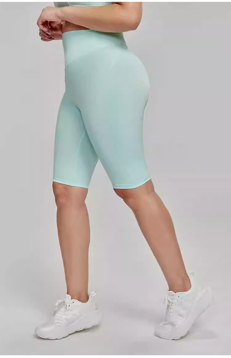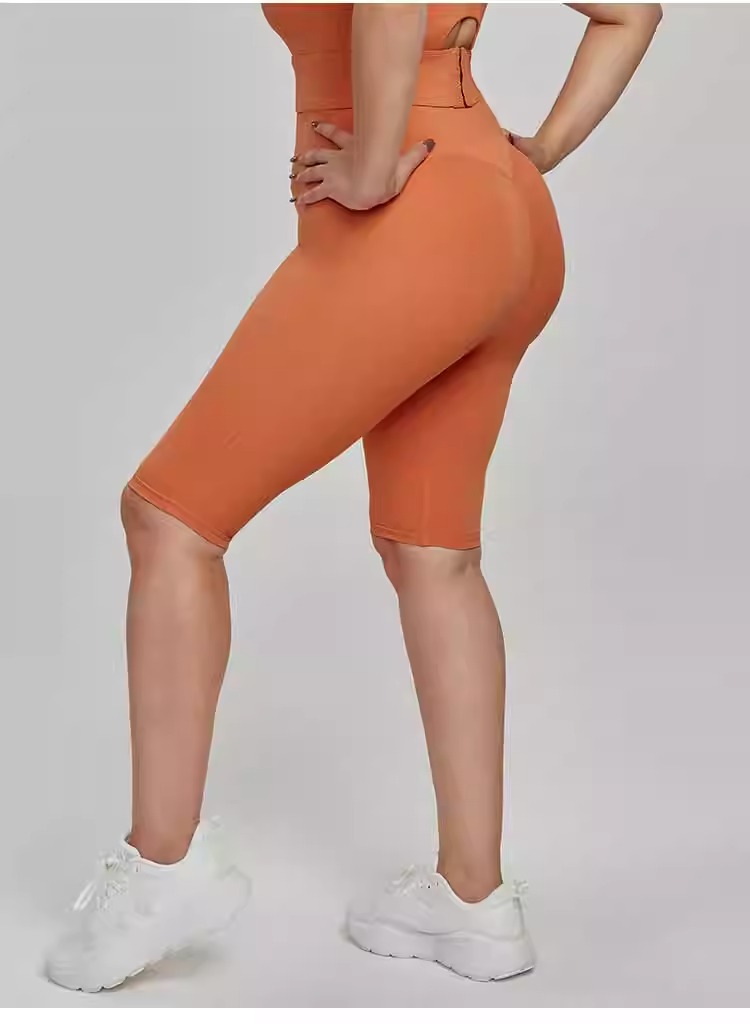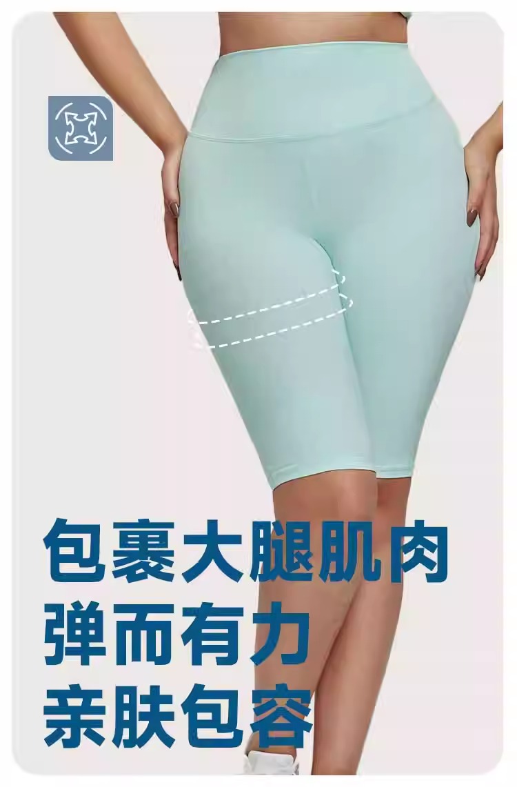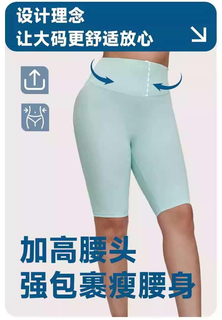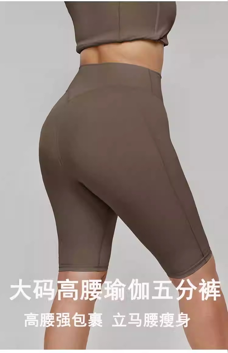 【限时秒】YOGACODE【火树银花系列】大码运动短裤高腰强包裹7A抗菌微胖骑行裤胖mm瑜伽5分裤DWS215043