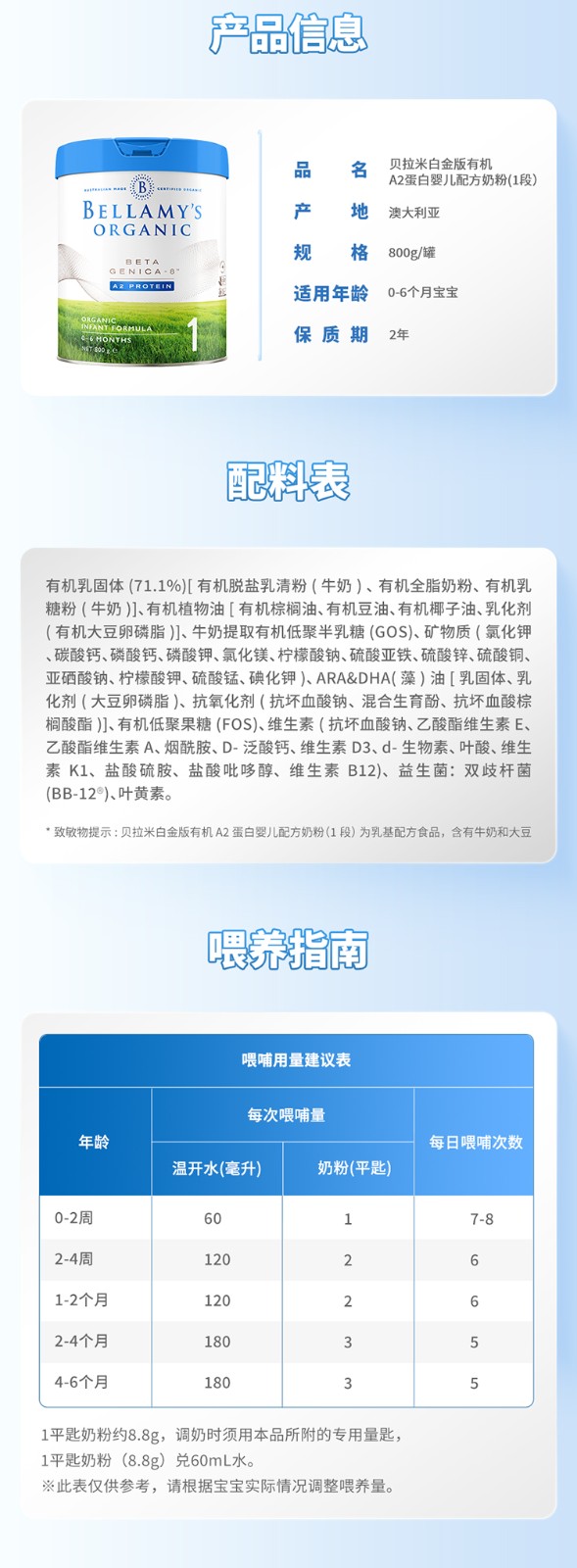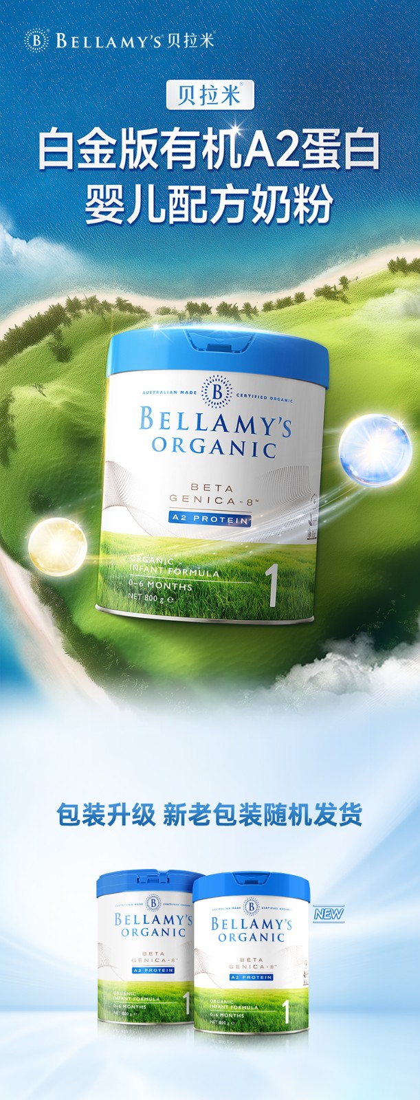 澳洲贝拉米Bellamy‘s Organic白金版有机A2奶粉4段800g(新老包装随机发货)