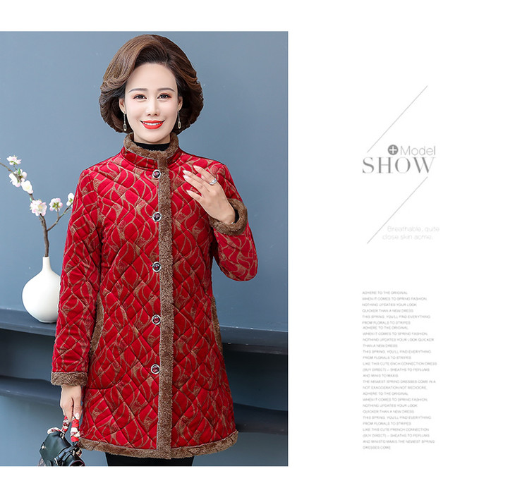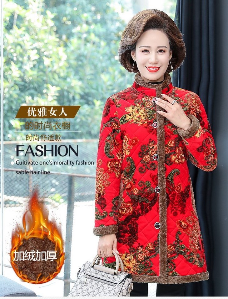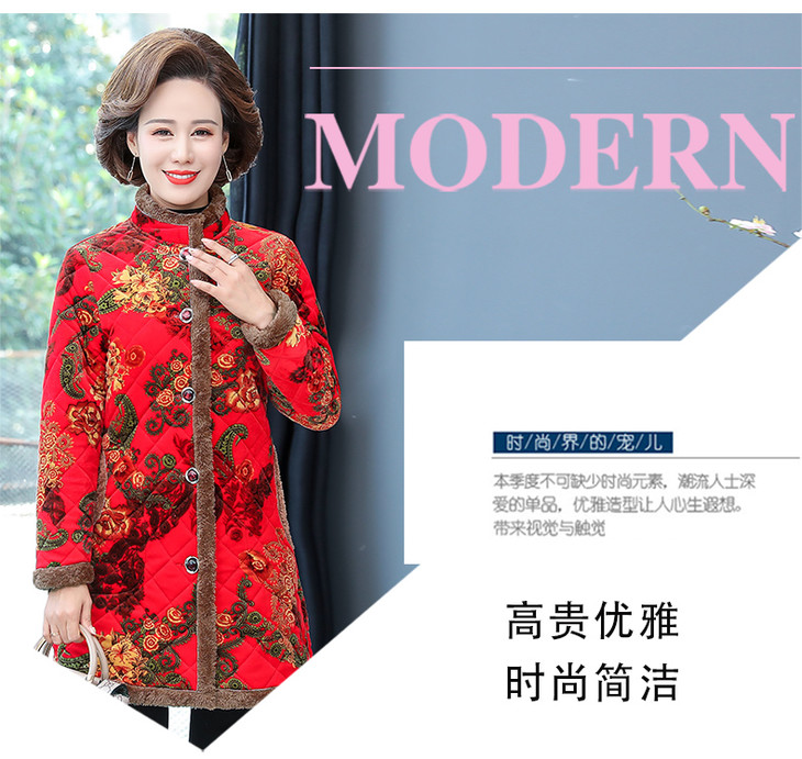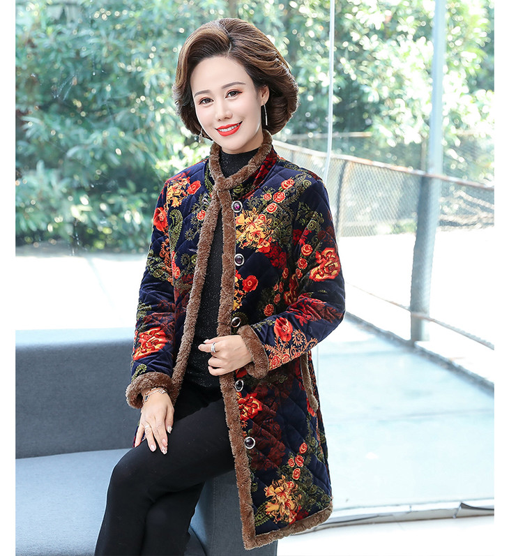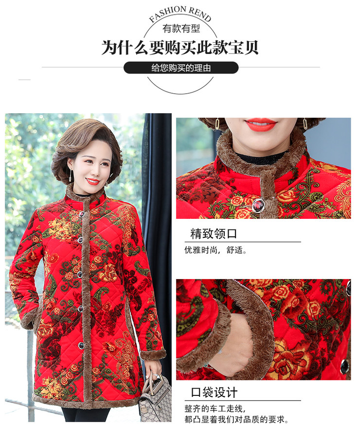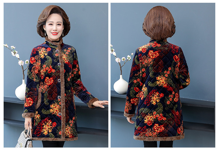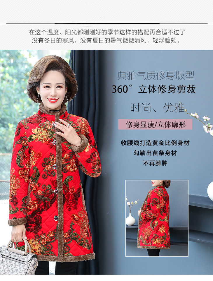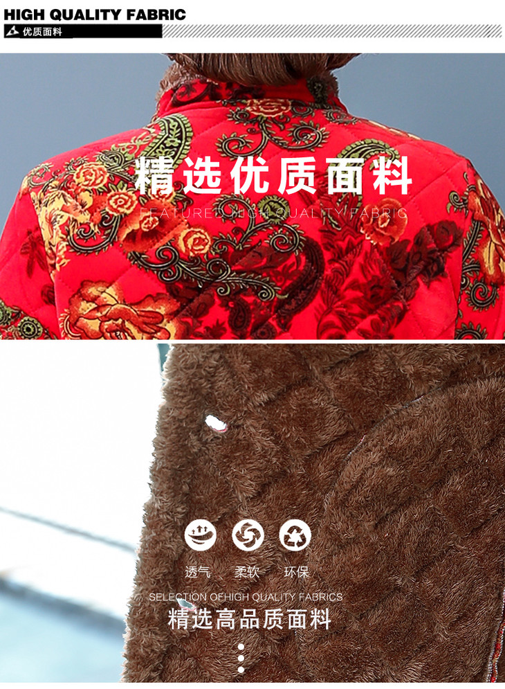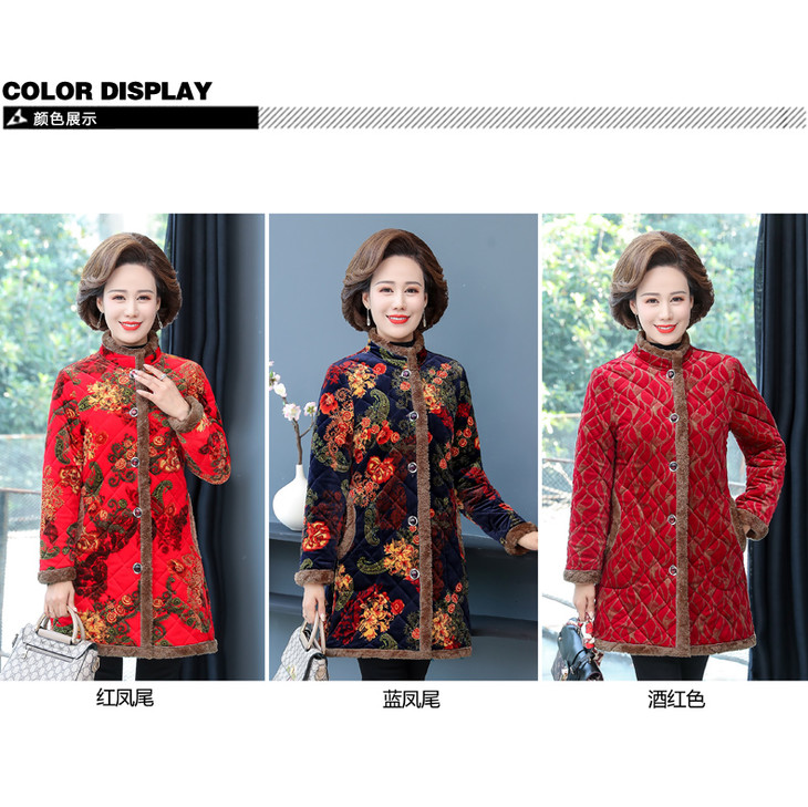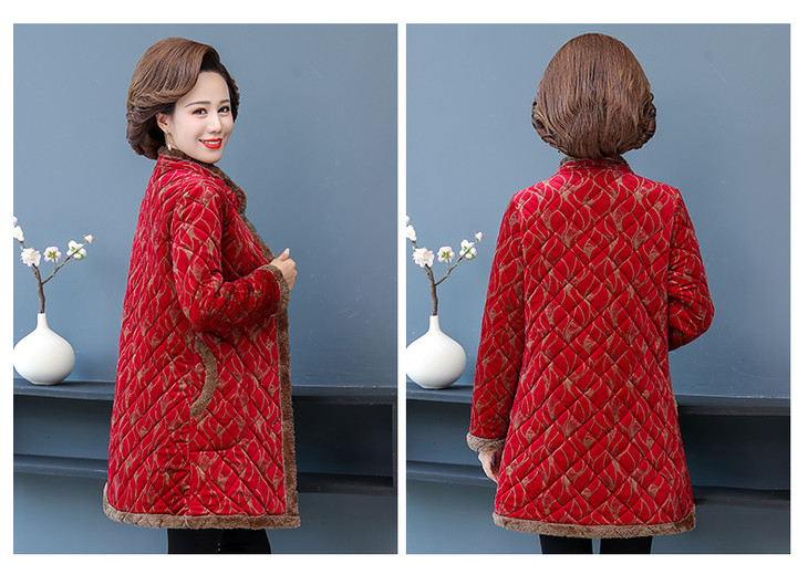 W-147新款中老年女加绒棉袄加肥加大码中长款奶奶棉袄