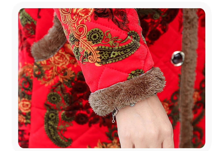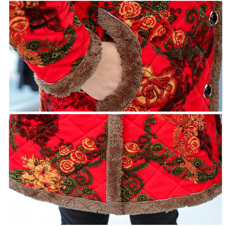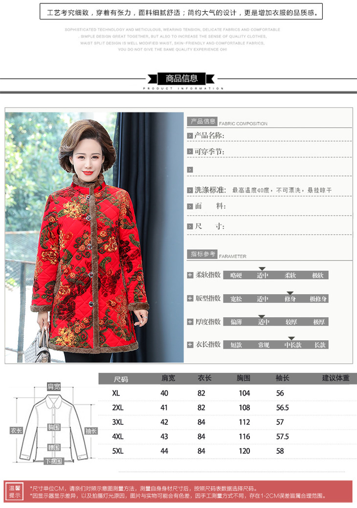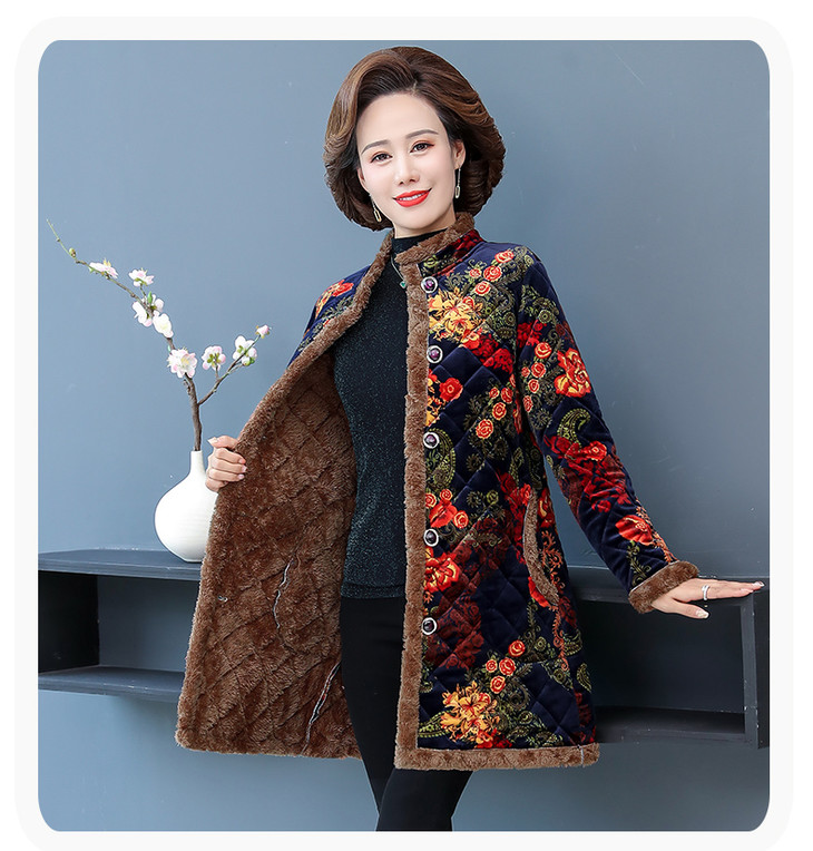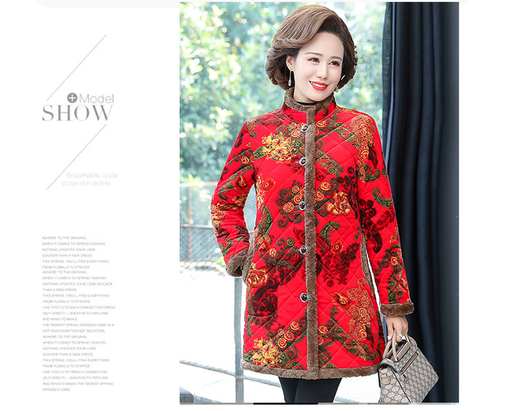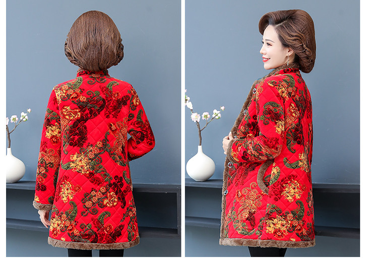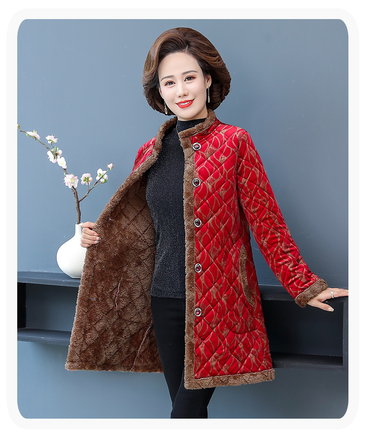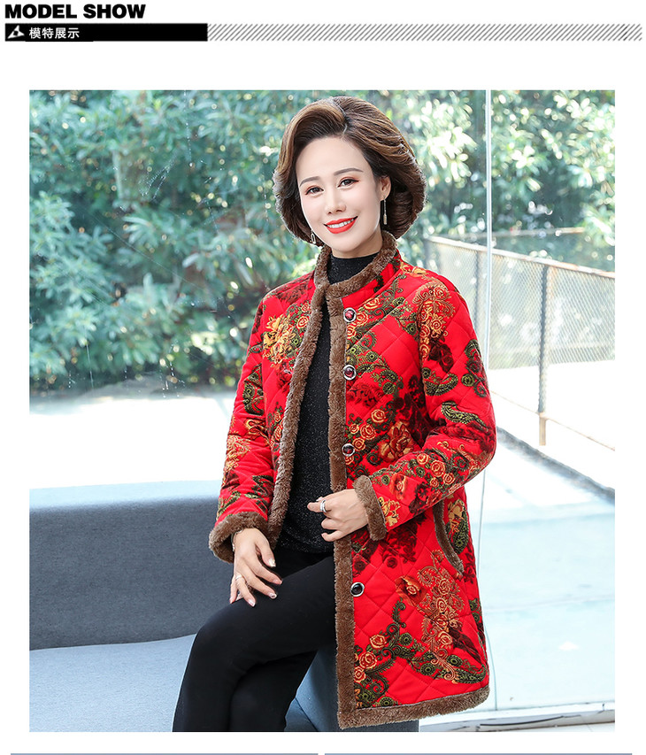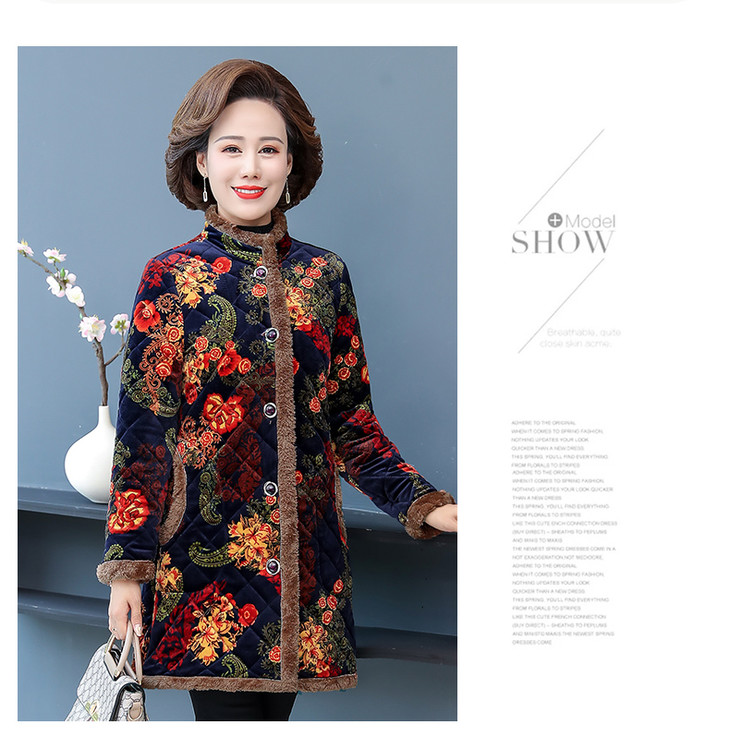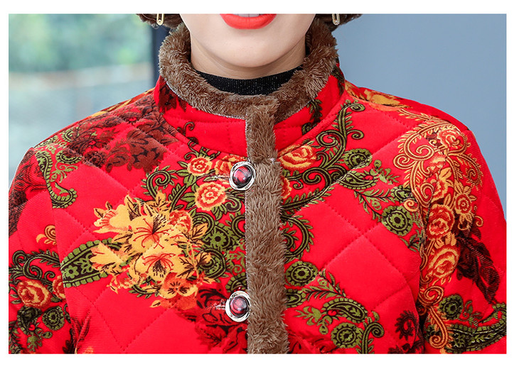 W-147新款中老年女加绒棉袄加肥加大码中长款奶奶棉袄