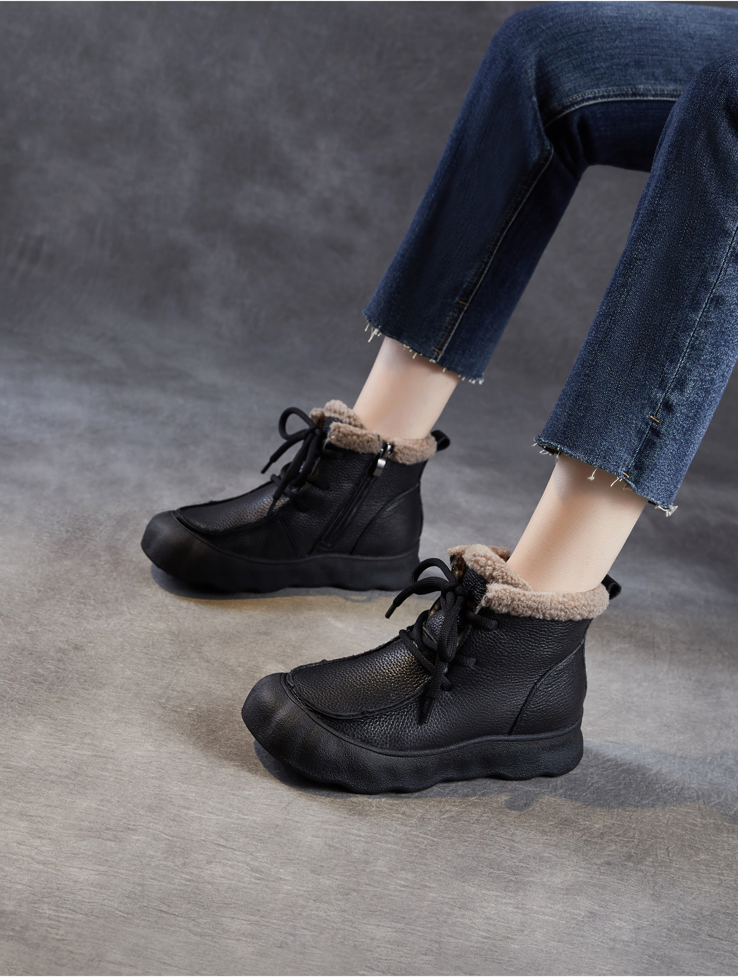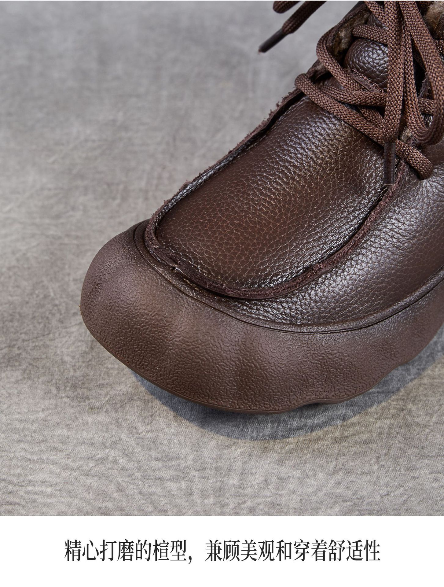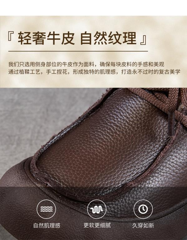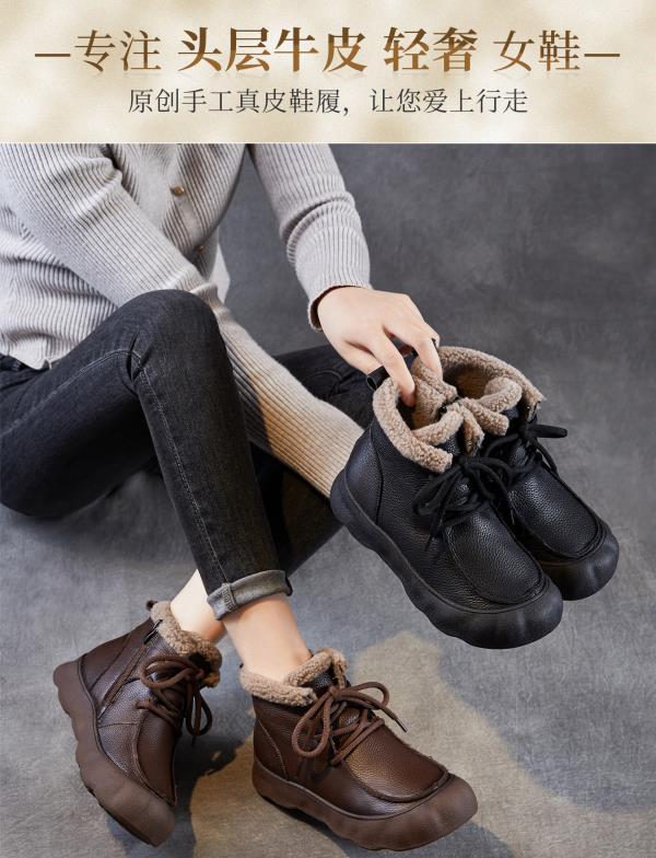复古厚底头层牛皮雪地靴,加绒加厚短靴真皮棉靴棉鞋ZM258727