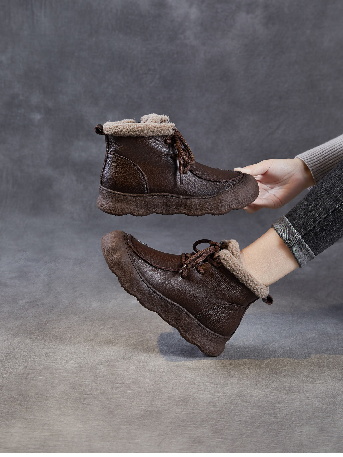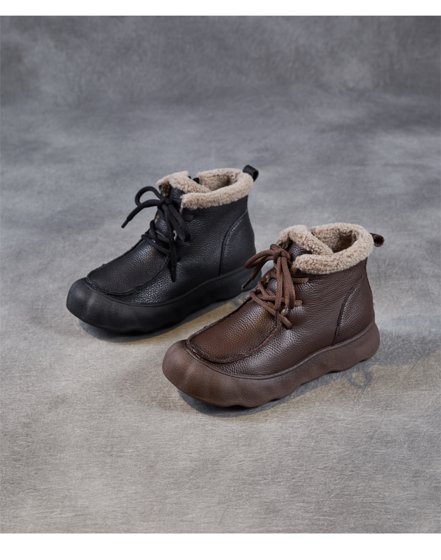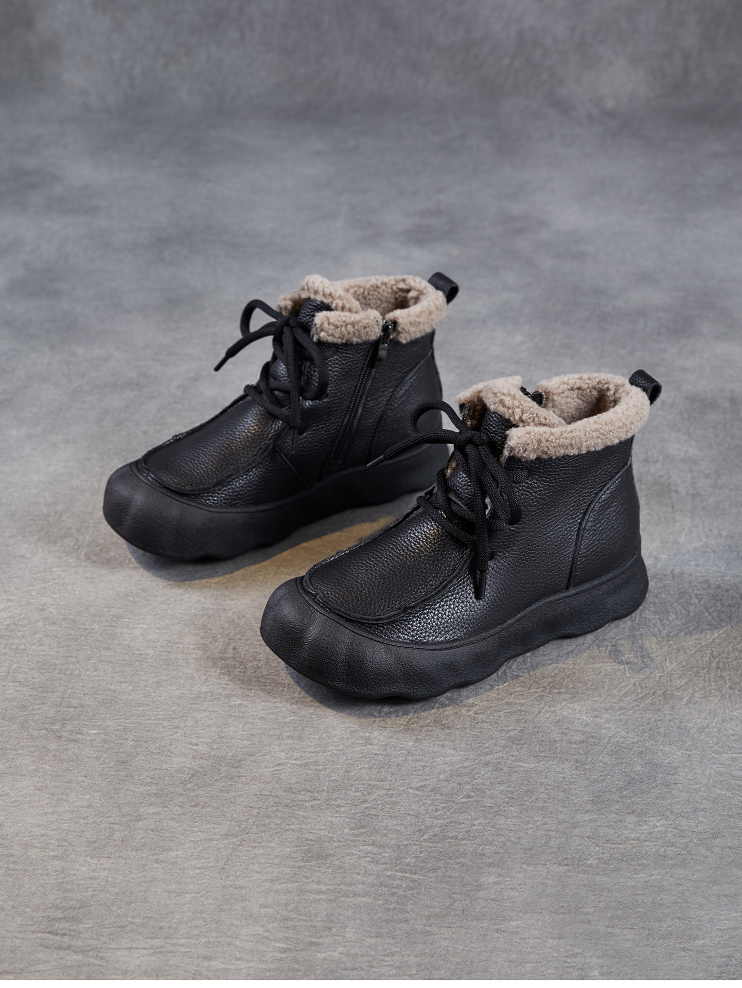 复古厚底头层牛皮雪地靴,加绒加厚短靴真皮棉靴棉鞋ZM258727