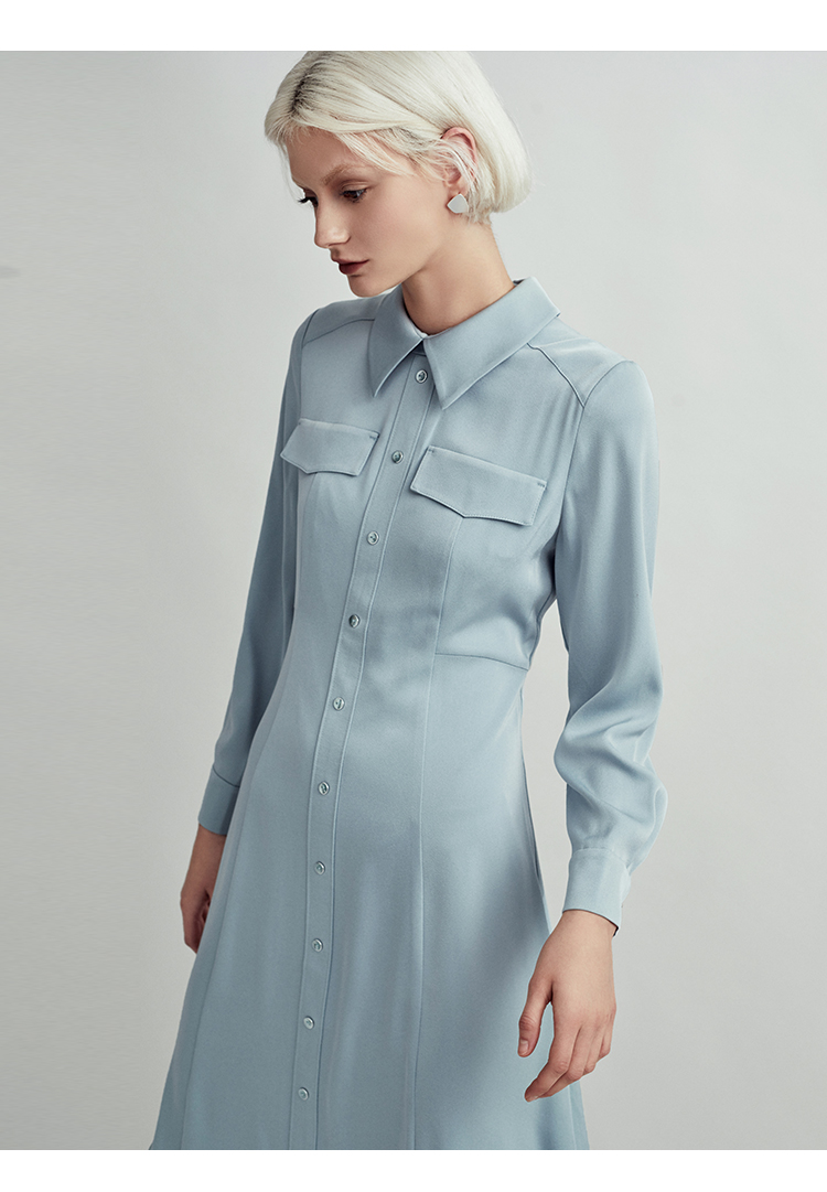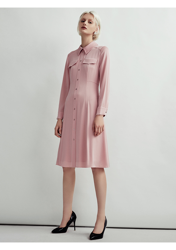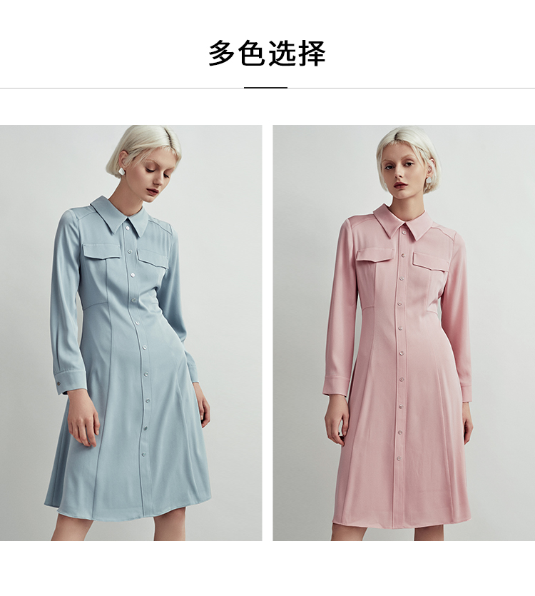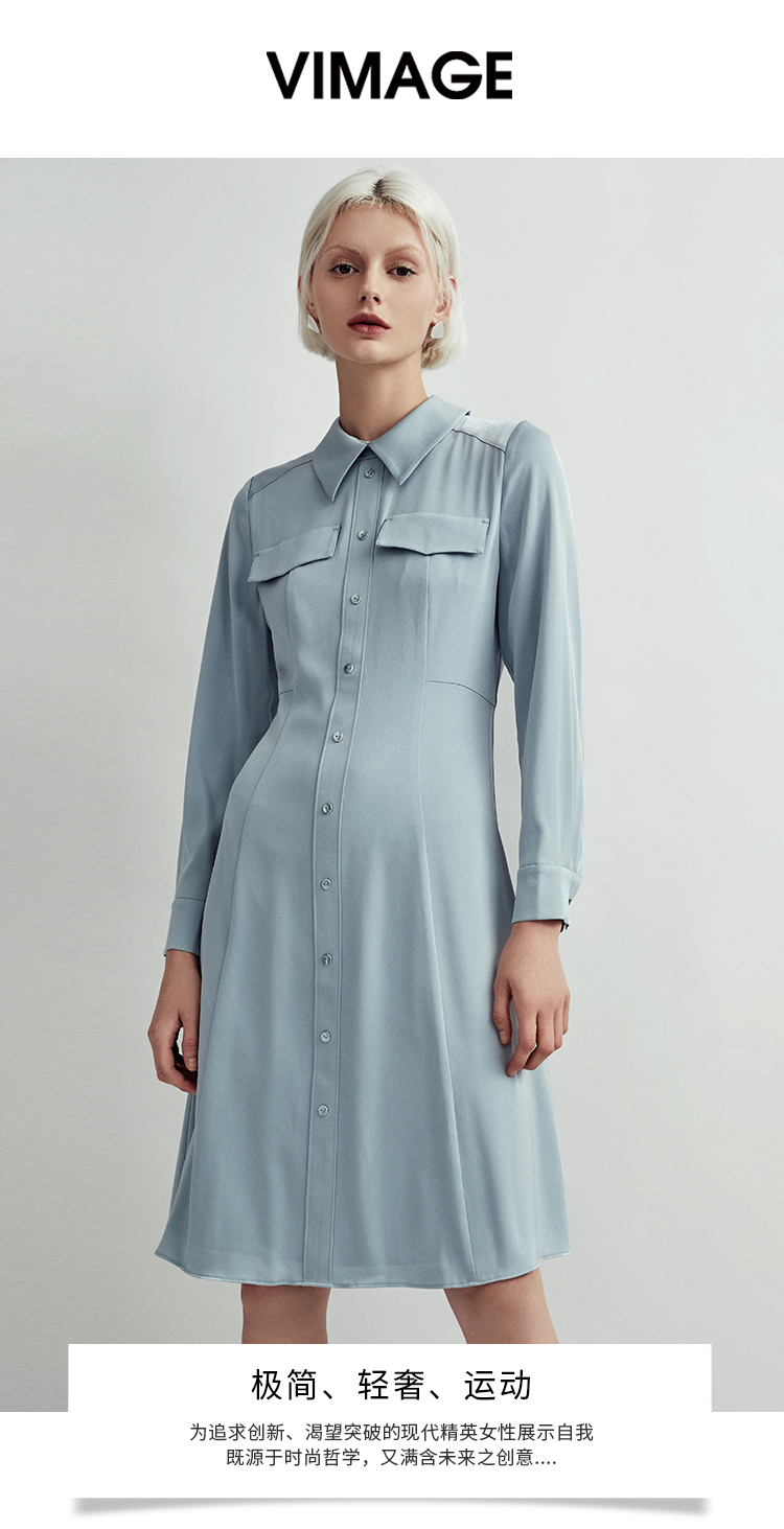 VIMAGE纬漫纪秋款时尚通勤纯色百搭修身收腰显瘦连衣裙女V1407018