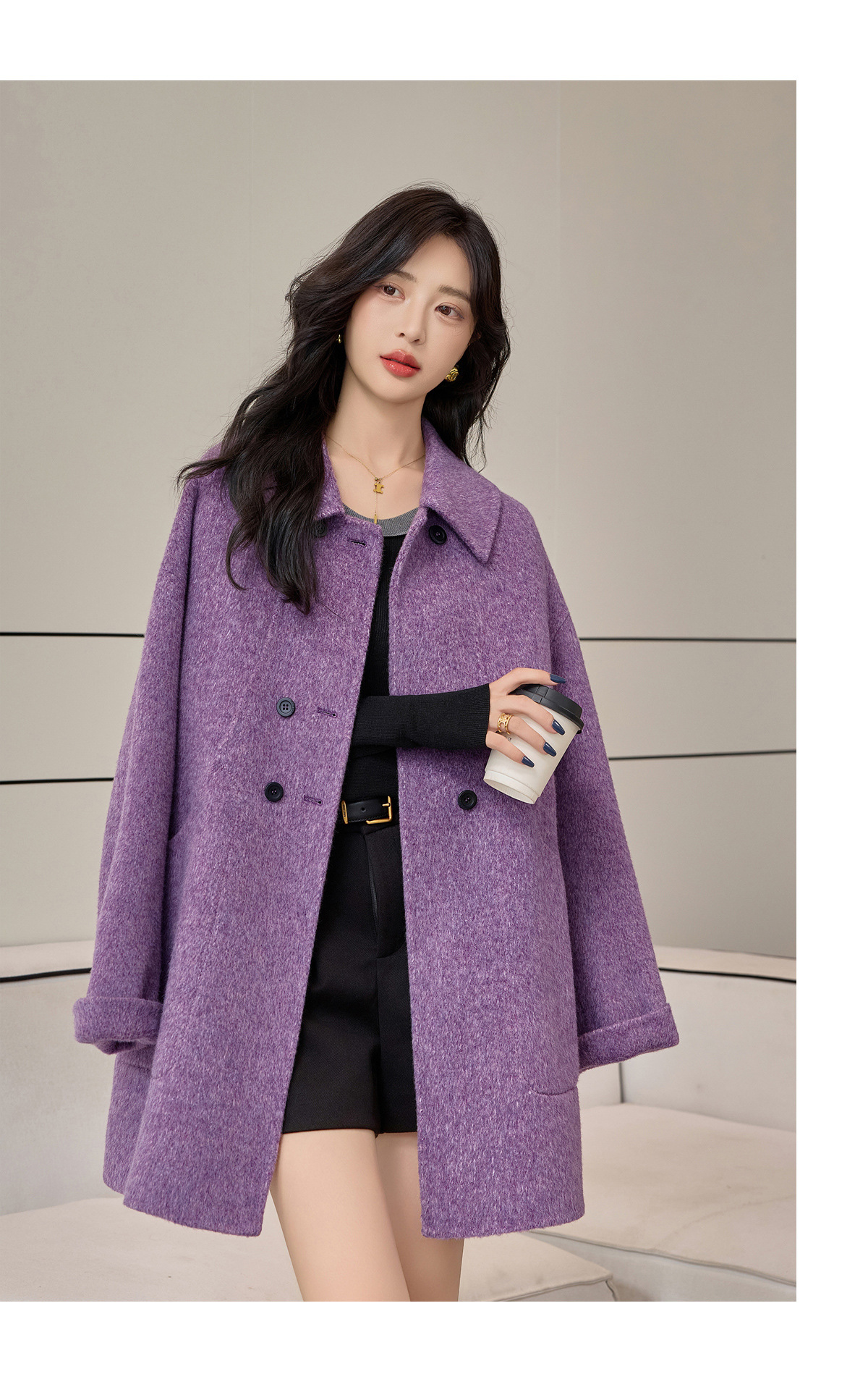 TC 914521羊毛双面尼大衣韩版大码宽松毛呢外套 商品图4