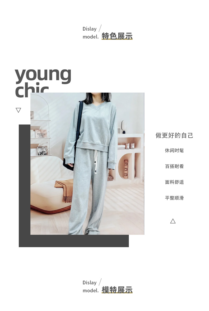 馥迦恣意休闲V领卫衣套装