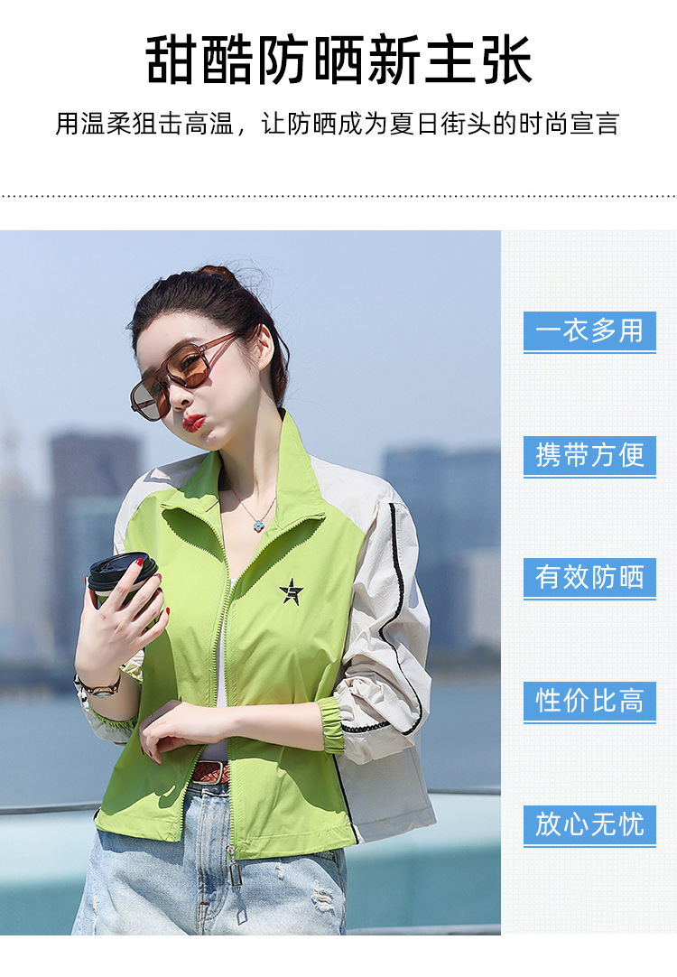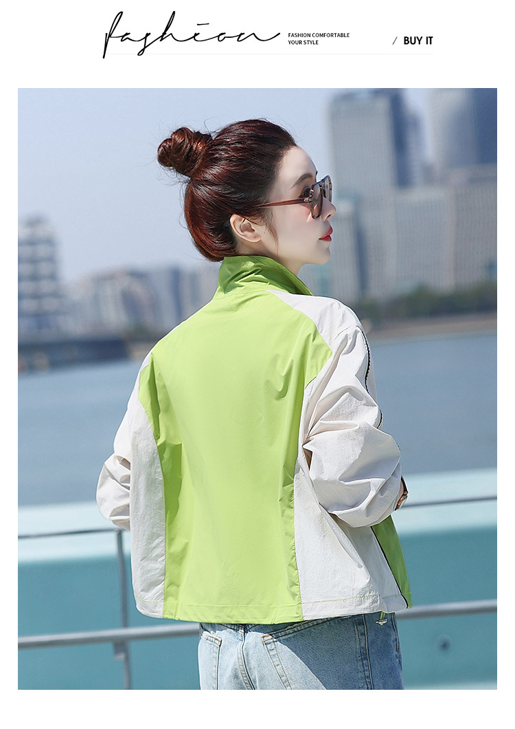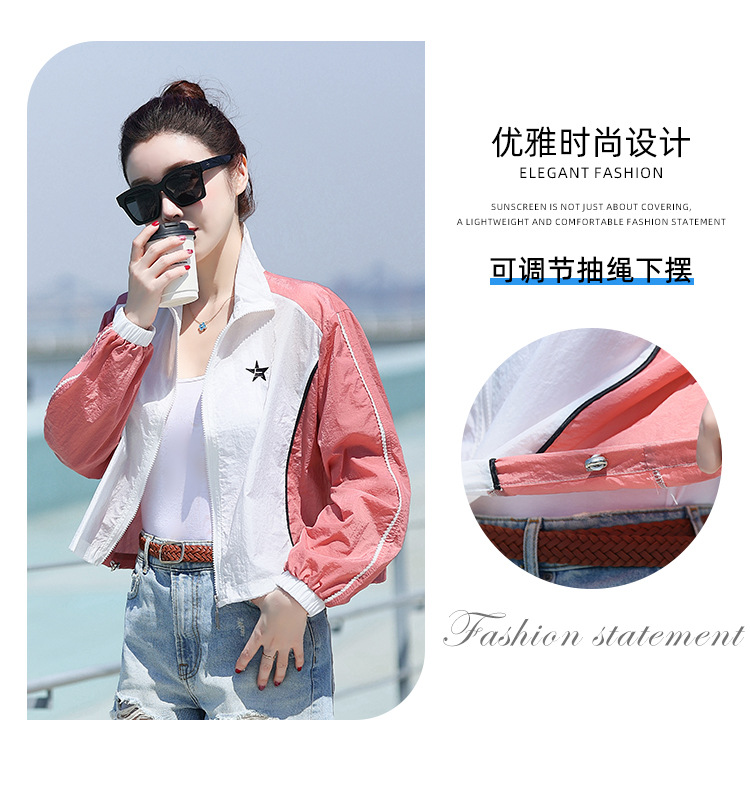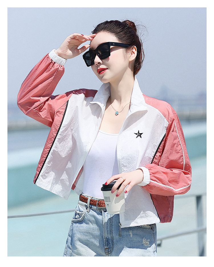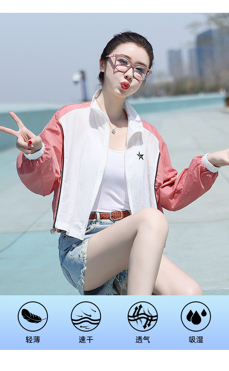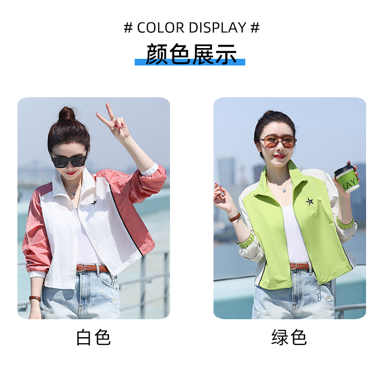 短款休闲防晒衣外套女夏季2025设计感拼接撞色透气薄款防晒服上衣