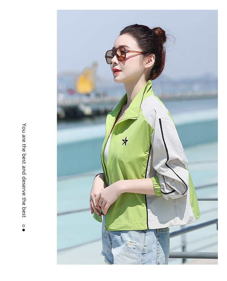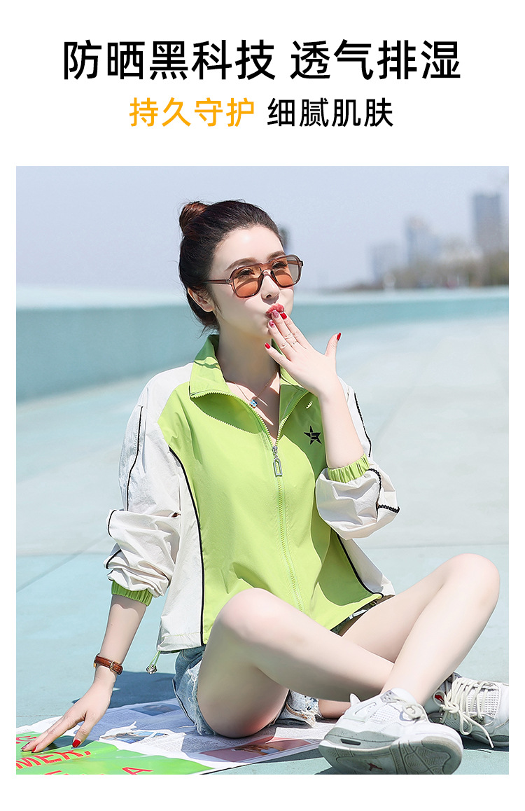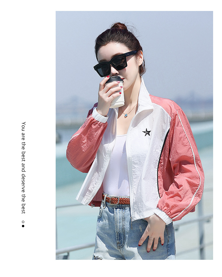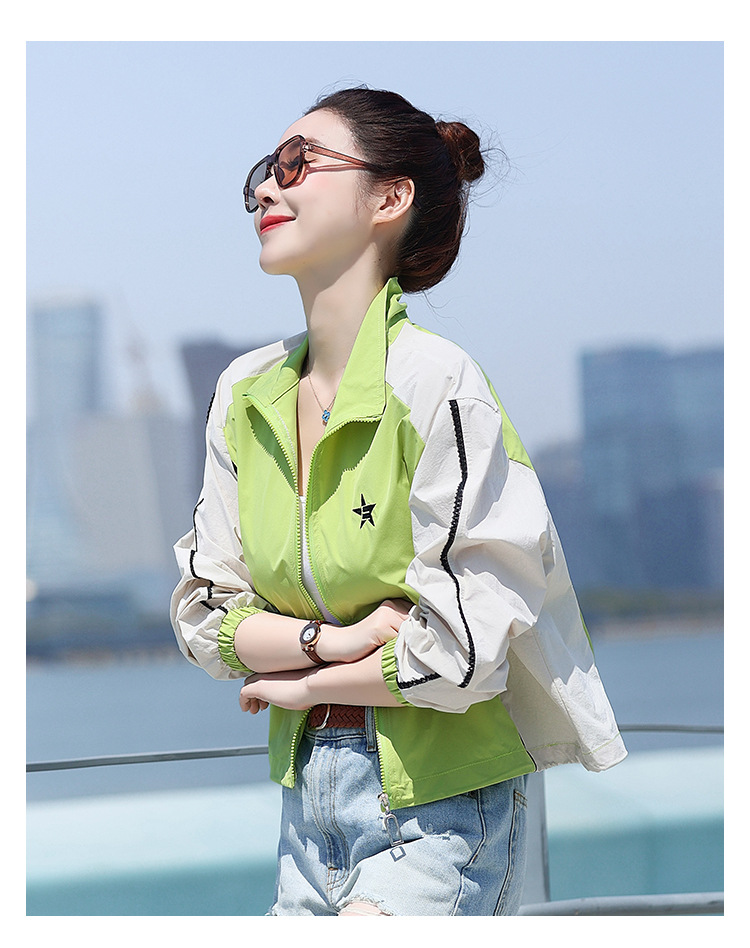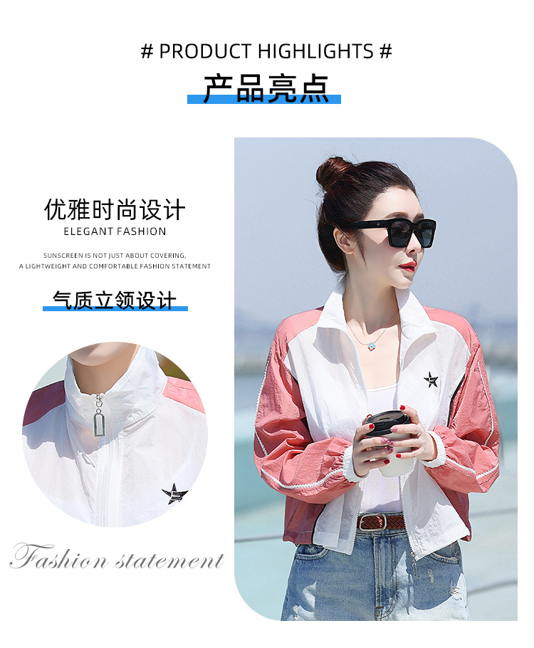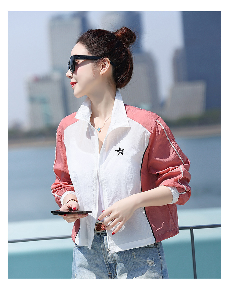 短款休闲防晒衣外套女夏季2025设计感拼接撞色透气薄款防晒服上衣