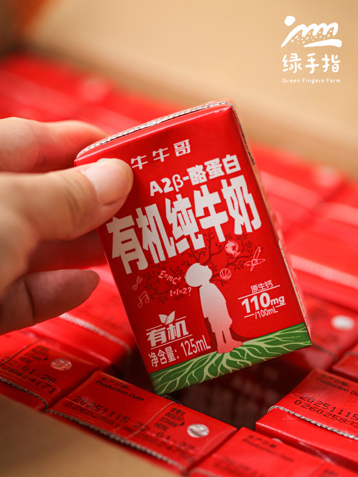 有⾃有有机牧场、专属A2奶⽜种群,每5亩地配1头有机奶⽜。牧草种植-养殖-加⼯全链条掌控,杜绝中间环节⻛险。