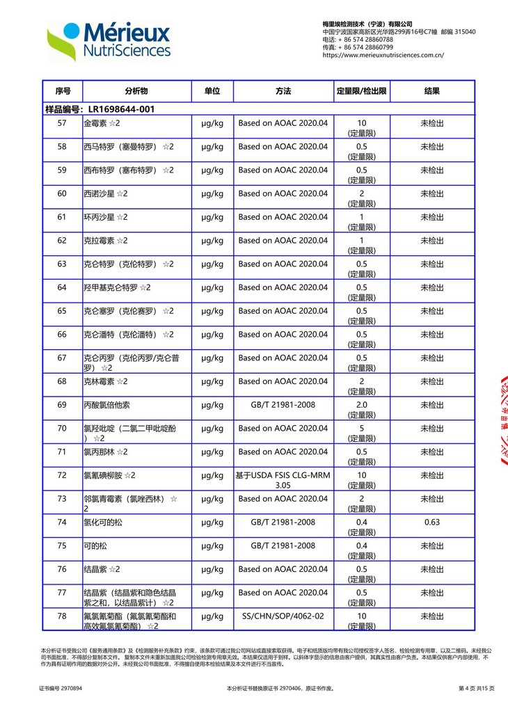 去年12月报告就出来了,我们迟迟没有上架的原因就是氢化可的松的异常值,我们查资料发现,这个值极有可能是内源产生的。激素和农残的不同是我们需要分辨他是内源产生的还是人为使用的,农残只有检出,必然有风险点,激素则需要查证分析。