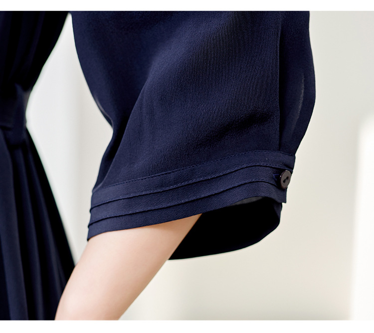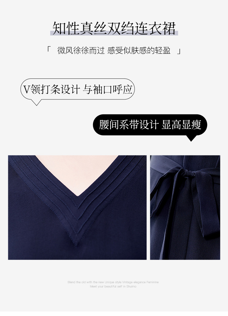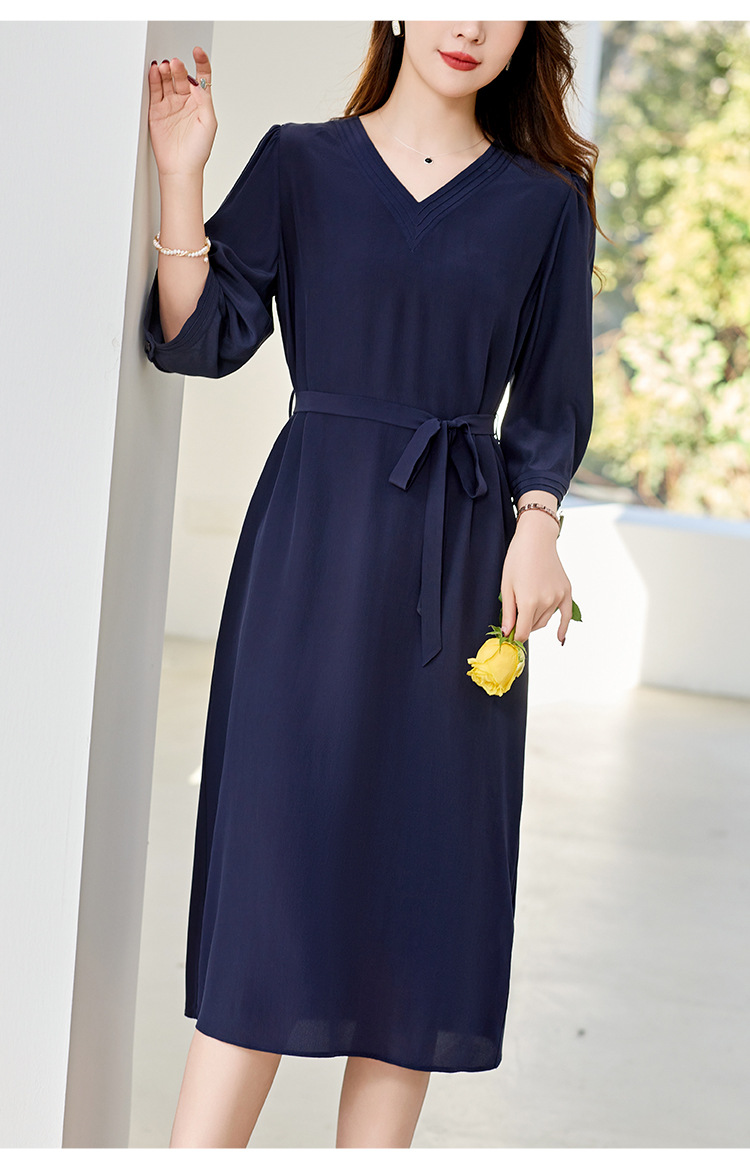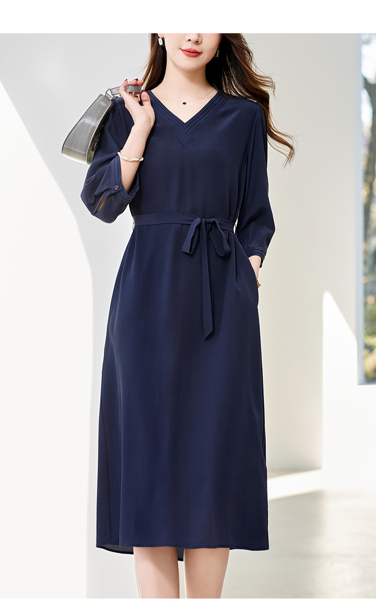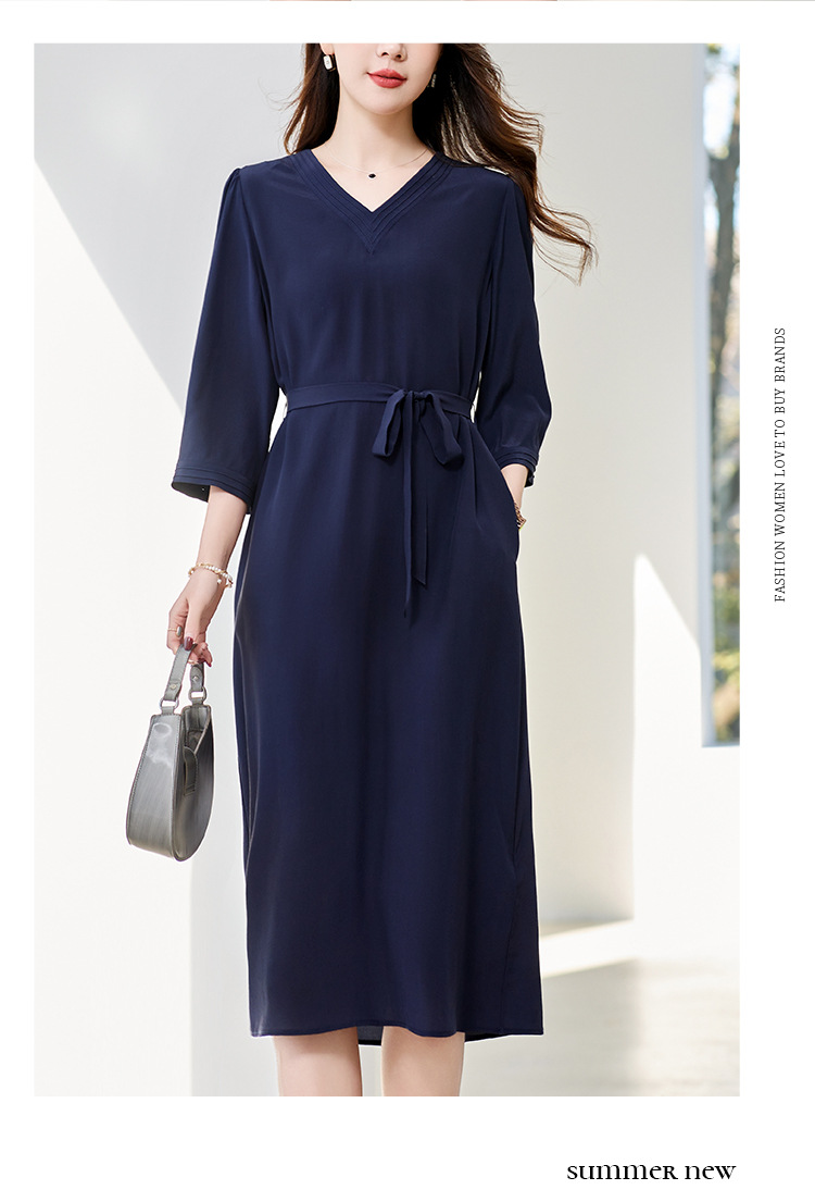 LS-82497272真丝双绉连衣裙女2024新款夏季V领知性气质高端洋气桑蚕丝裙