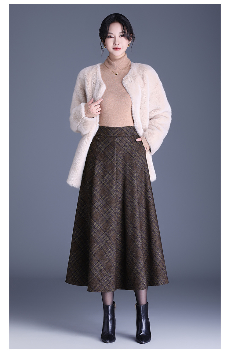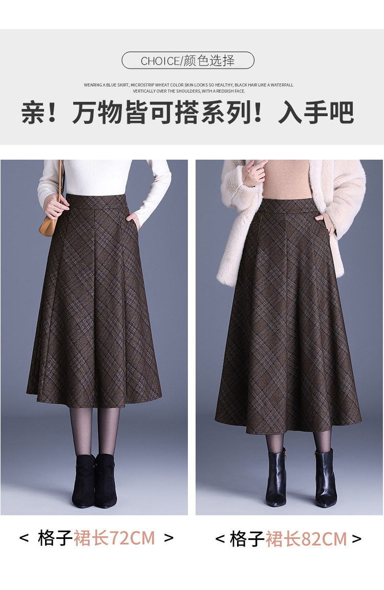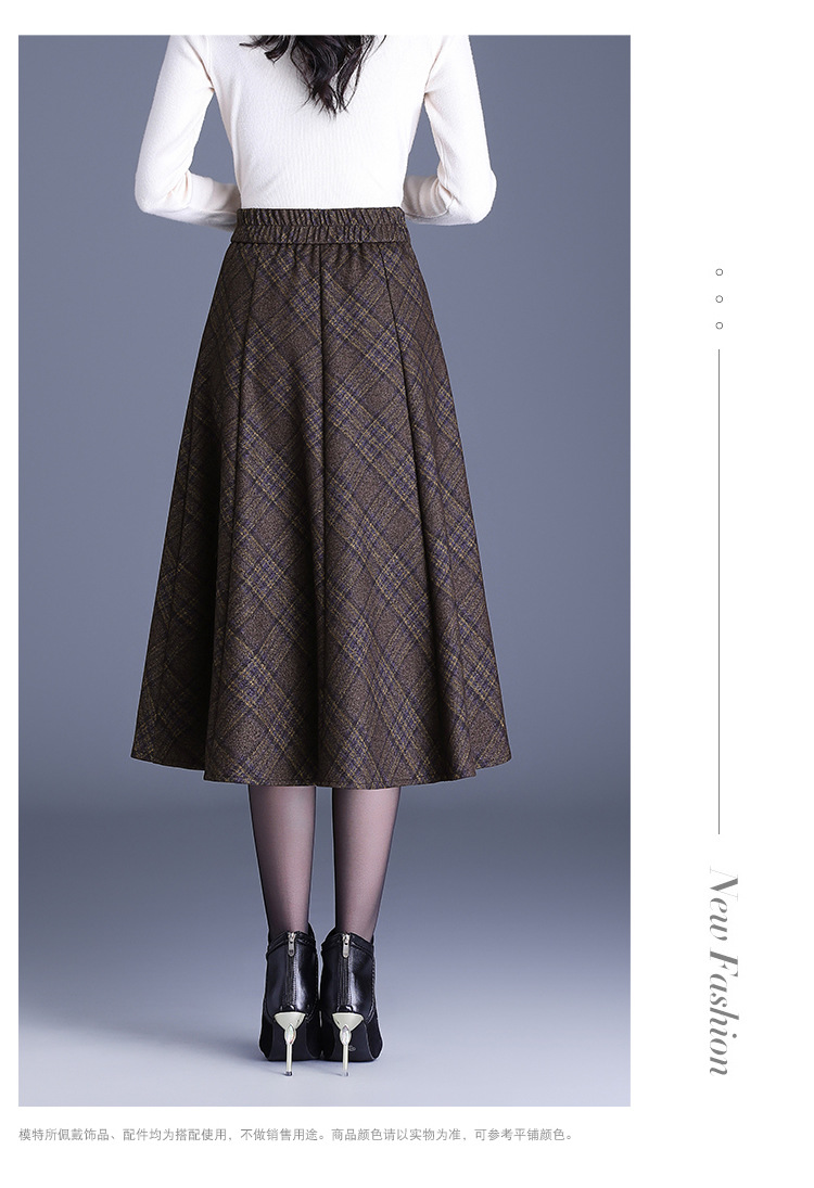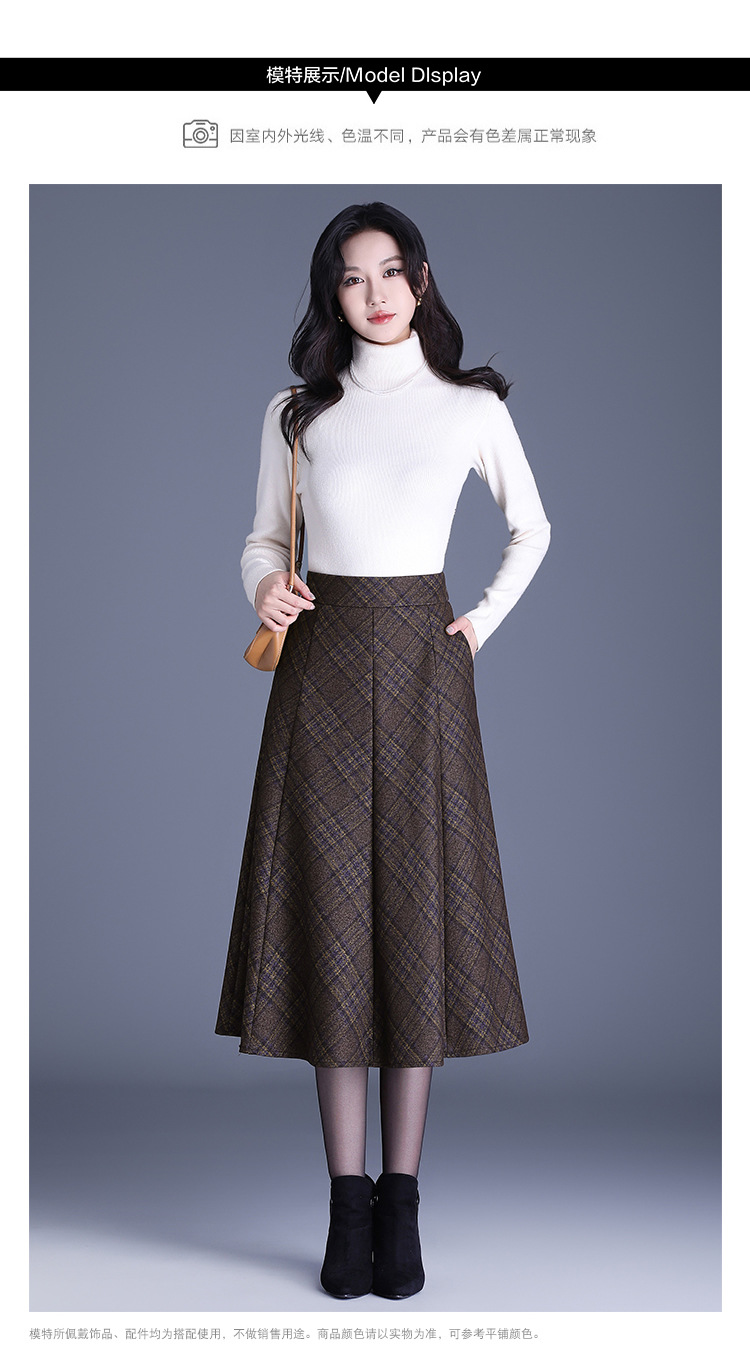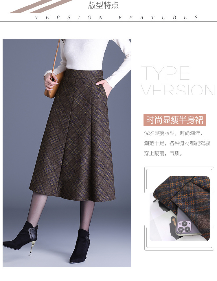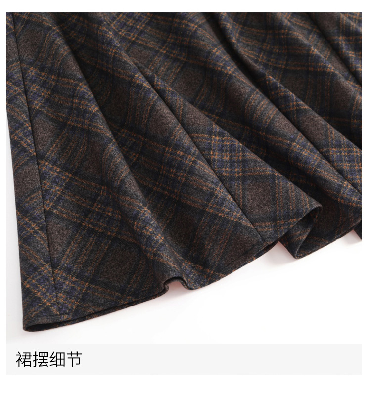 MYX-8090-18690-L格纹中长款通勤时尚半身裙2024年秋冬款高腰百褶大摆裙气质A字裙