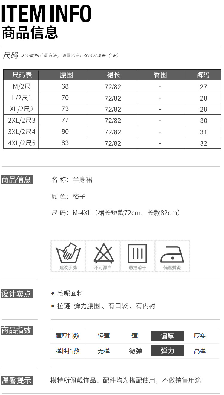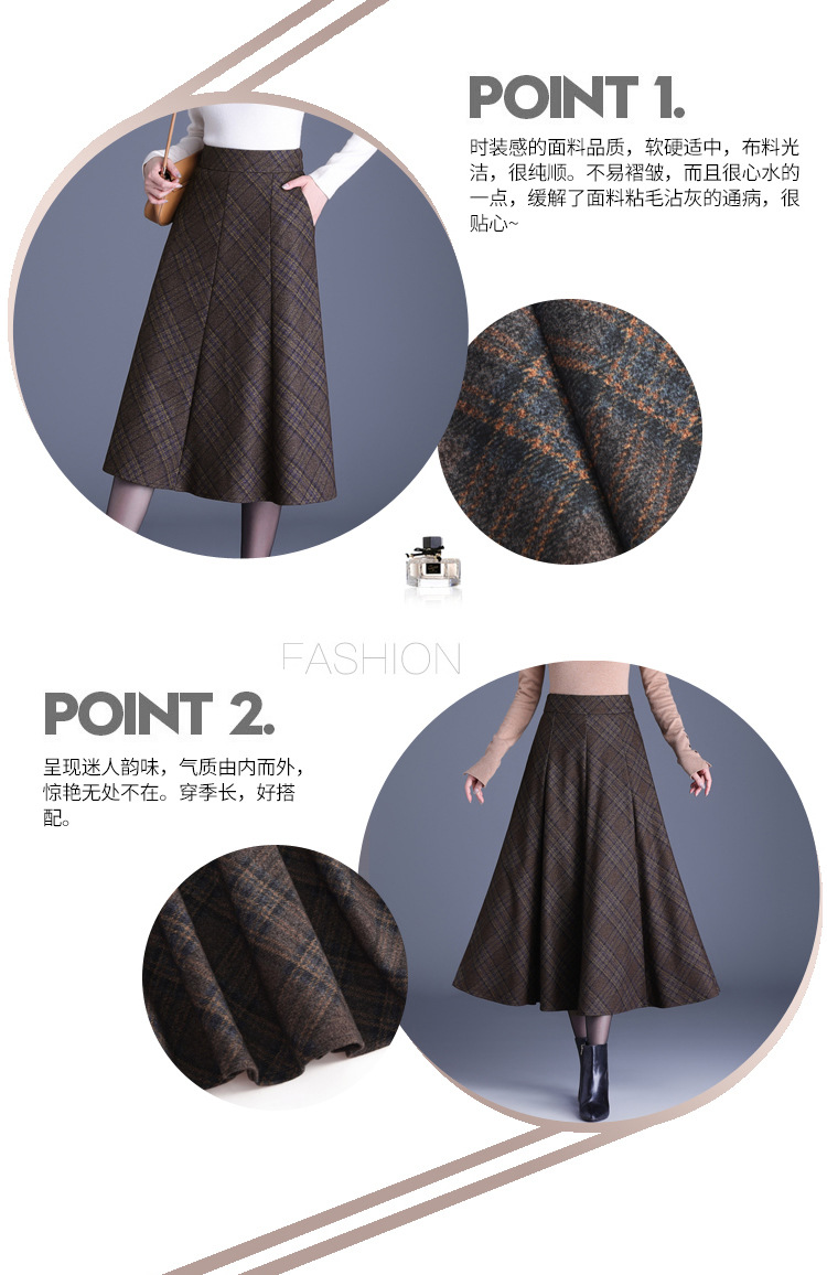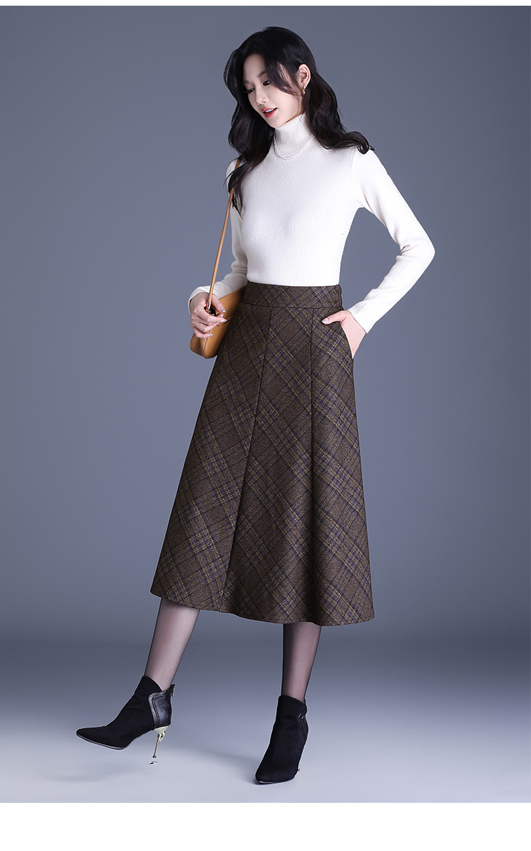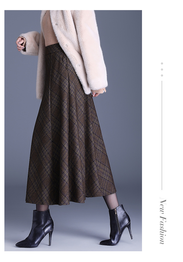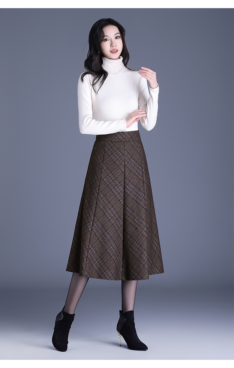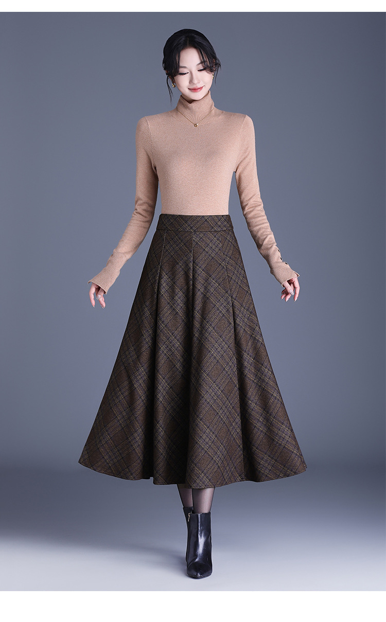 MYX-8090-18690-L格纹中长款通勤时尚半身裙2024年秋冬款高腰百褶大摆裙气质A字裙
