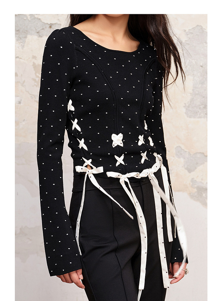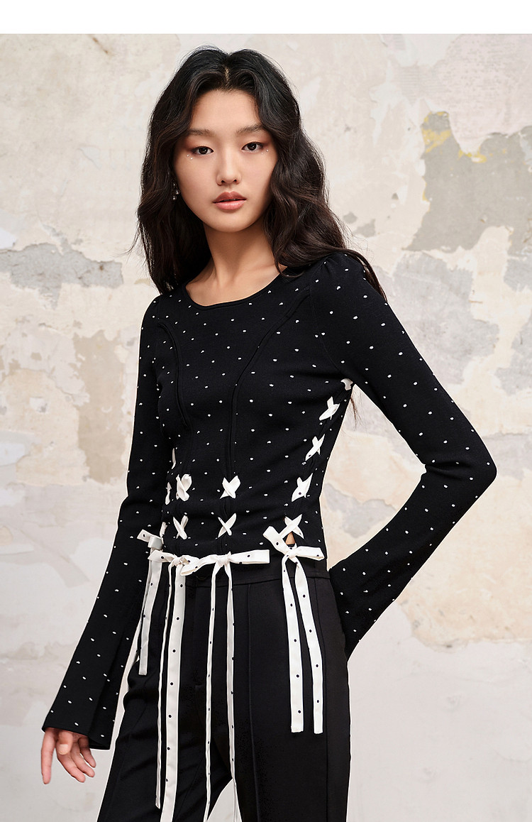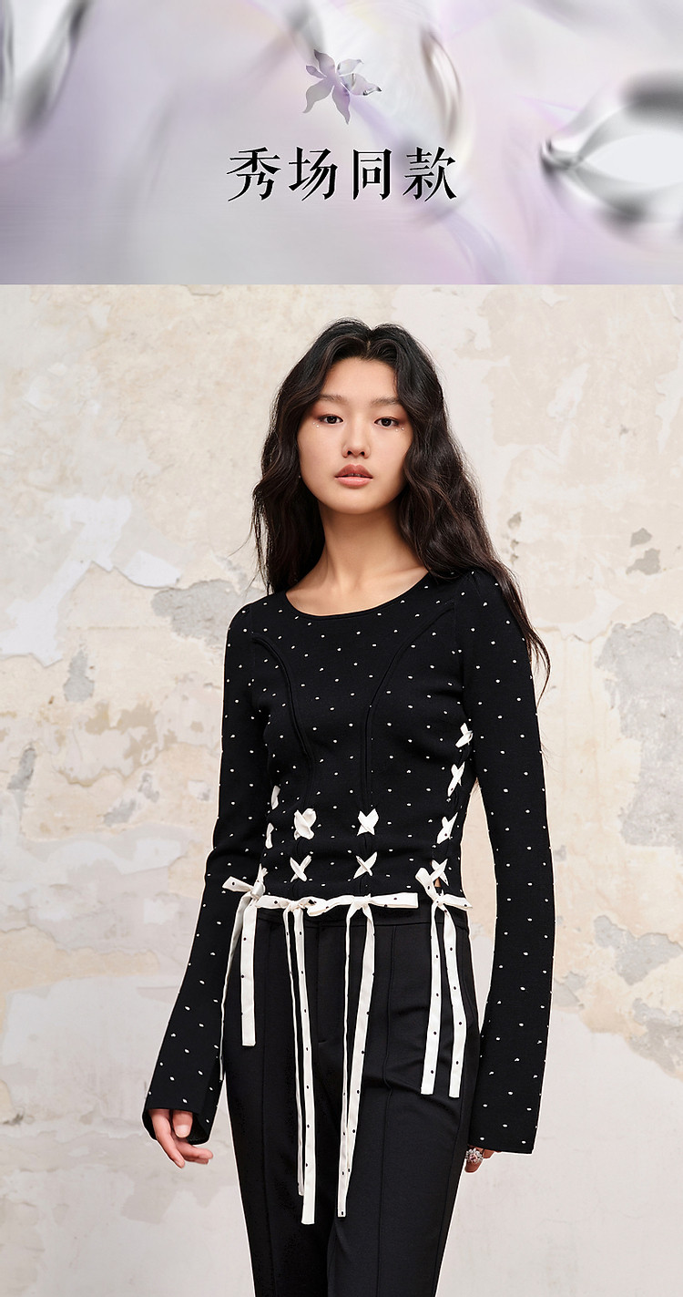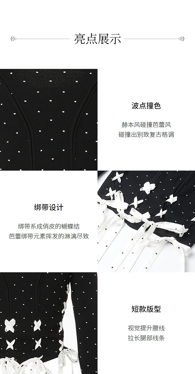 MAXRIENY赫本风芭蕾波点针织修身上衣(货号:MC88SW588)