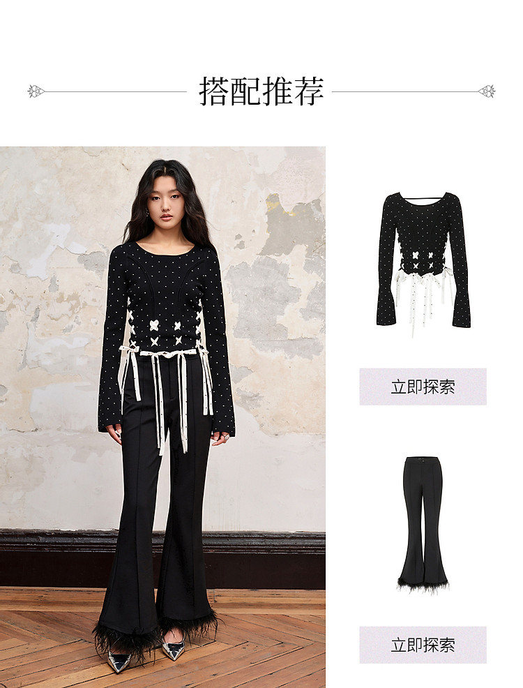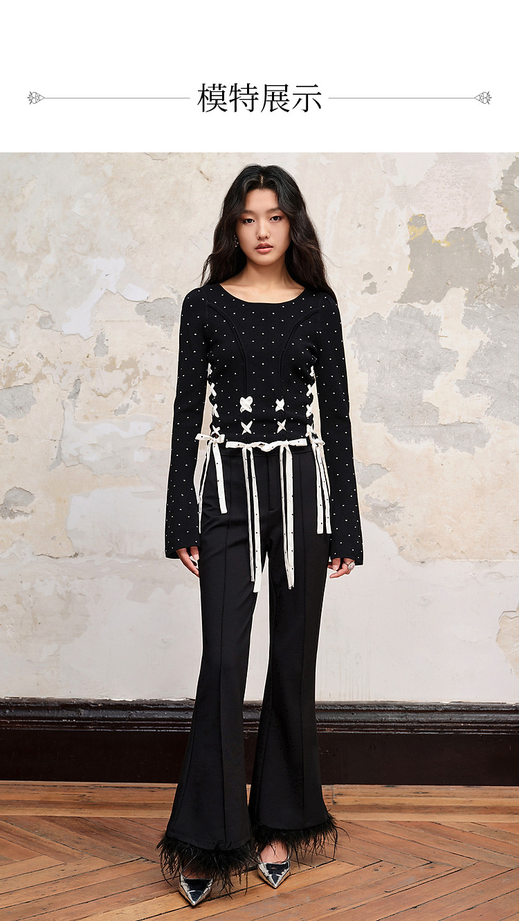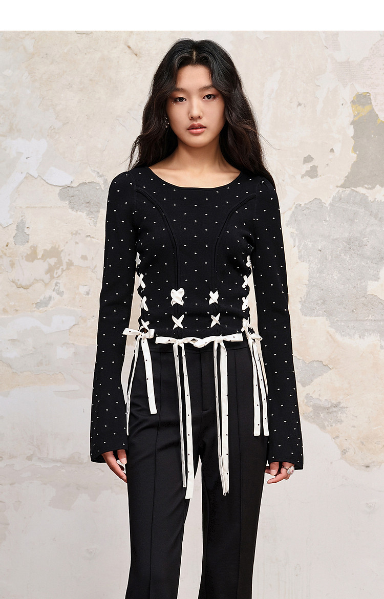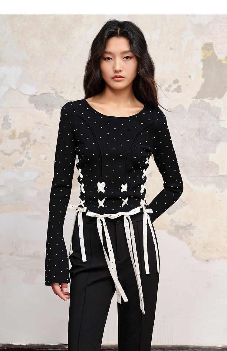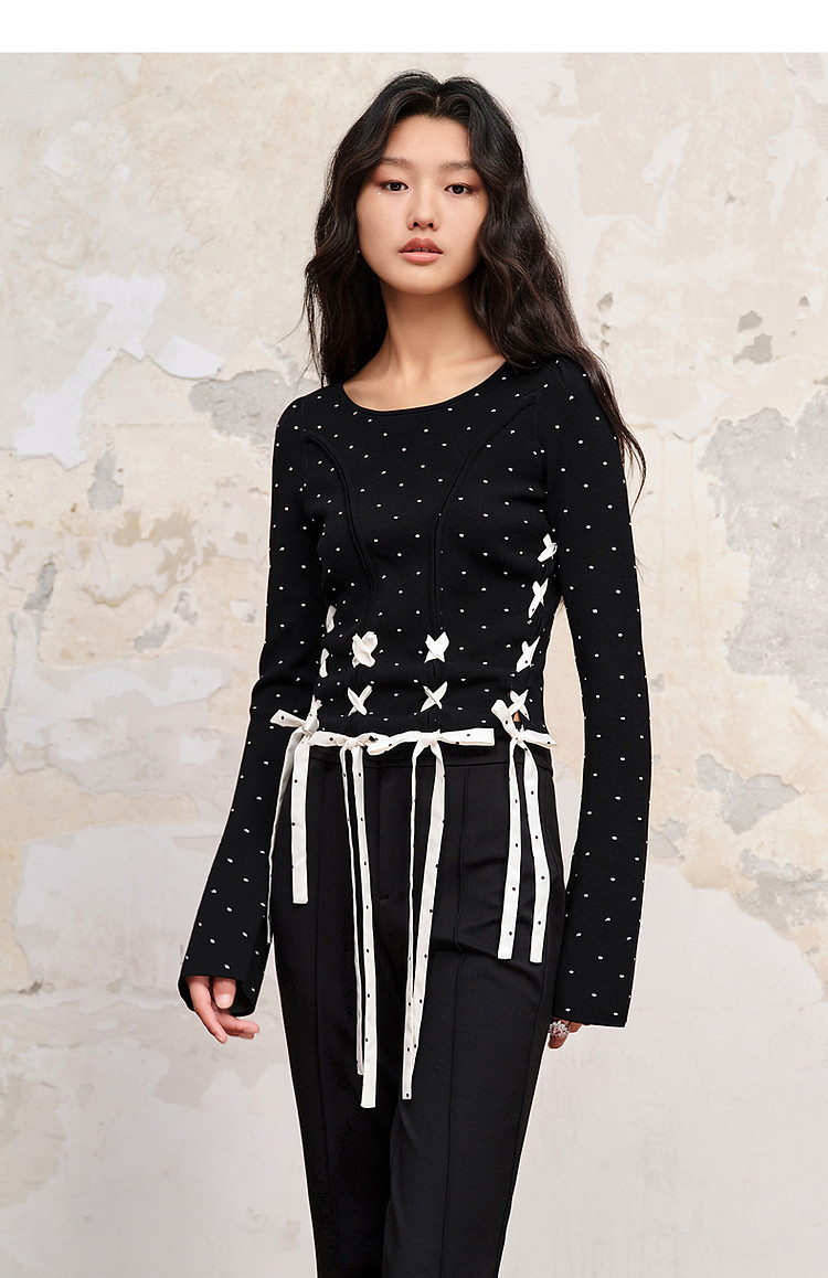 MAXRIENY赫本风芭蕾波点针织修身上衣(货号:MC88SW588)