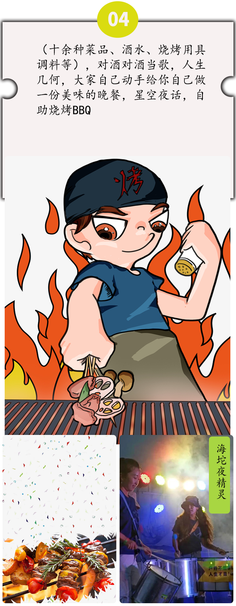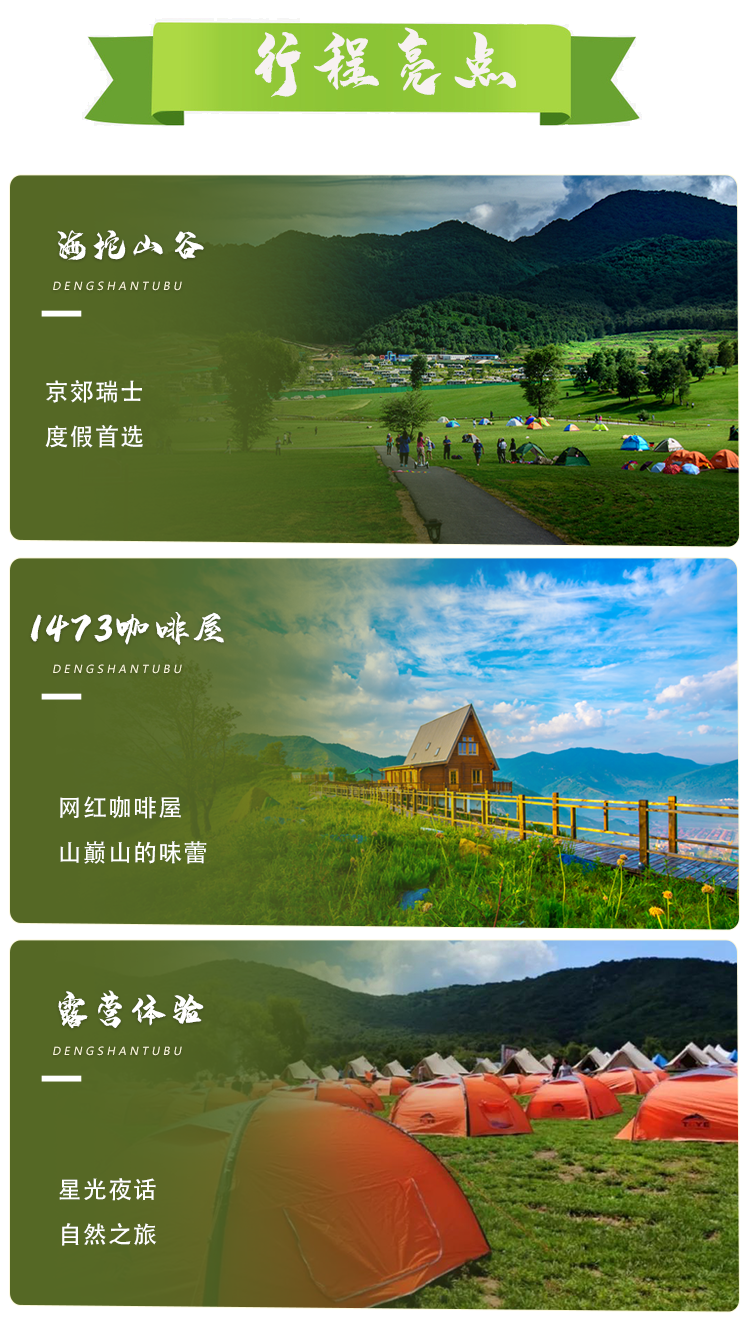 【用餐】本活动不含餐。建议晚餐自助烧烤68元/人包含十余种菜品、酒水、烧烤用具调料等(因烧烤需提前预订,请报名时备注;早餐可在海坨云餐厅用餐;两天午餐可在景区商街/海坨云餐厅就餐。