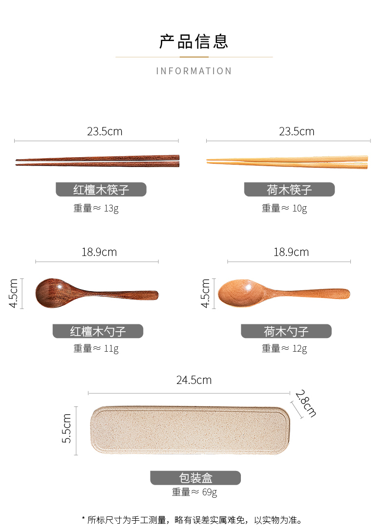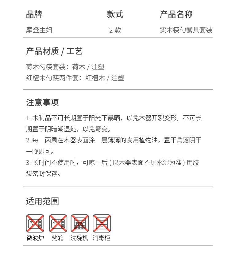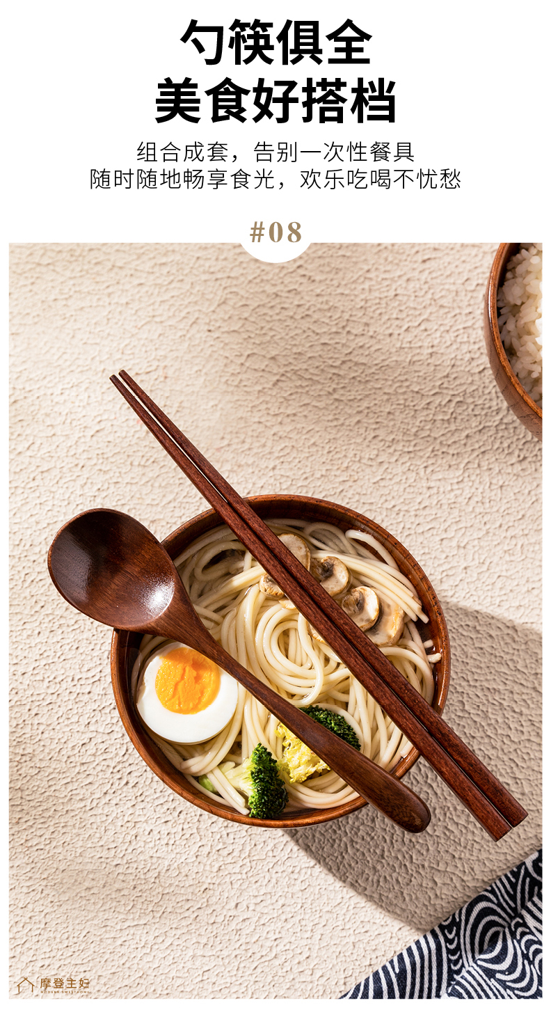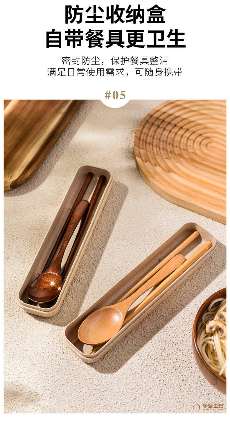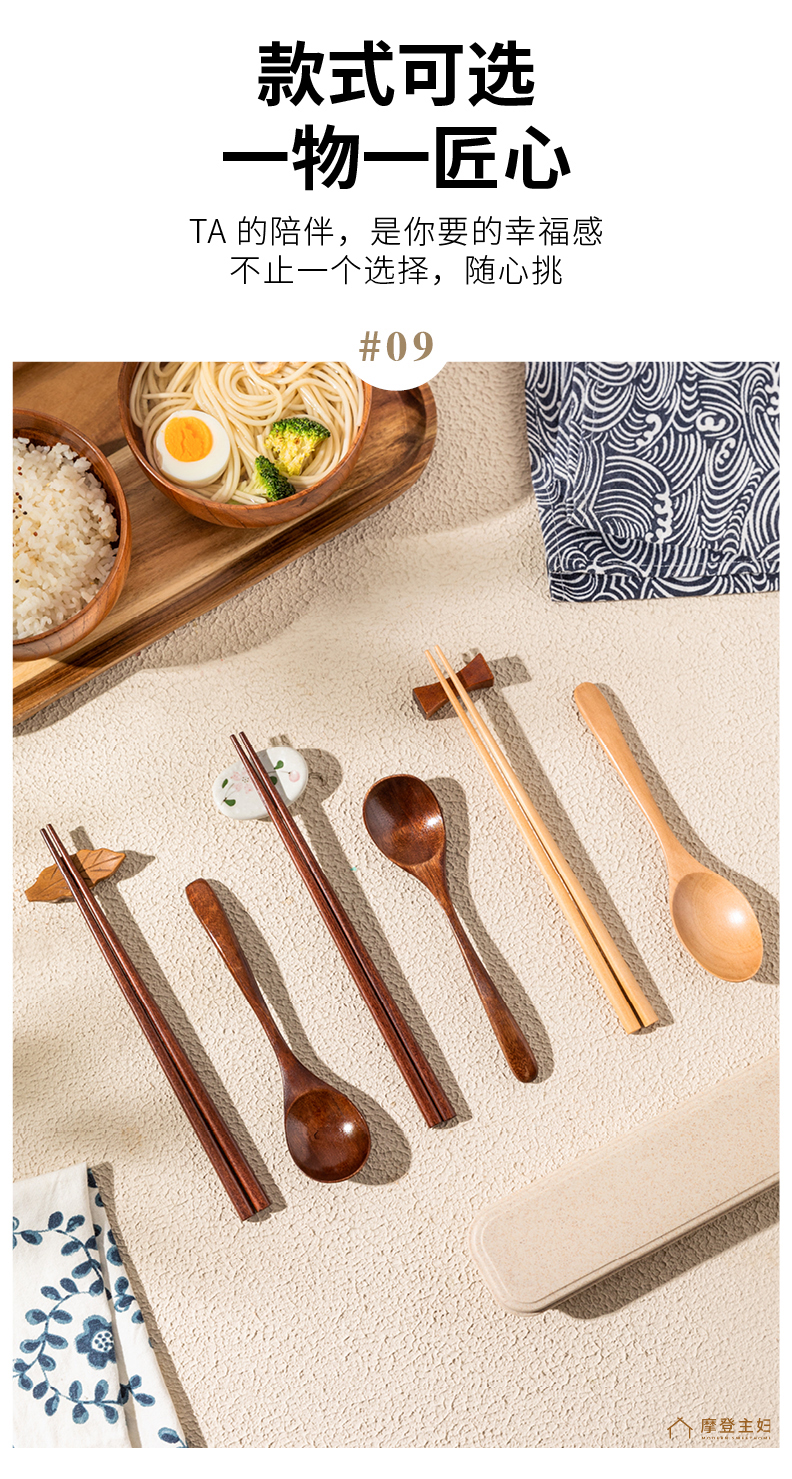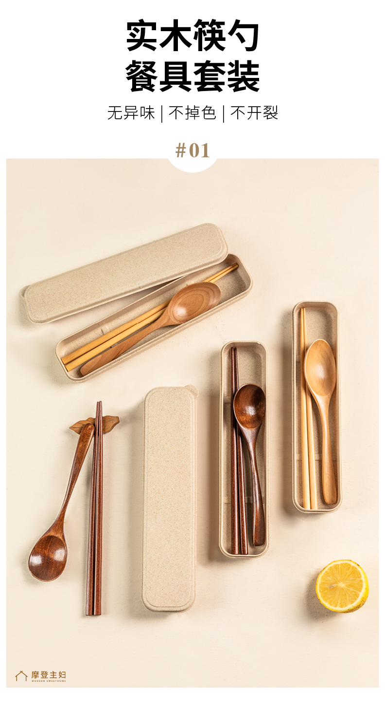 摩登主妇木头勺子筷子套装木质便携式餐具一人用学生上班族实木筷