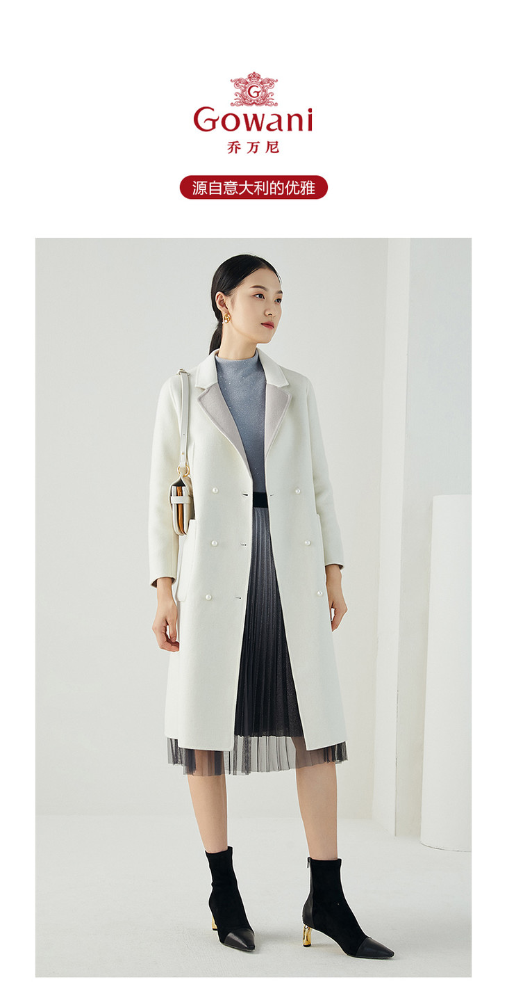 【羊绒】乔万尼秋冬季新款宽松直筒大码羊毛呢子大衣女中长款轻薄外套EL4A523