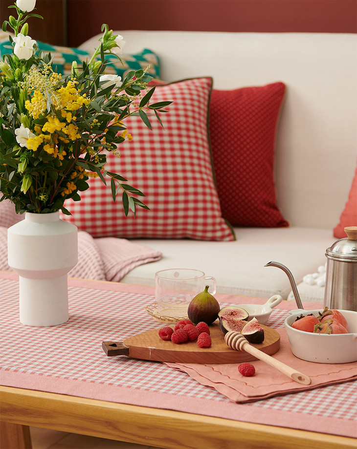 阳春小镇茶几桌布长方形台布客厅简约红色格子家用斗柜梳妆台盖布