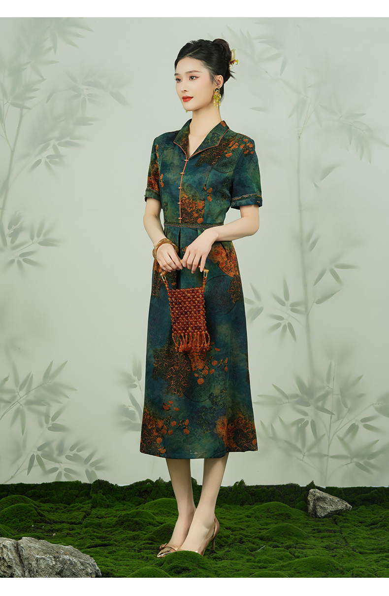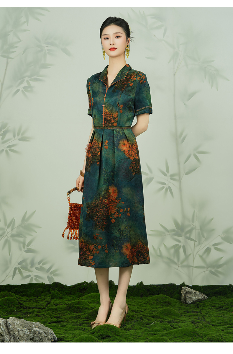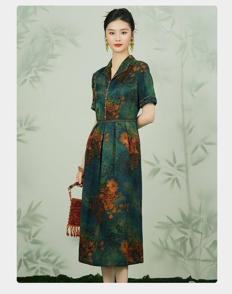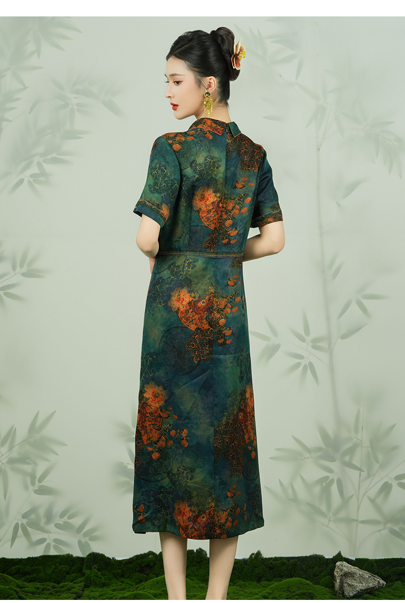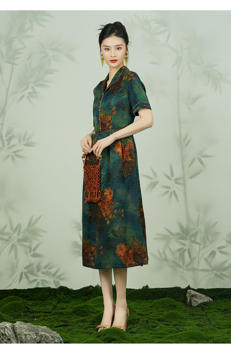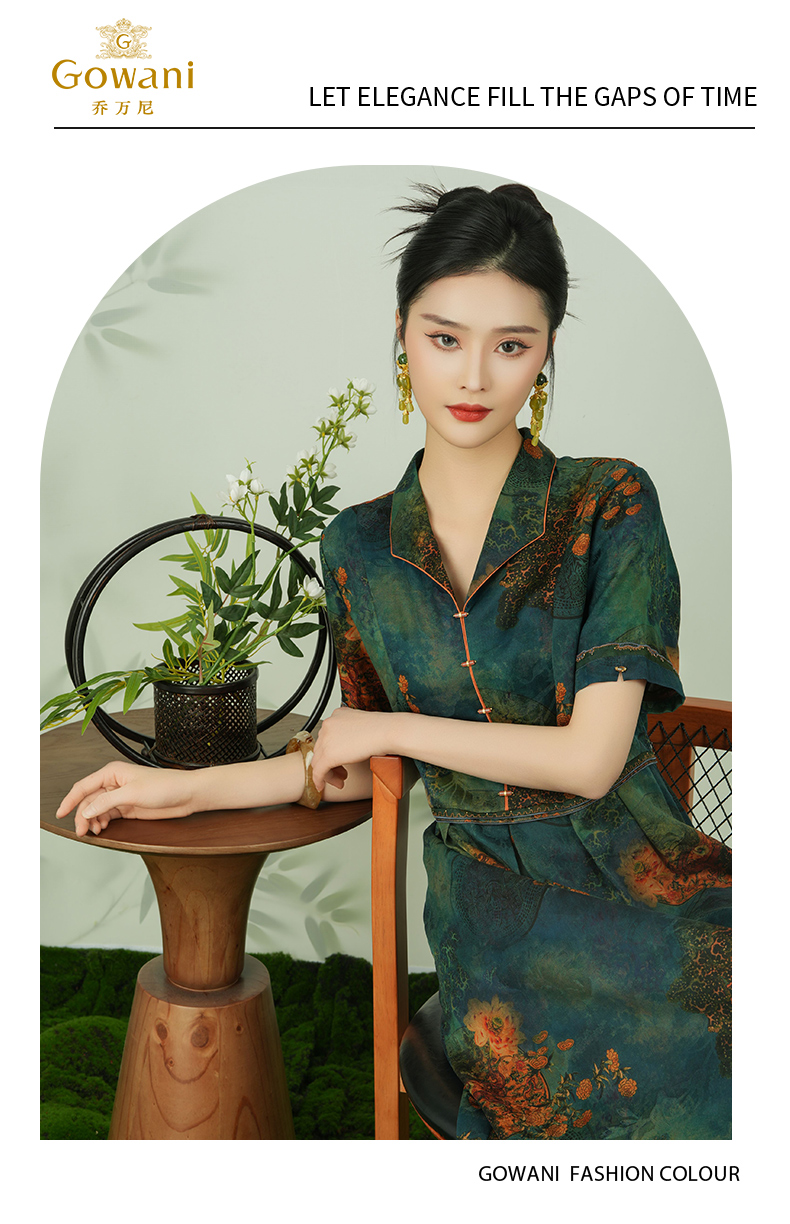 【静荷听雨图】【香云纱】乔万尼真丝连衣裙重磅26mm桑蚕丝收腰气质富贵感ET2E282