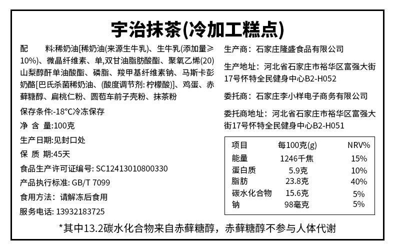 【李小样】生酮提拉米苏盒子蛋糕100g/盒 抹茶低碳水无蔗糖无面粉无麸质网红甜品慕斯