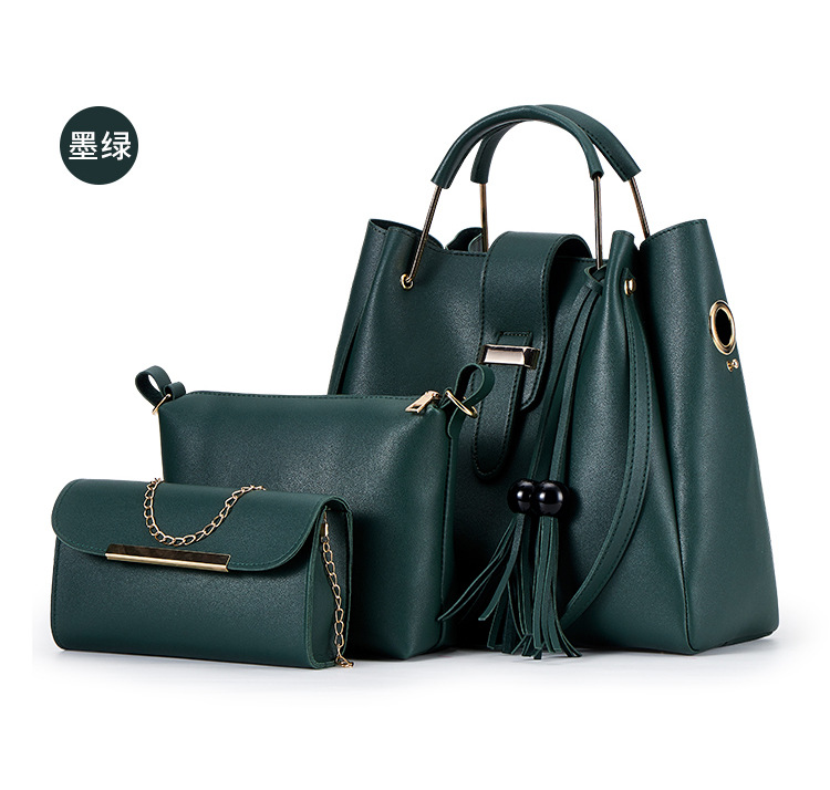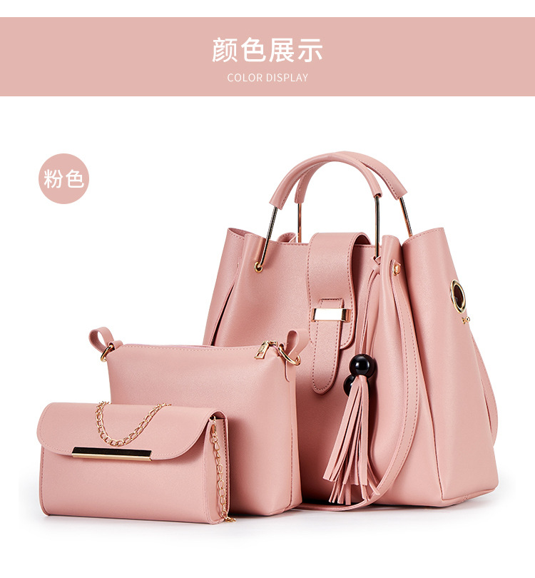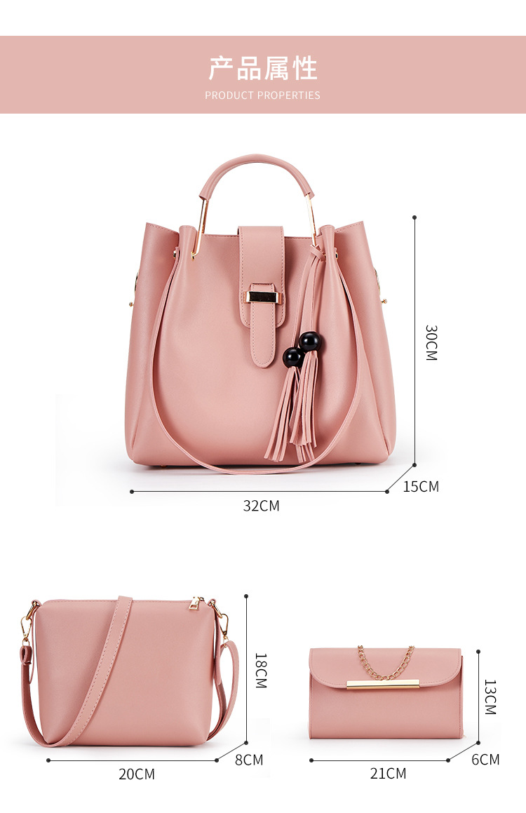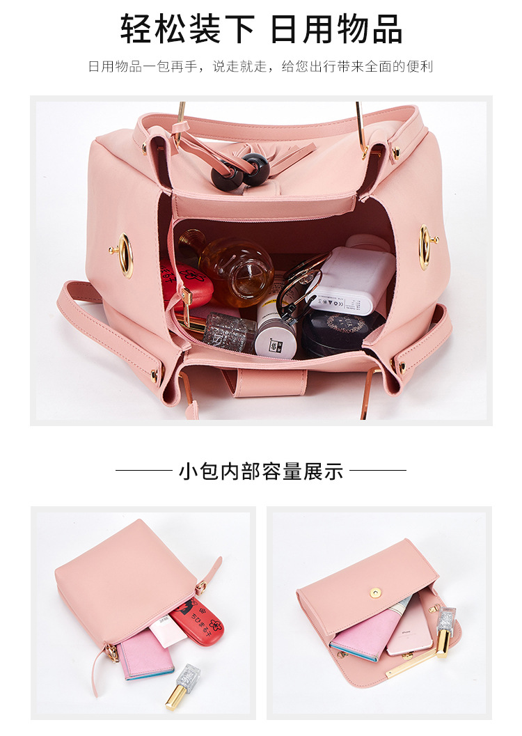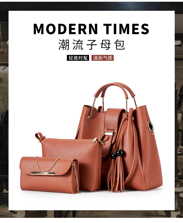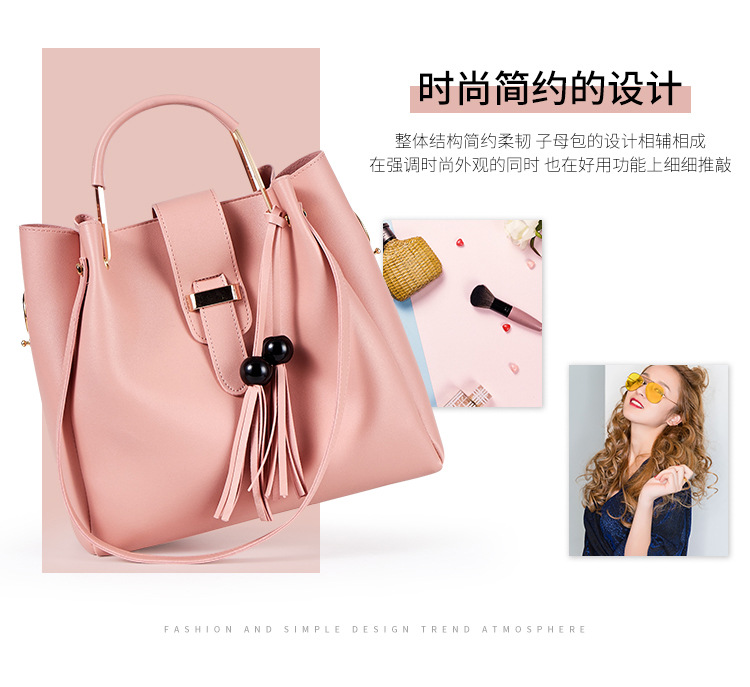 QYN-3015欧美简约木珠水桶型子母包手提单肩包三件套
