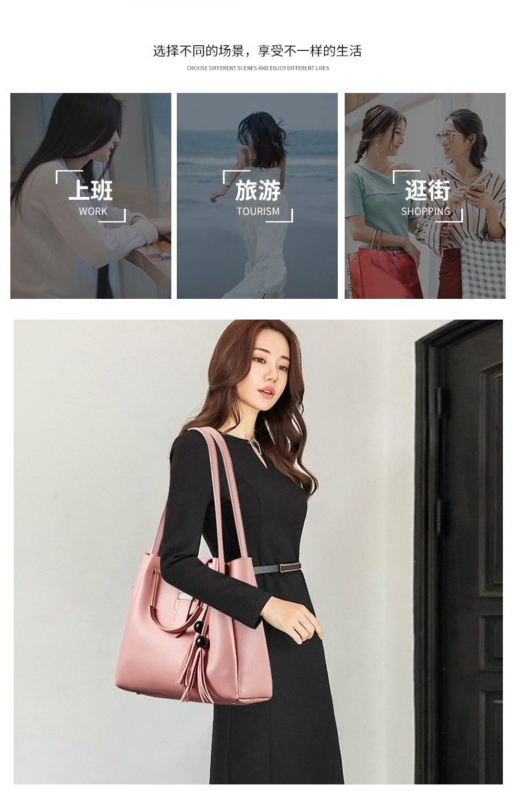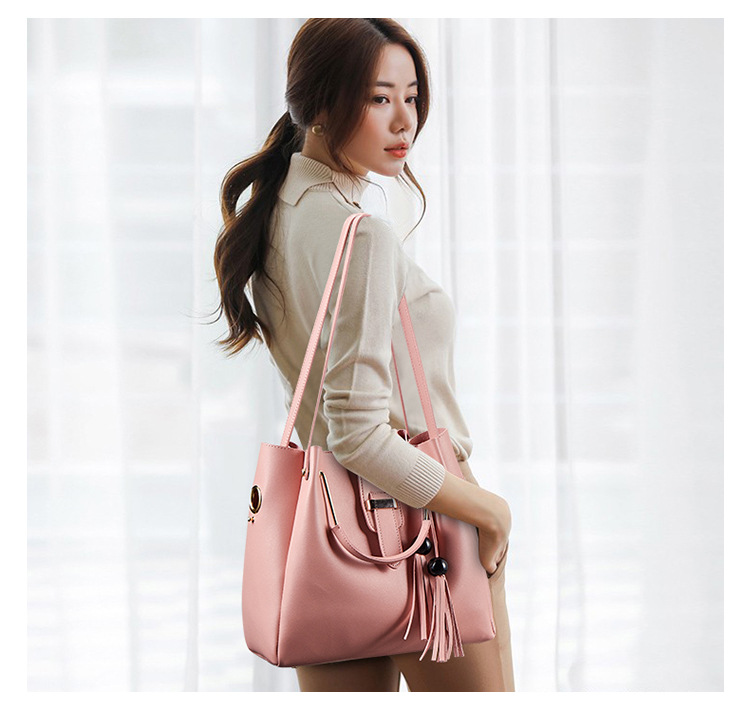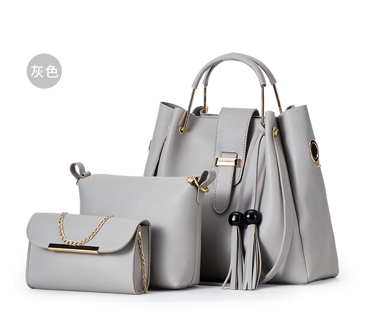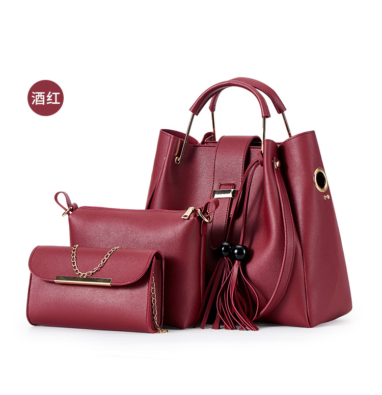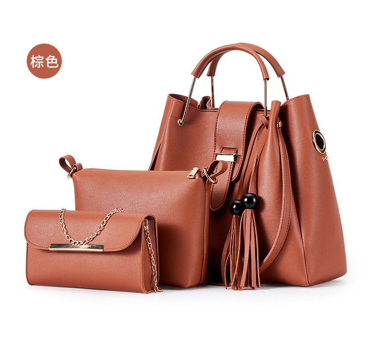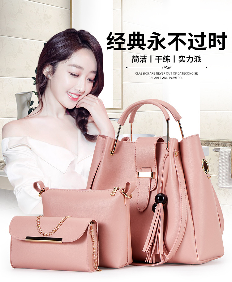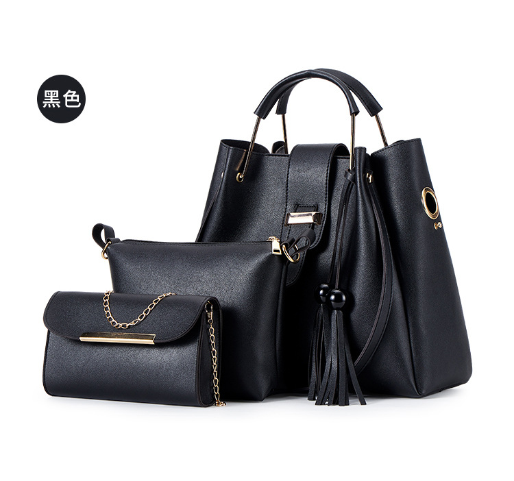 QYN-3015欧美简约木珠水桶型子母包手提单肩包三件套