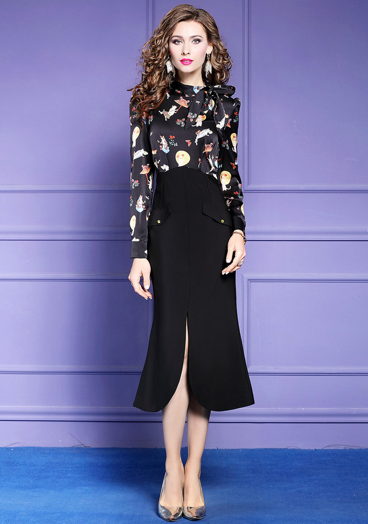 FMY-29218高腰显瘦拼接印花裙